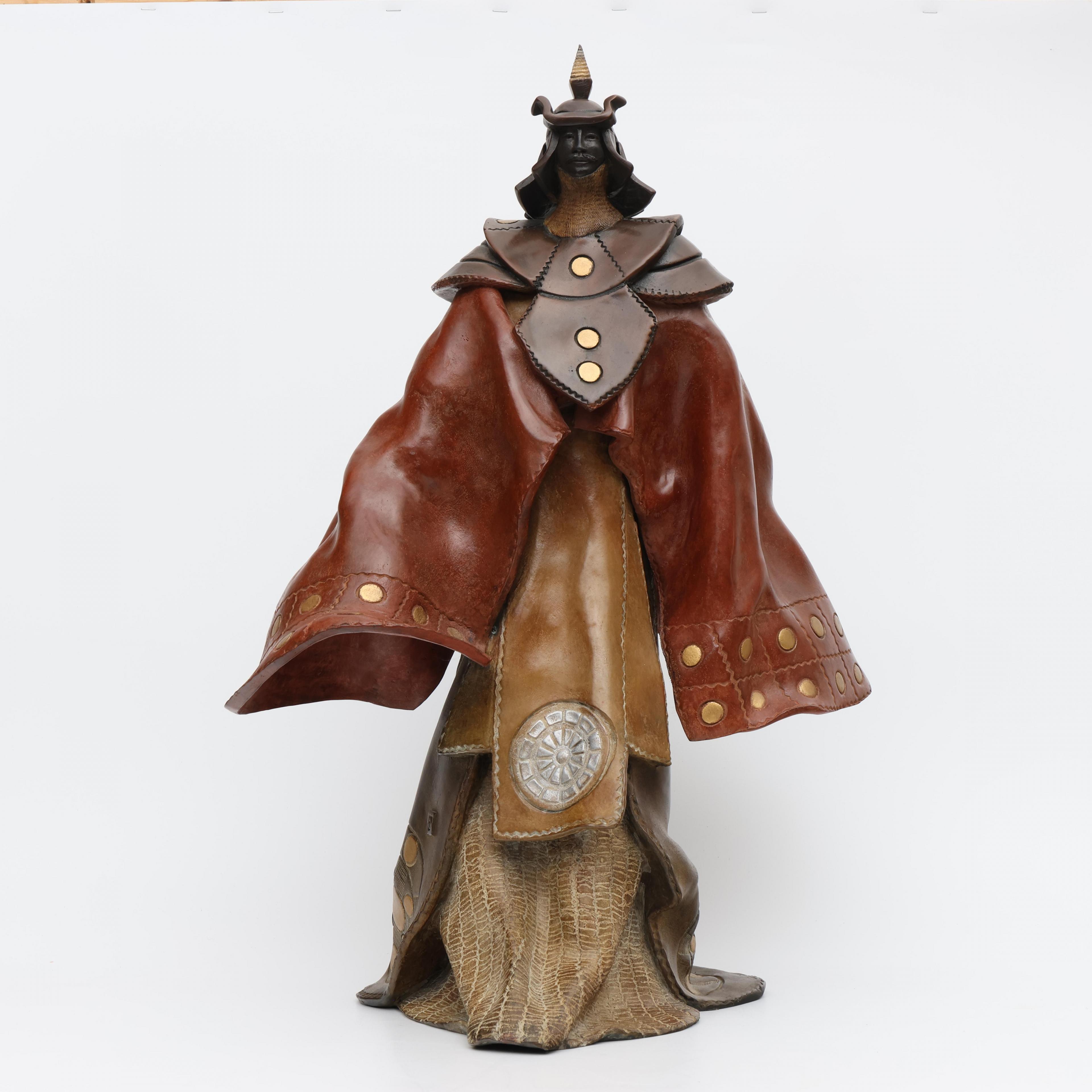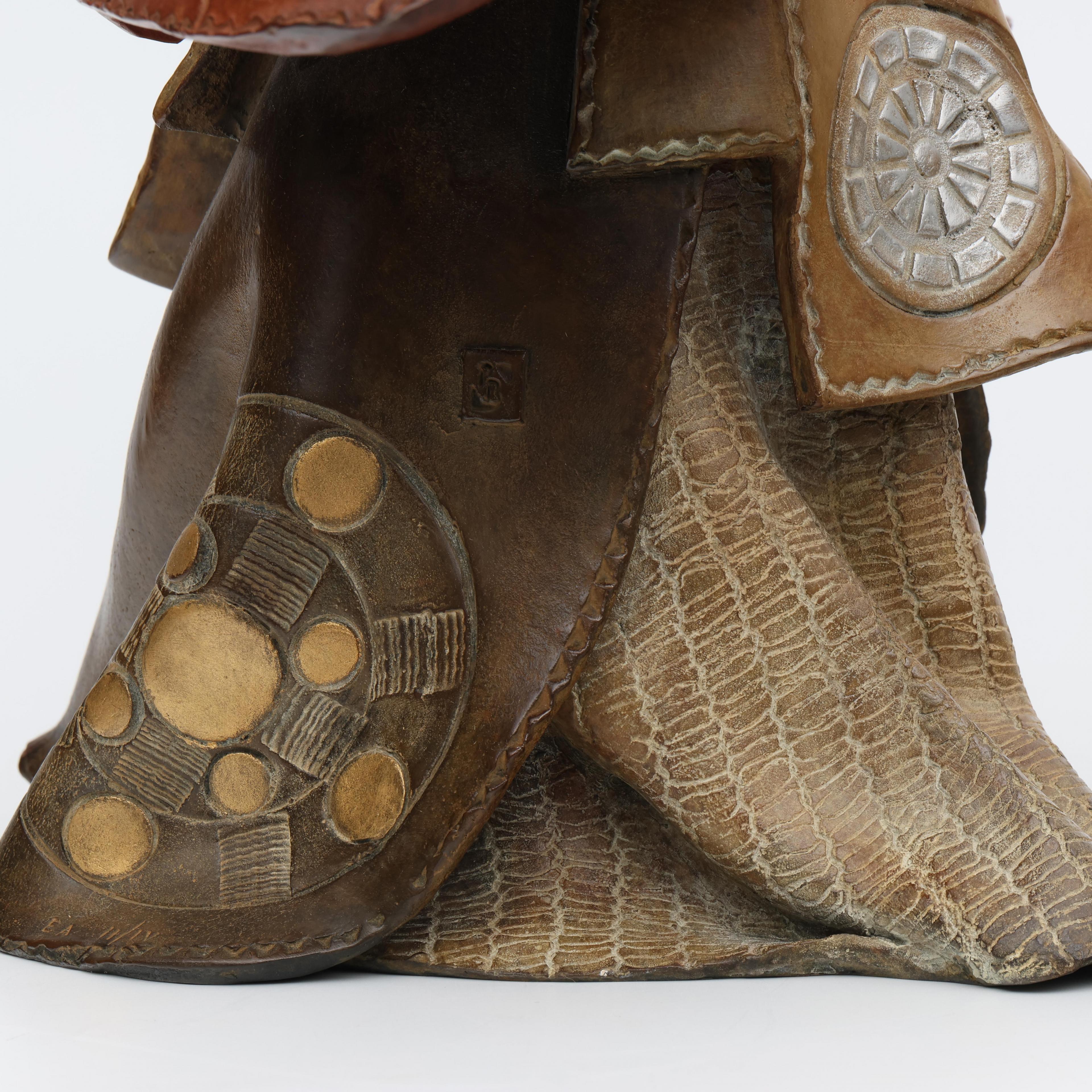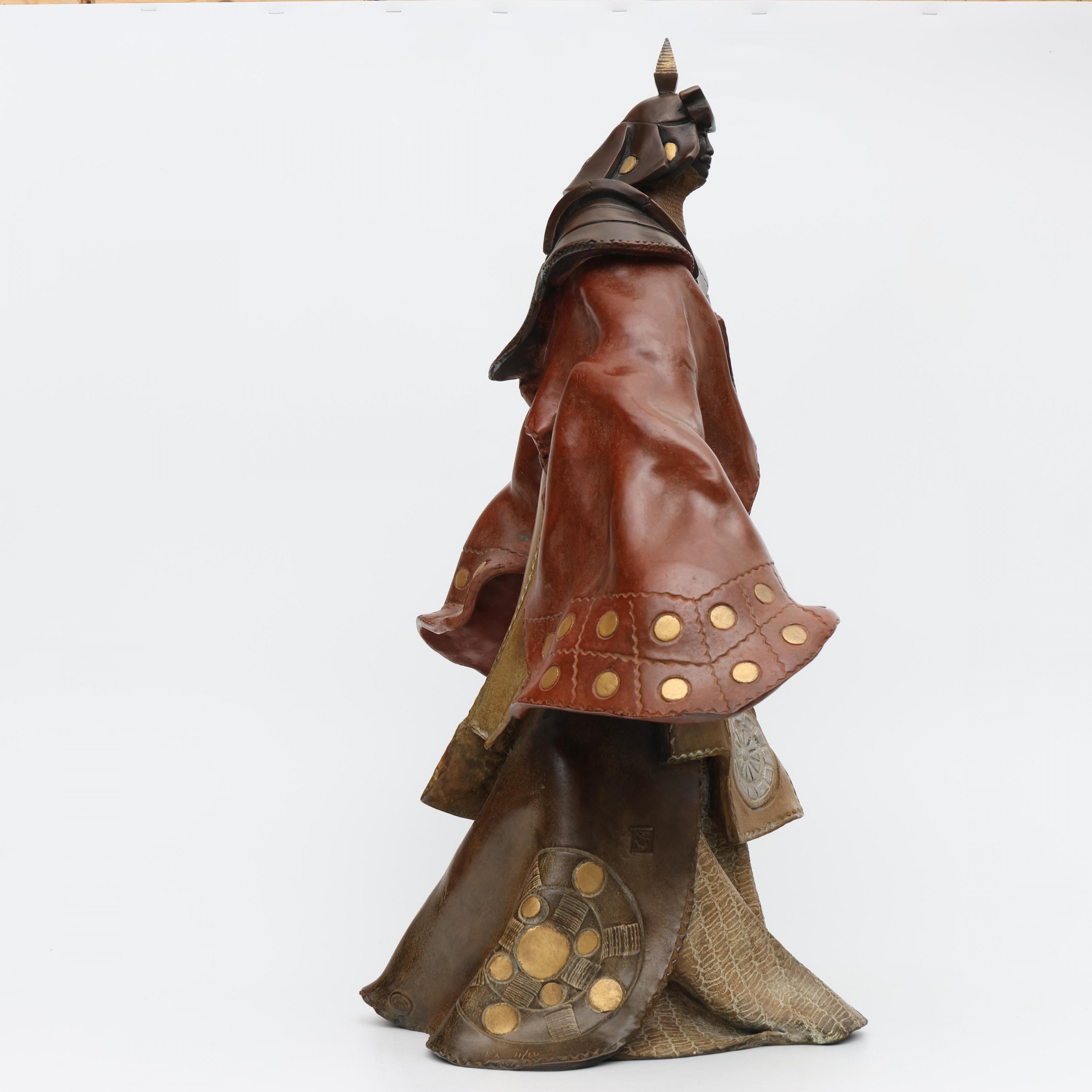Japan, a patinated bronze okimono of a samurai, 20th century,