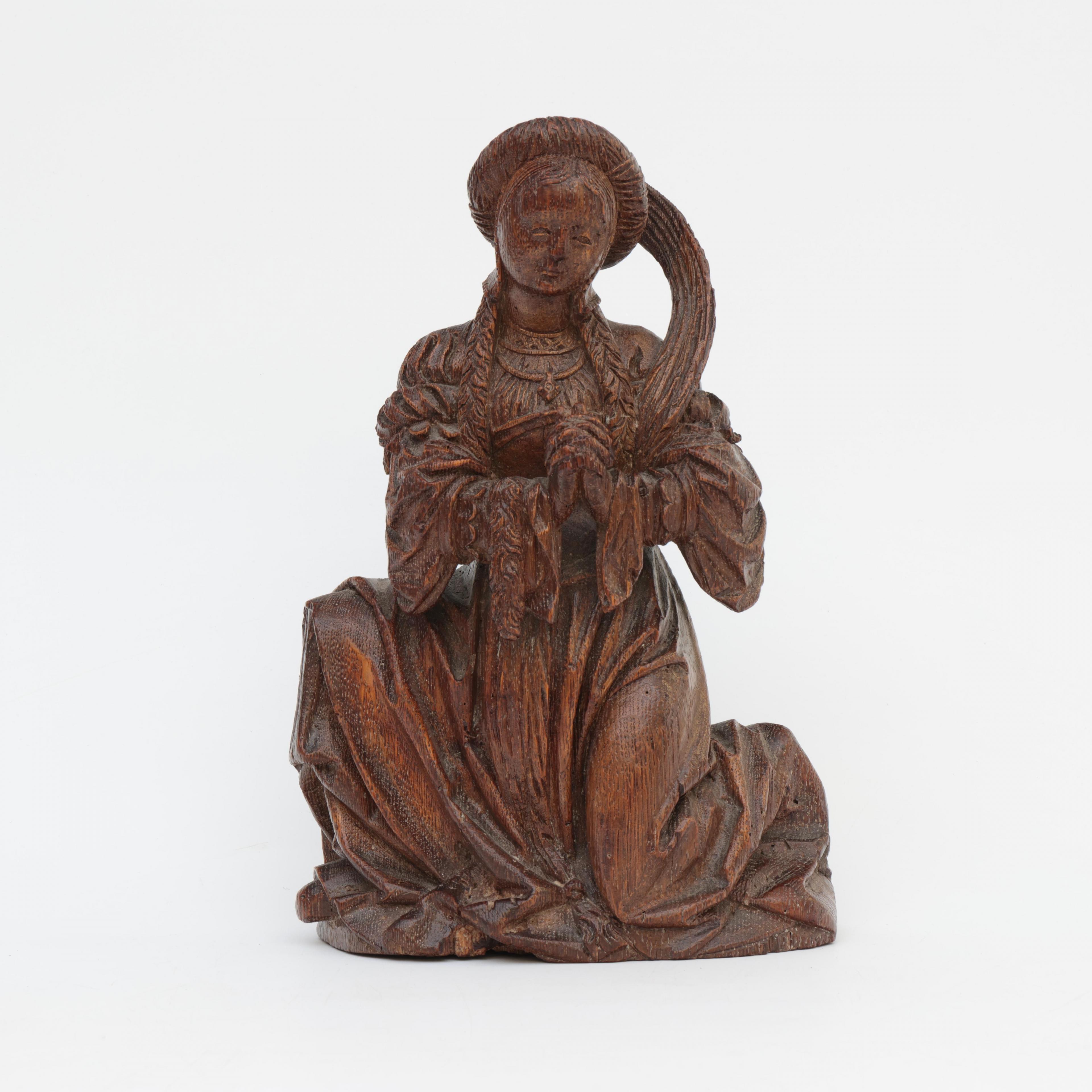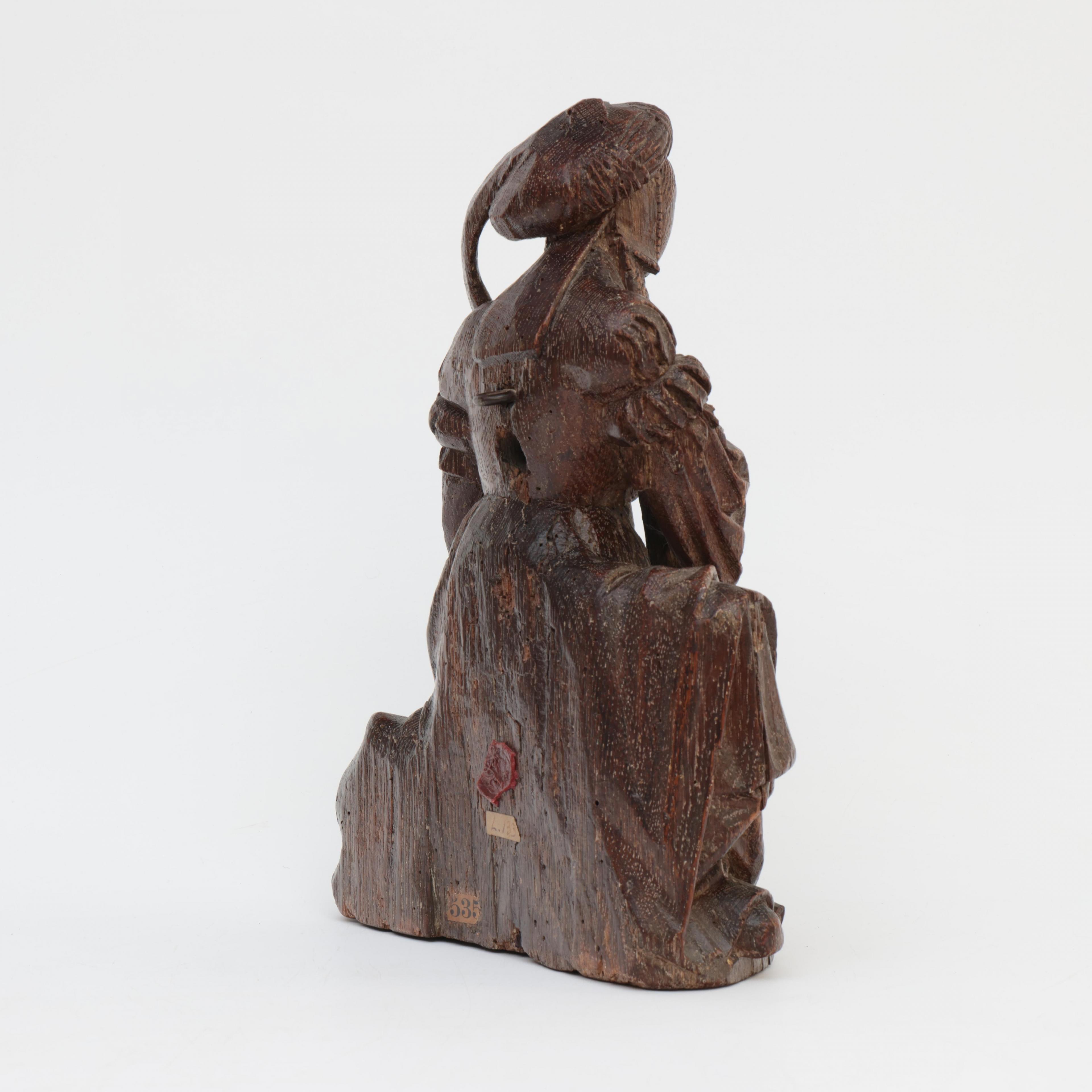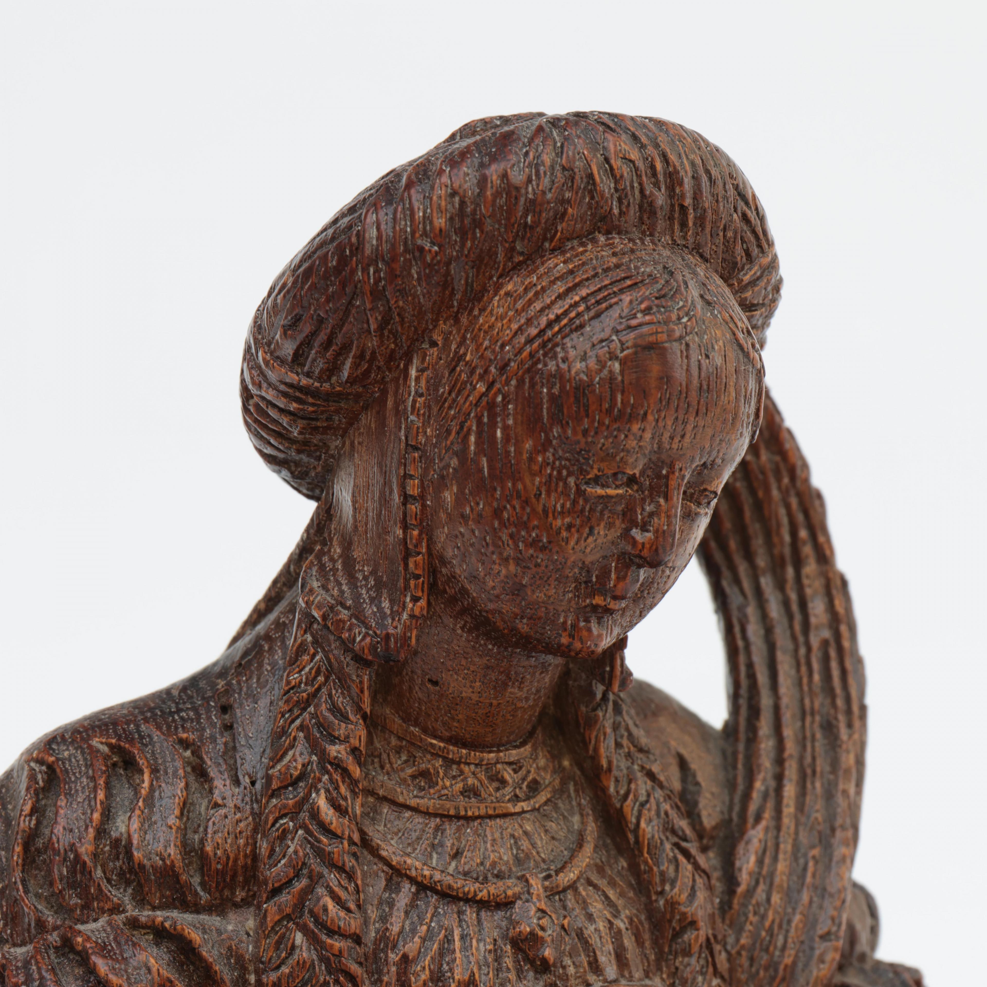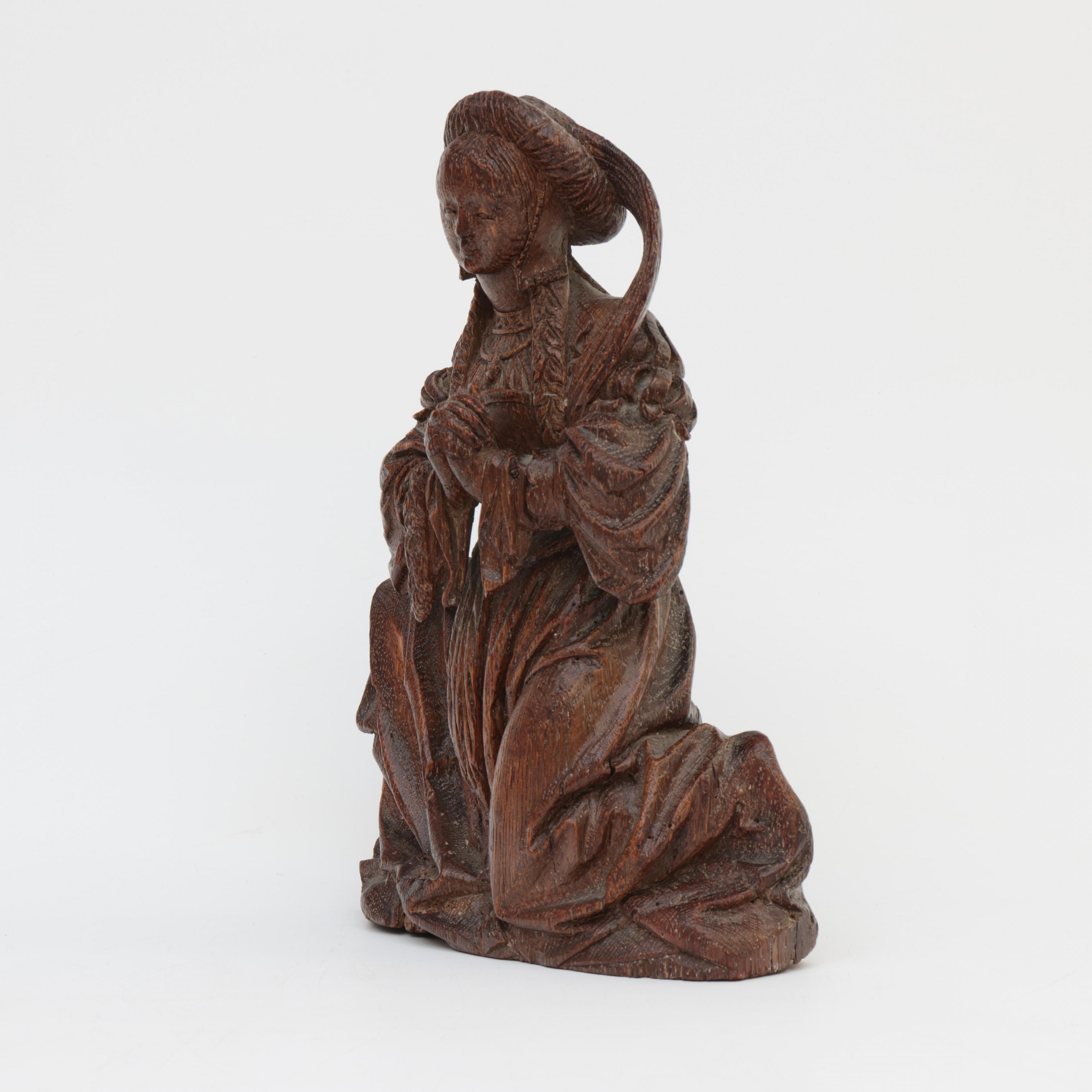 Brabant vermoedelijk Mechelen, eikenhouten sculptuur 'Maria-Magdalena', Circa 1500;