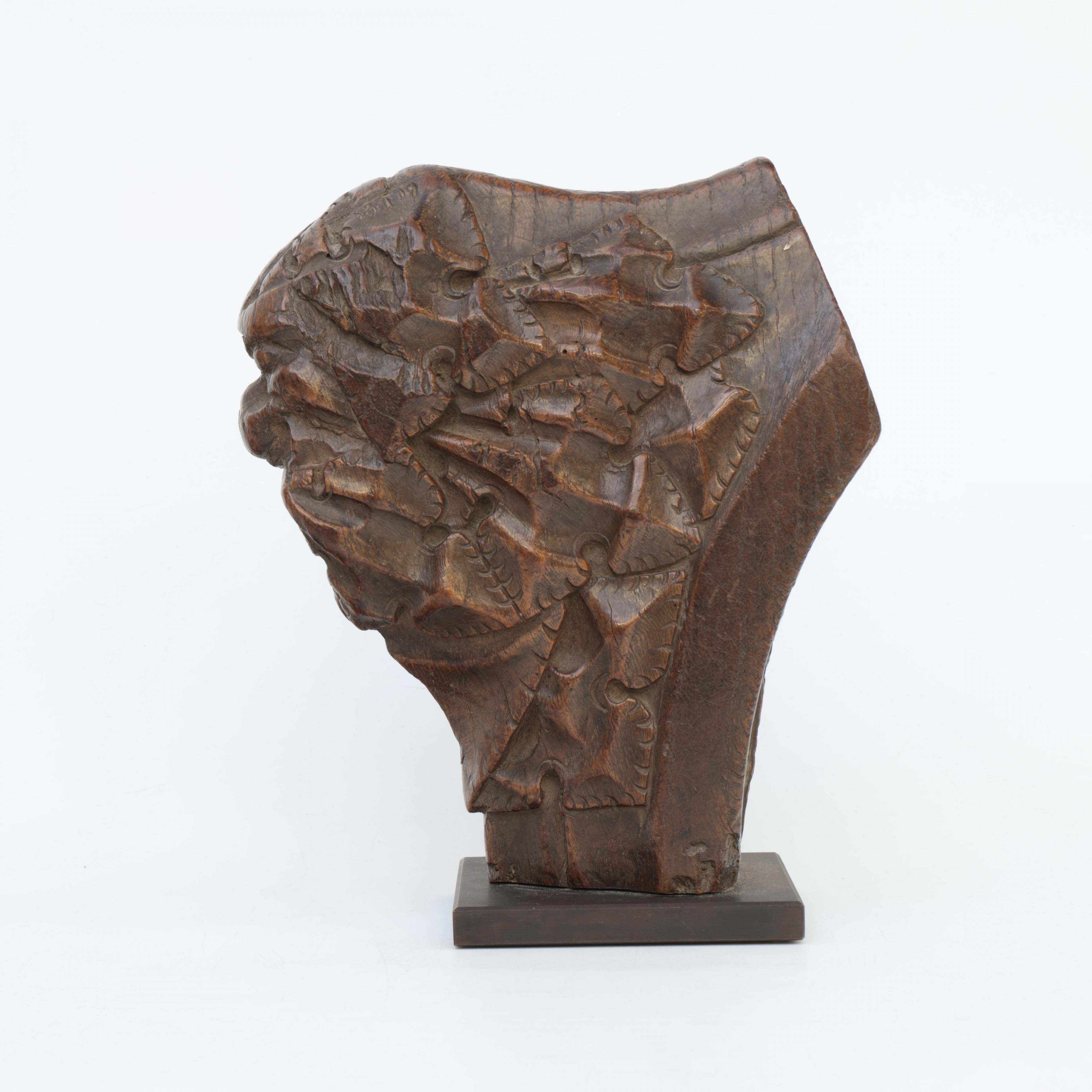 Uitgevoerd met klaverblad patronen en fantasiefiguur. Geplaatst op ijzeren voet.