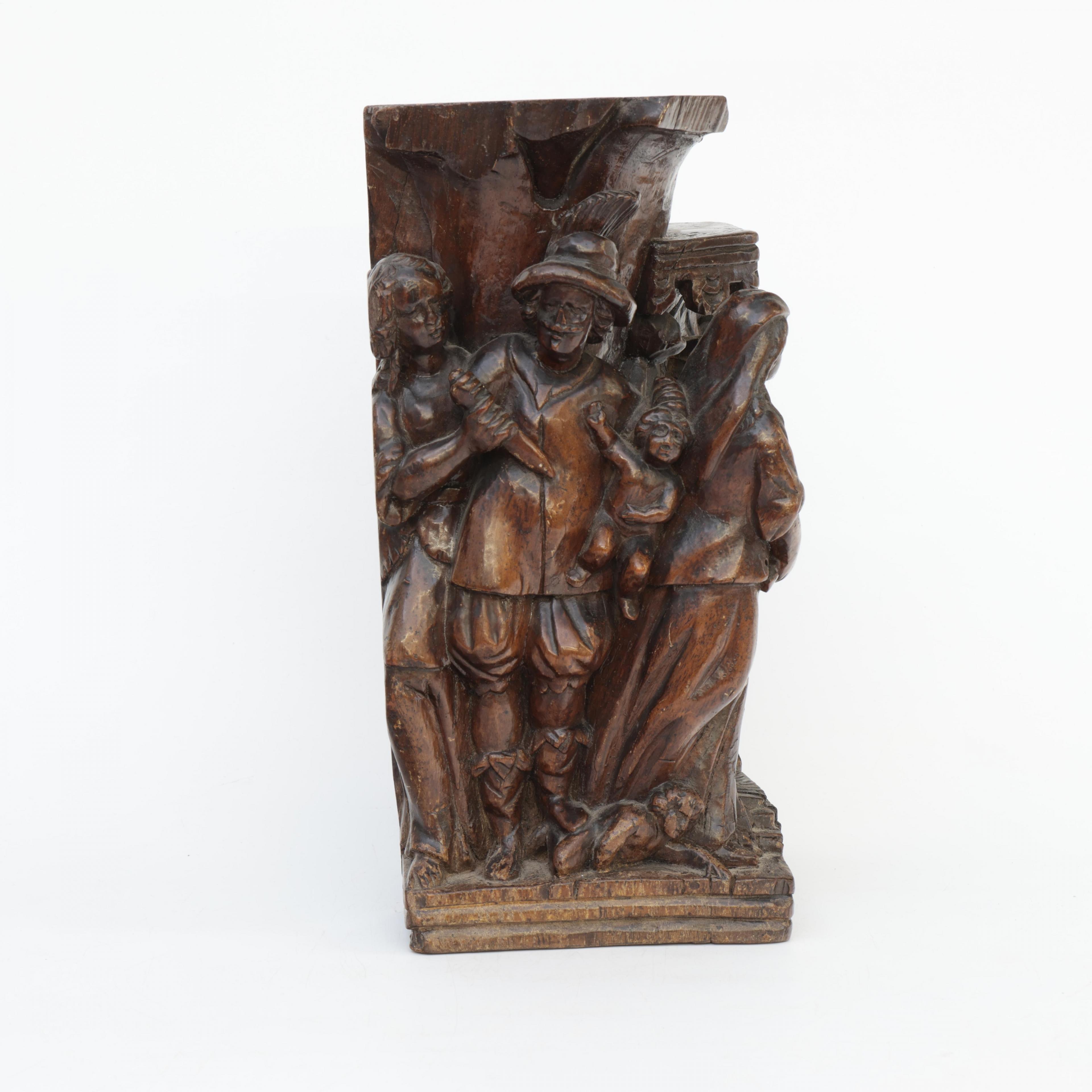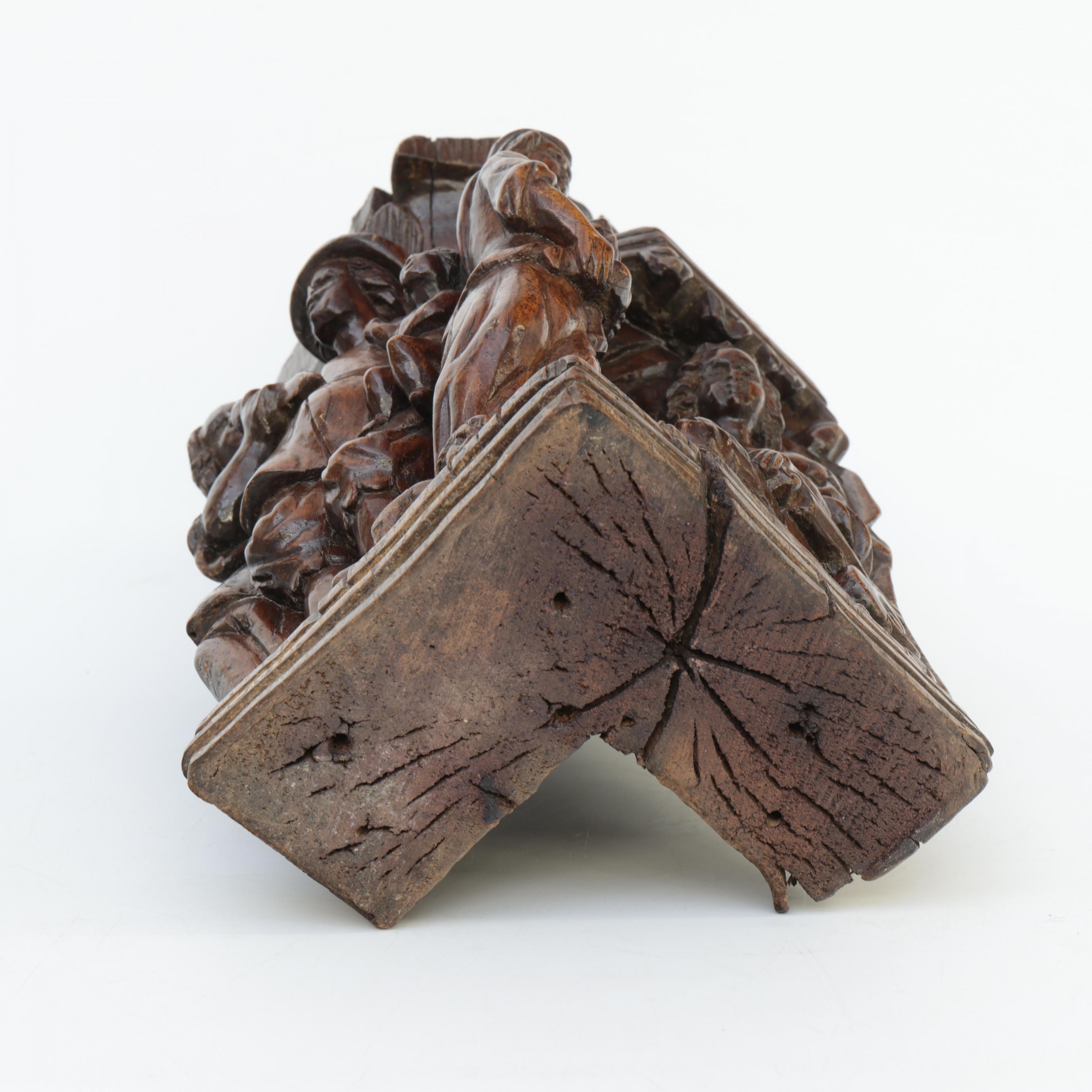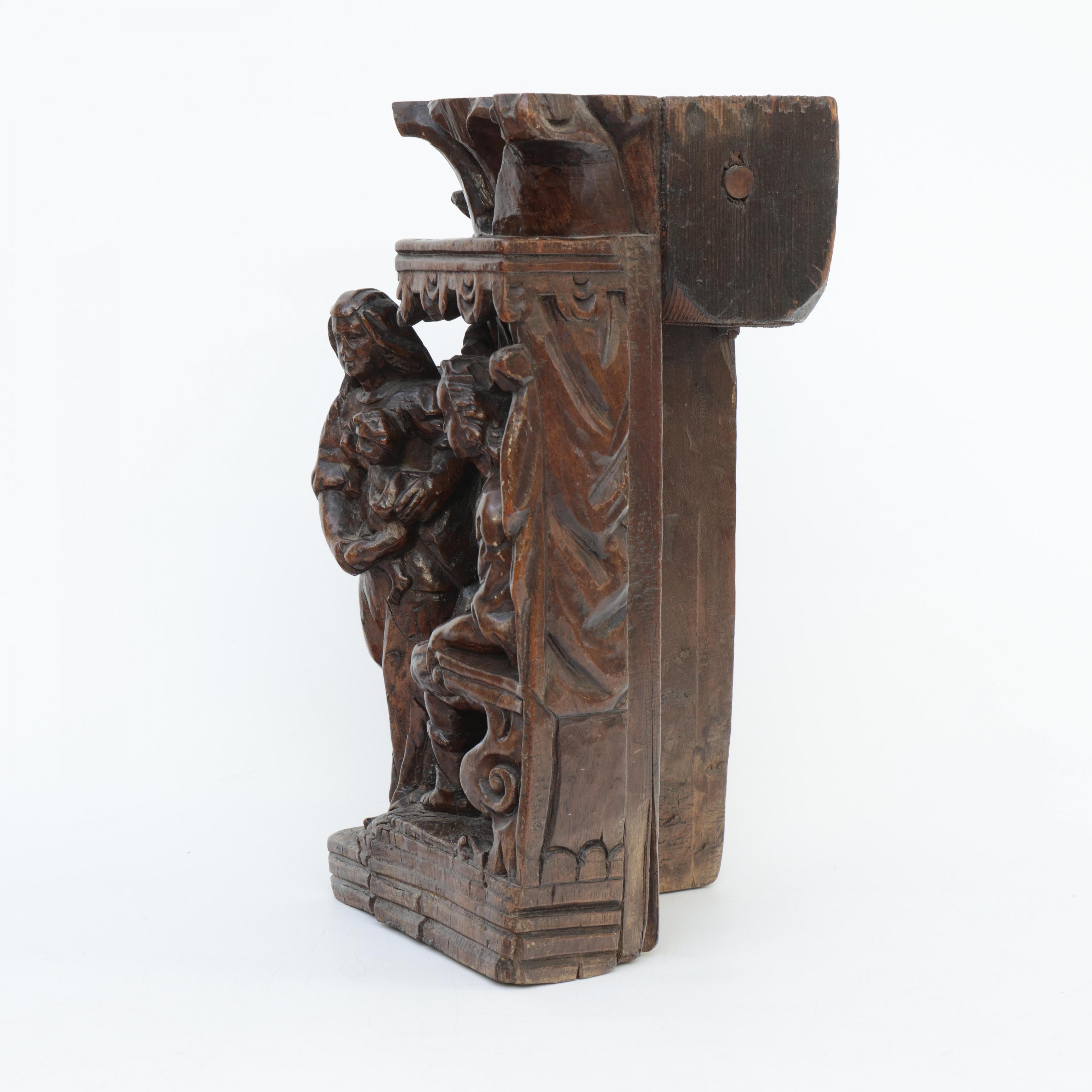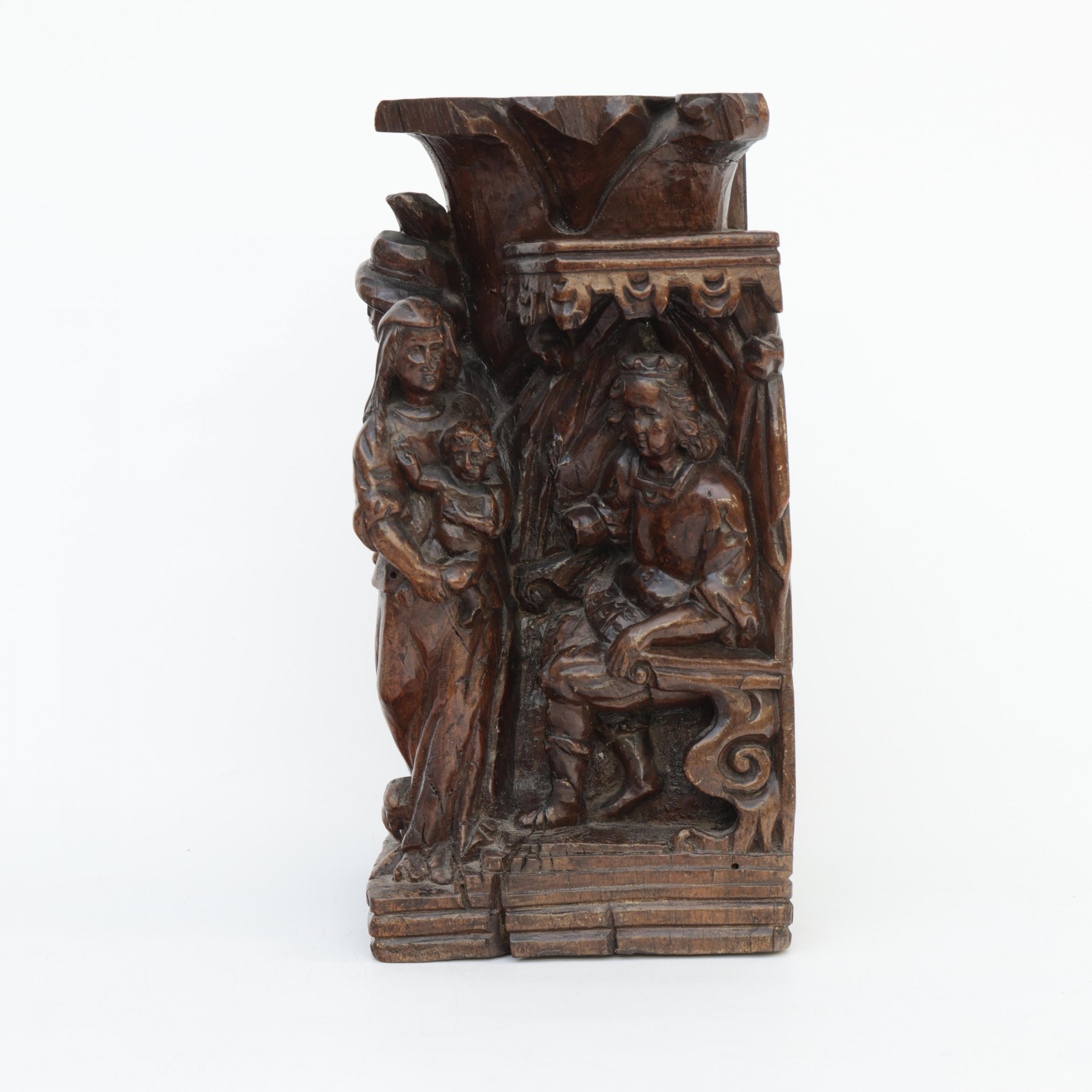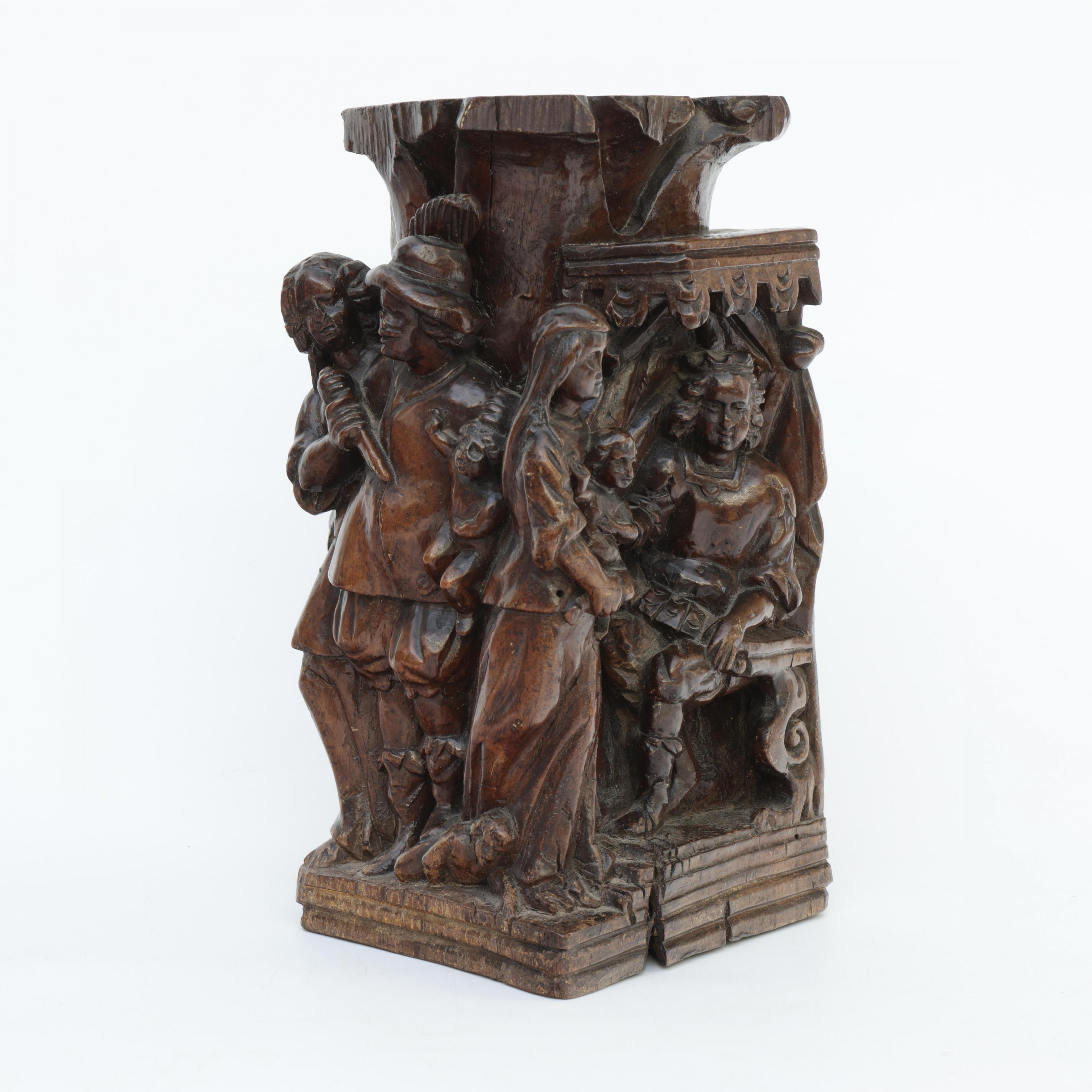 Frankrijk, notenhouten gestoken sculptuur voorstellende het Salomonsoordeel, 17e eeuw;
