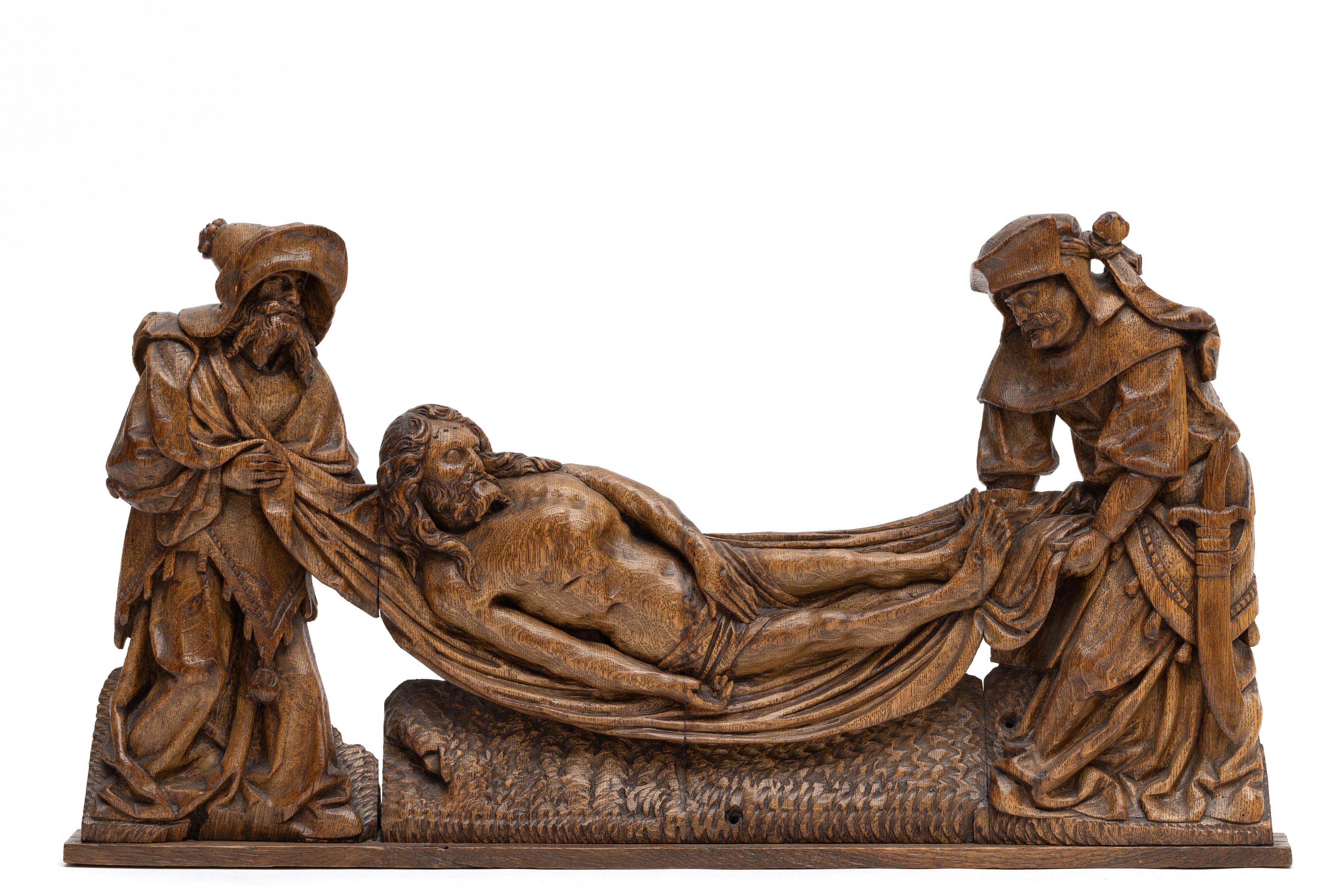Zuidelijke Nederlanden, eikenhouten sculptuur voorstellende de grafleging van Christus, eerste helft 16e eeuw;
