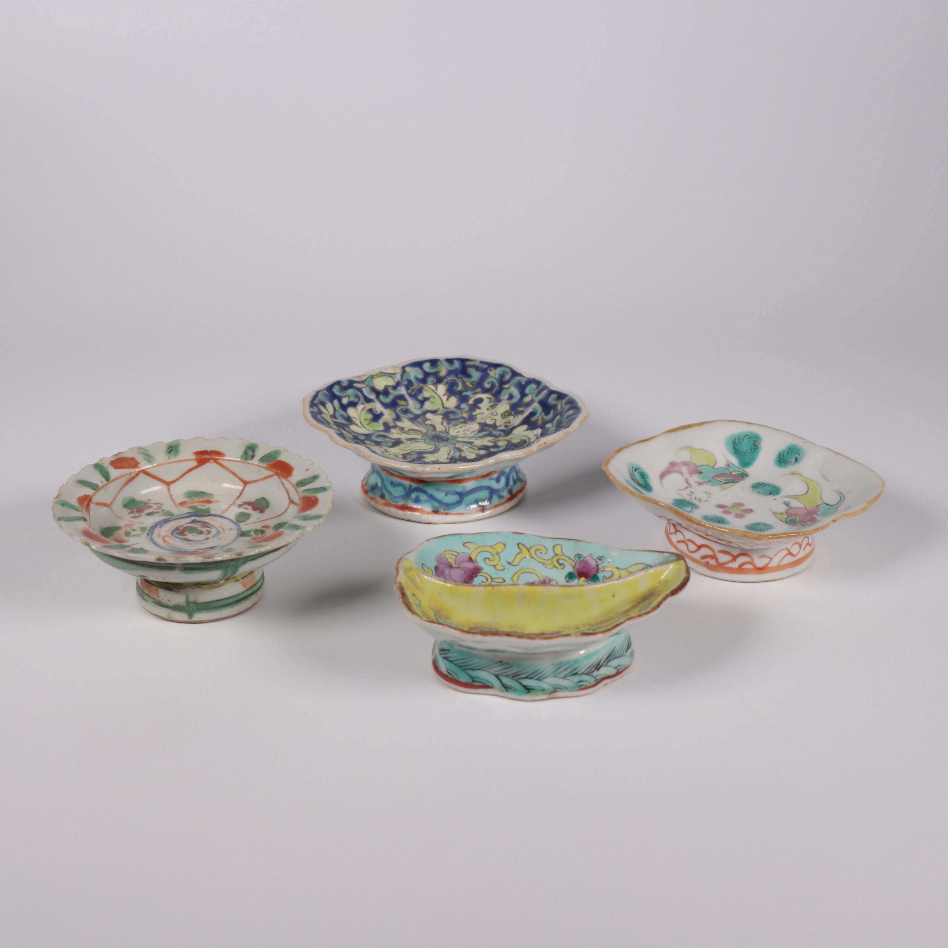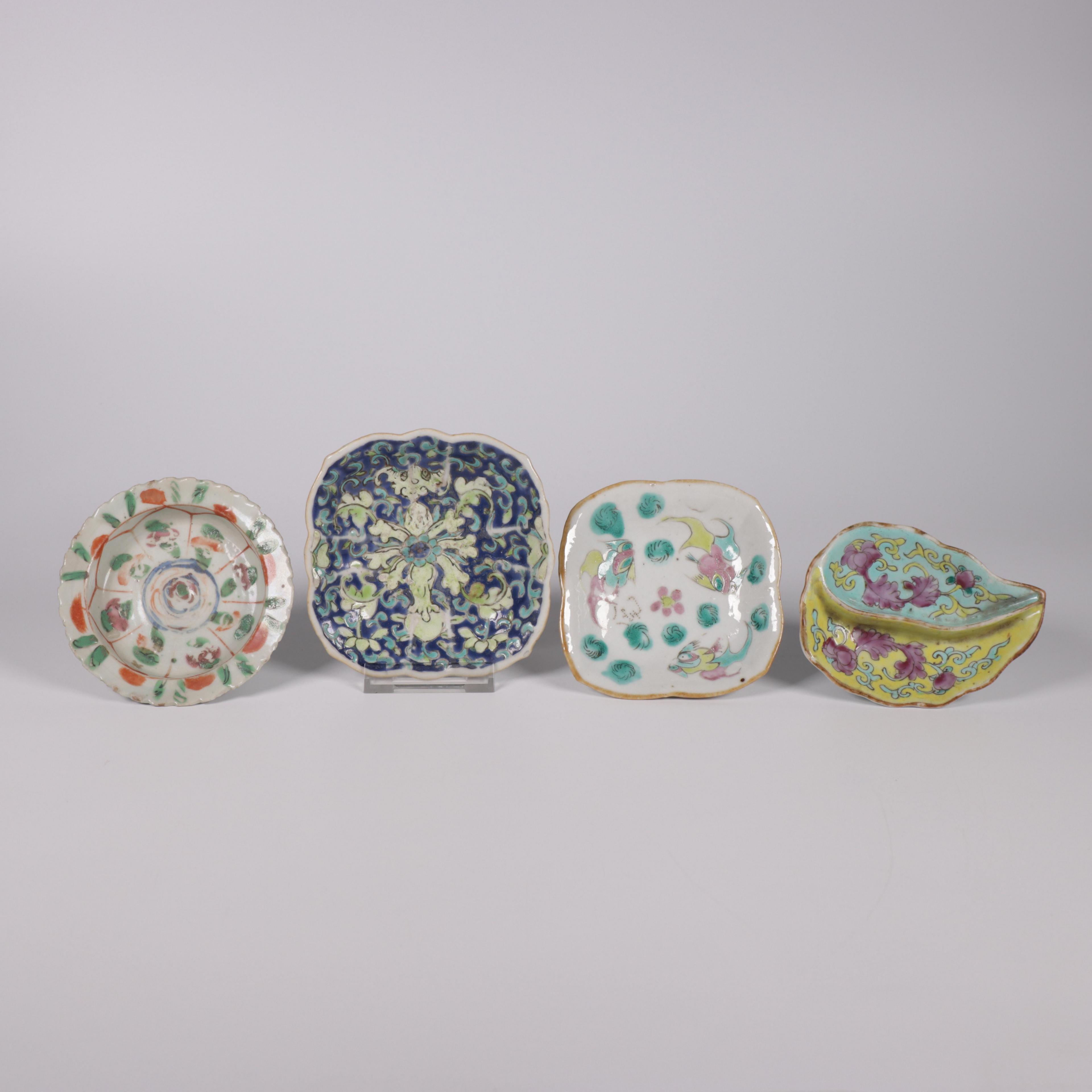 one leaf-shaped, each variously painted with flowers (small damages and wear)