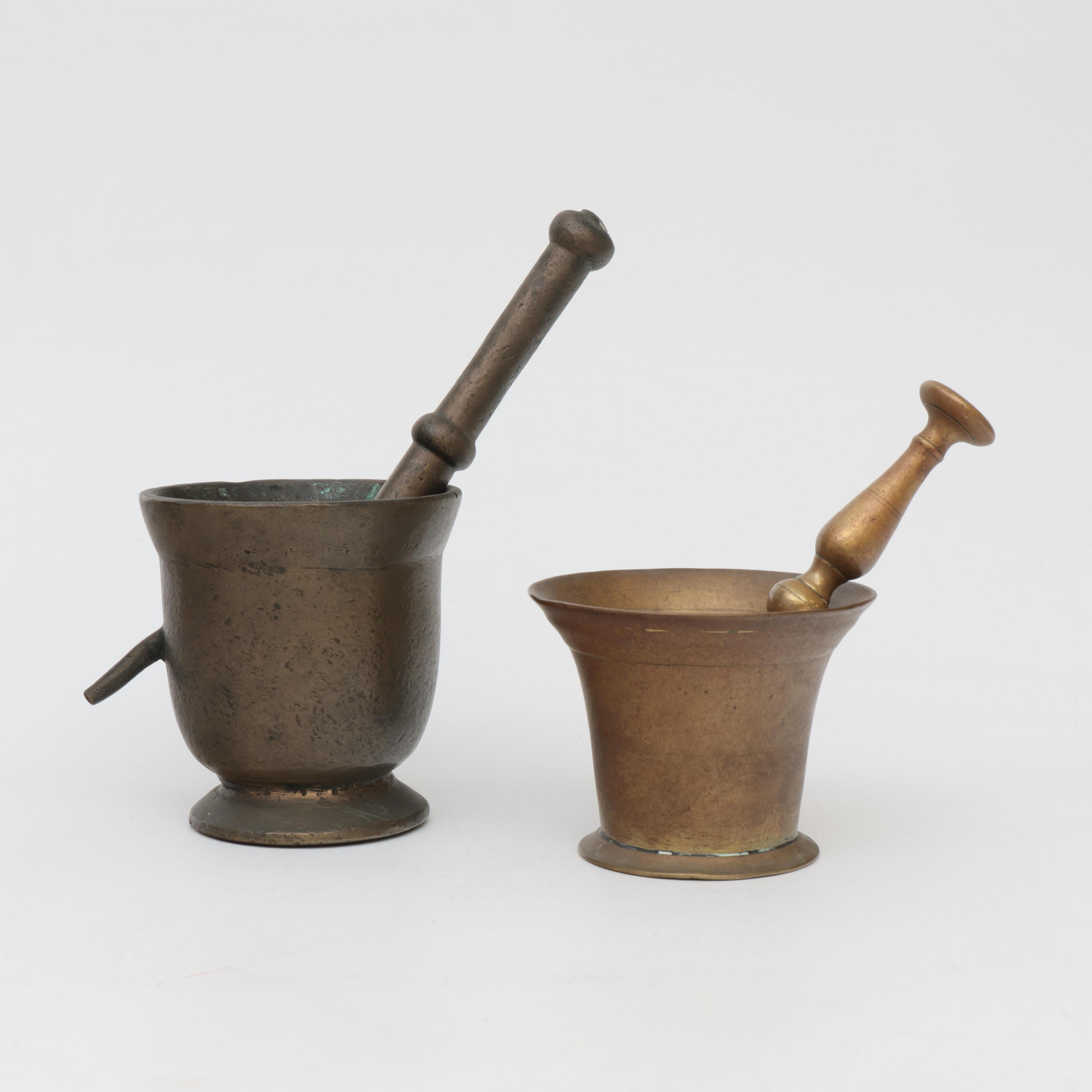 Hierbij koperen vijzel. Beide compleet met stamper.