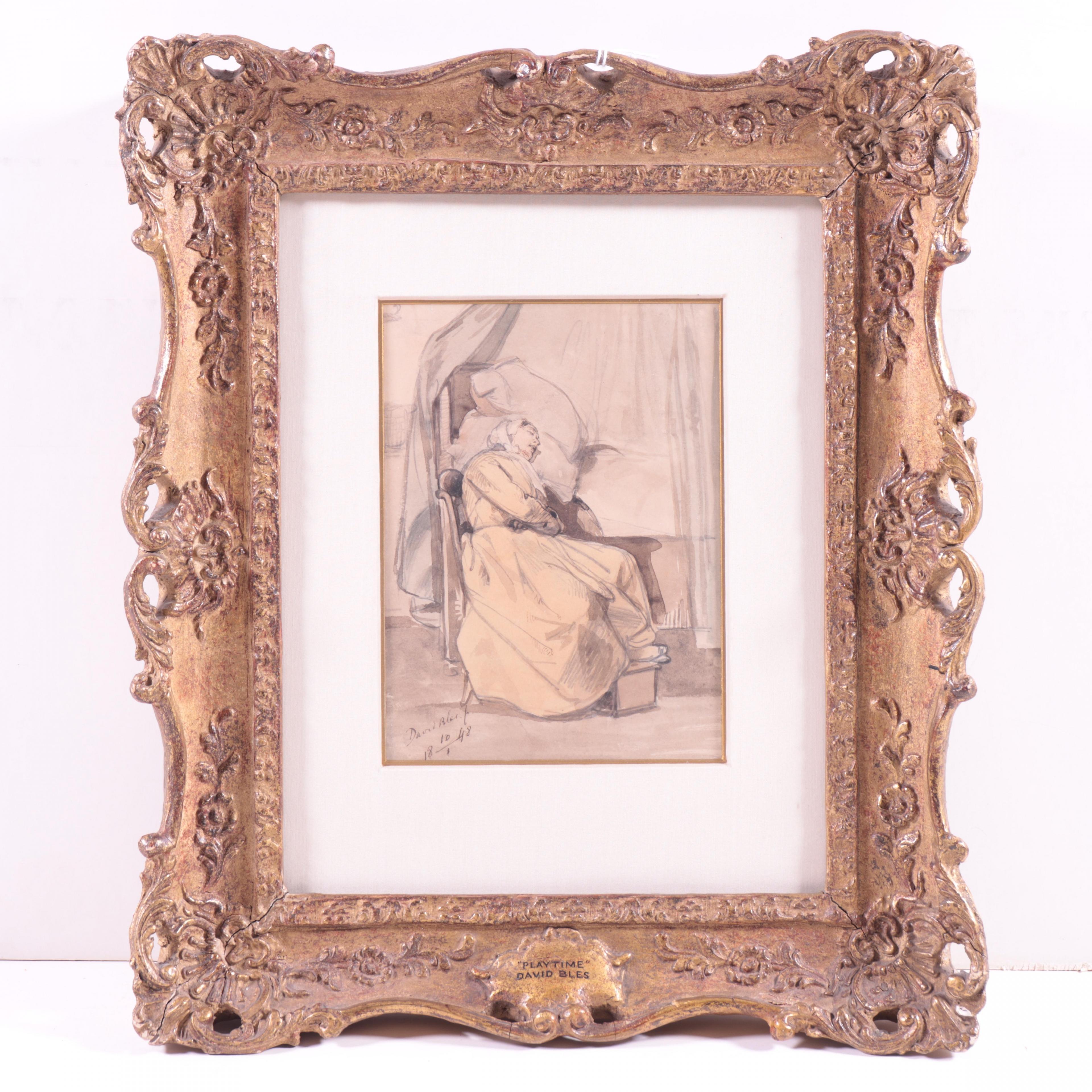 inkt en aquarel, gesigneerd linksonder, gedateerd 10-1-1848, 19 x 14 cm.