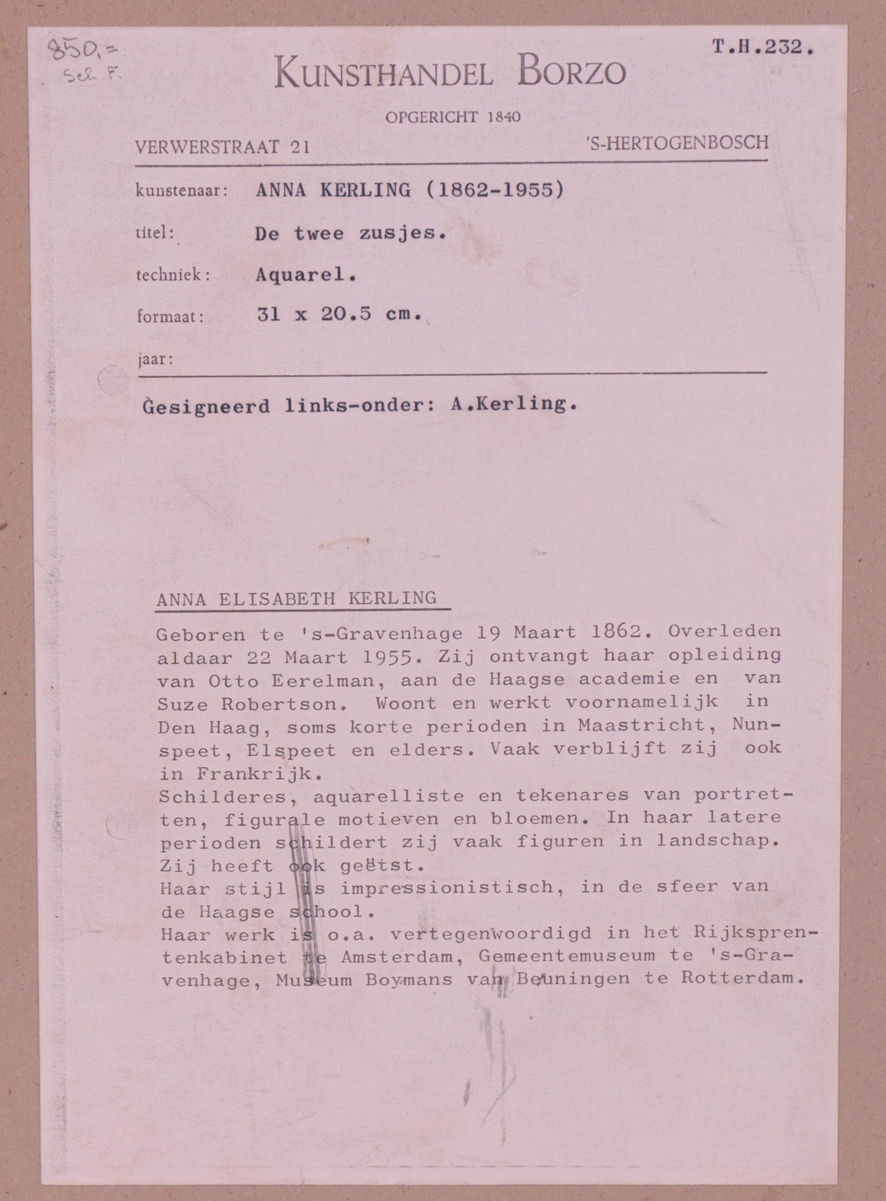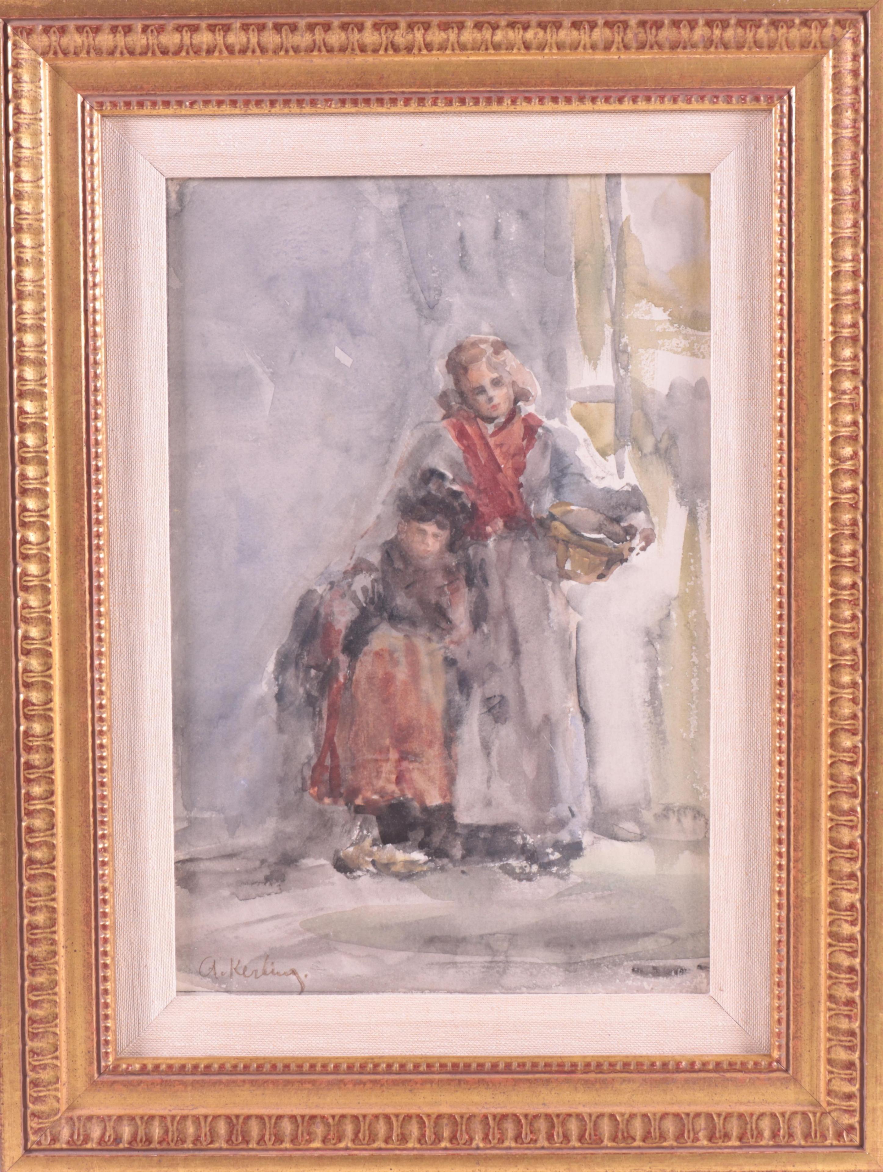 aquarel, gesign. l.o., herkomst: Kunsthandel Borzo, 31 x 20 cm. en aquarel, gesign. l.o., 30 x 20 cm.