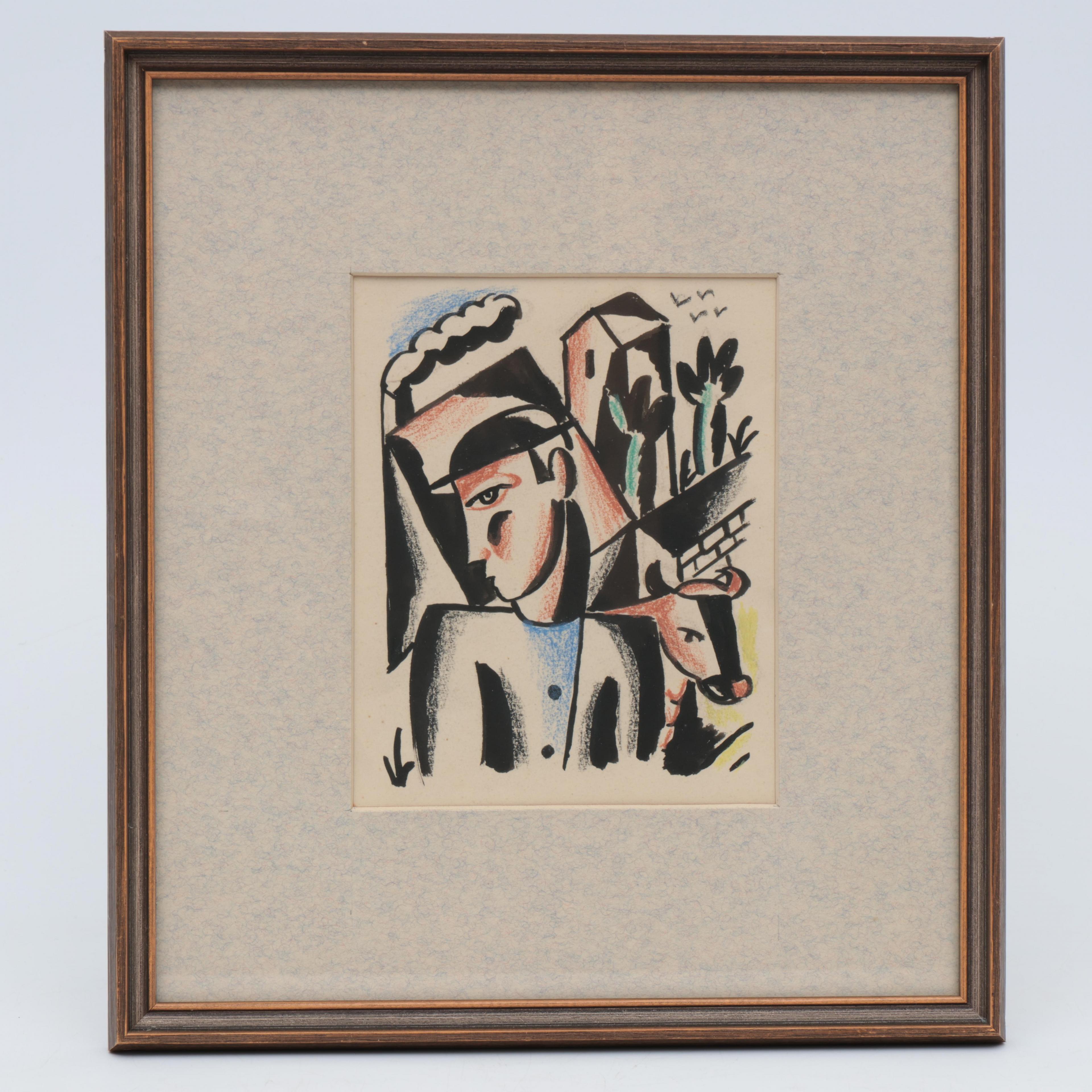 tekening, ongesigneerd, herkomst: Van Wisselingh, tentoonstelling werken uit atelier 1979, 15 x 12 cm.