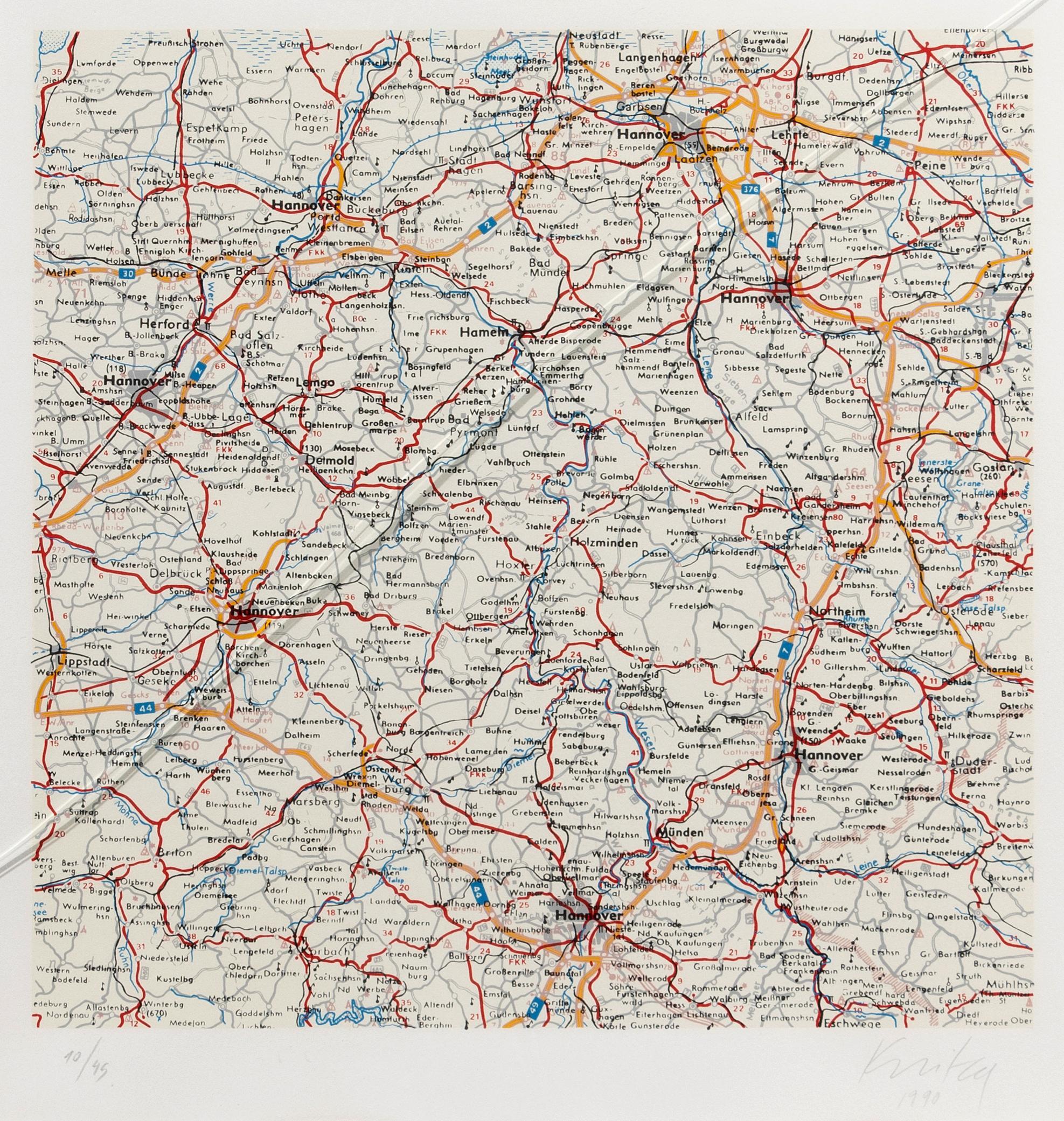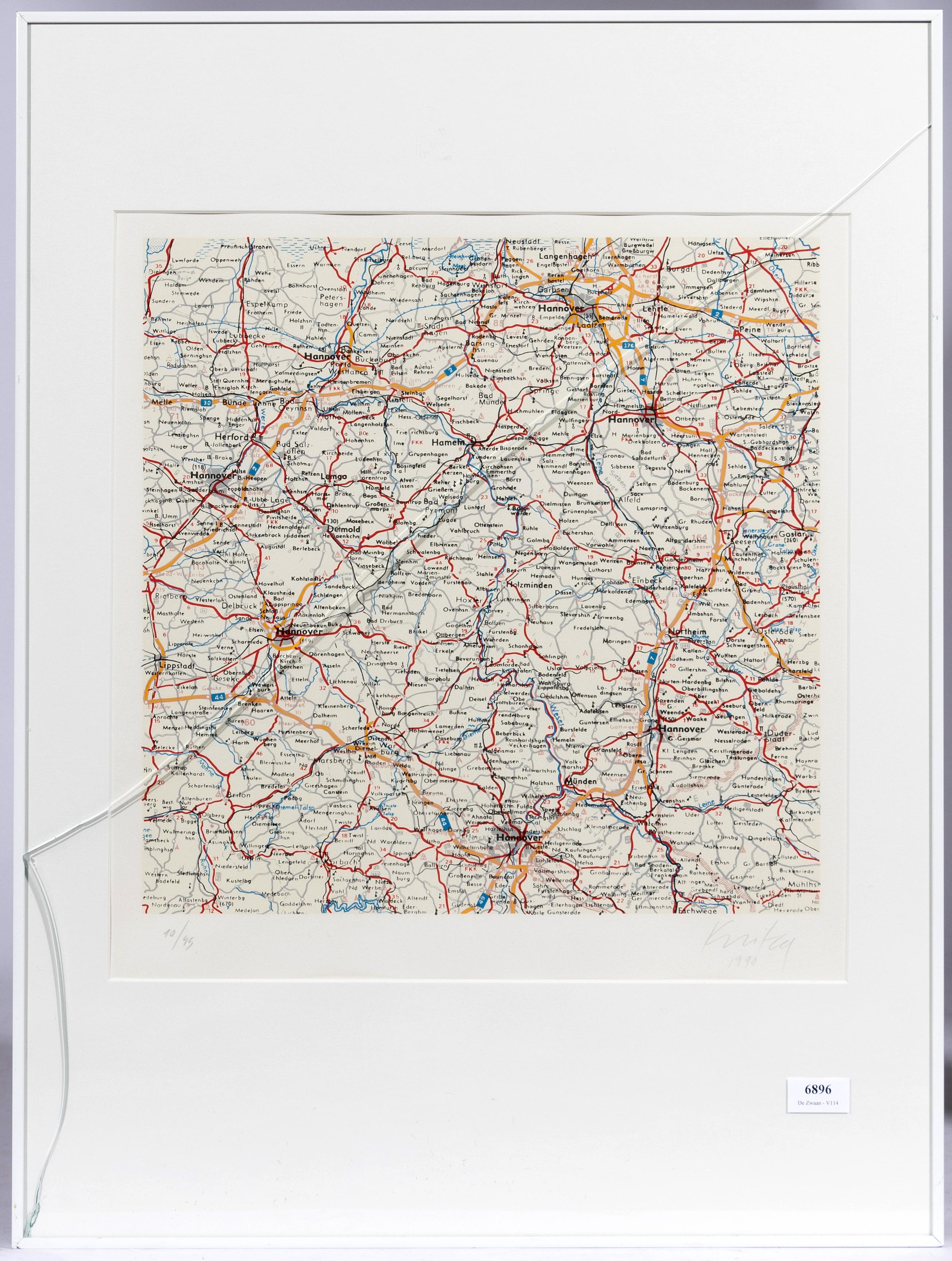 seriegrafie, gesign. r.o., 1990, 10/45, glas gebroken, 48 x 45 cm.