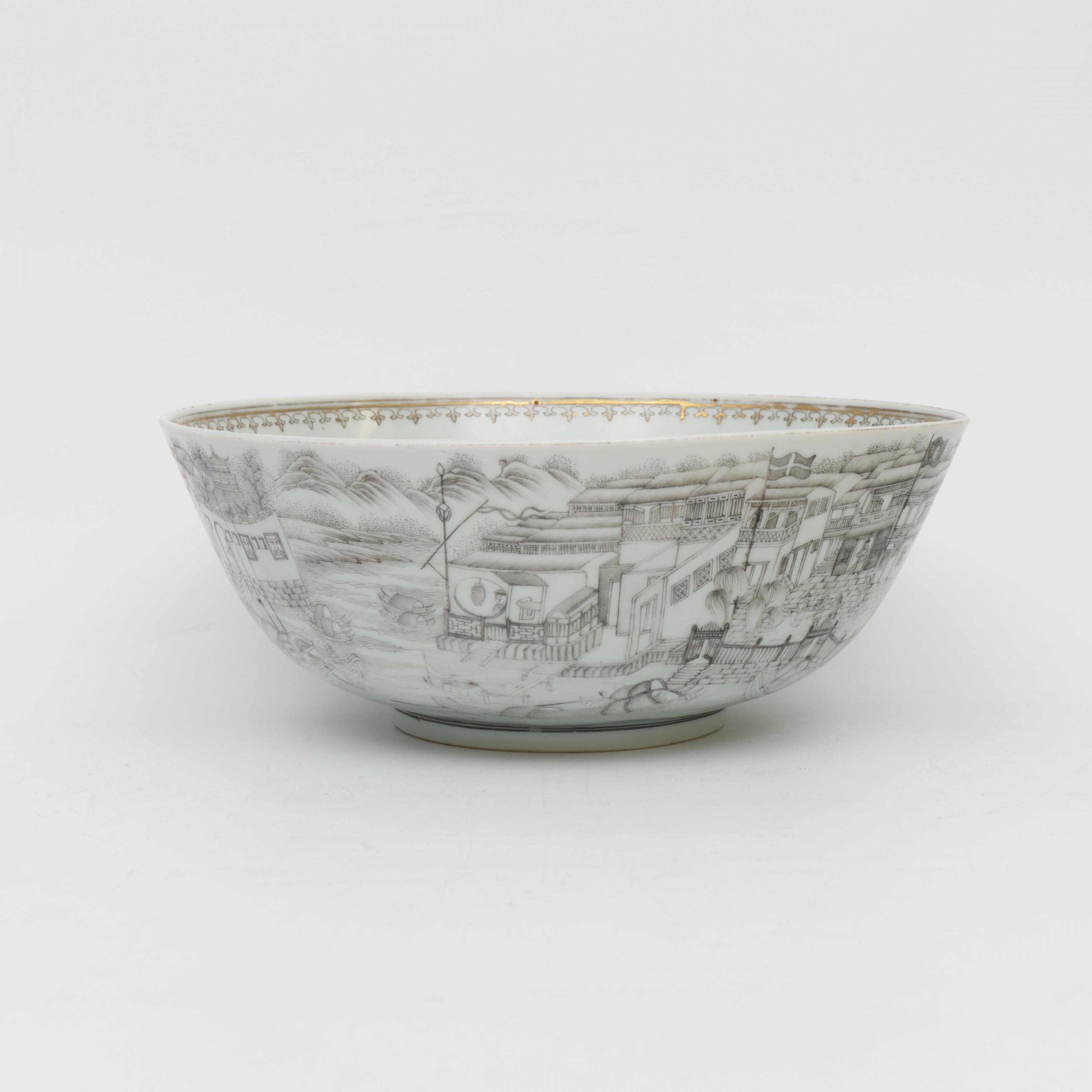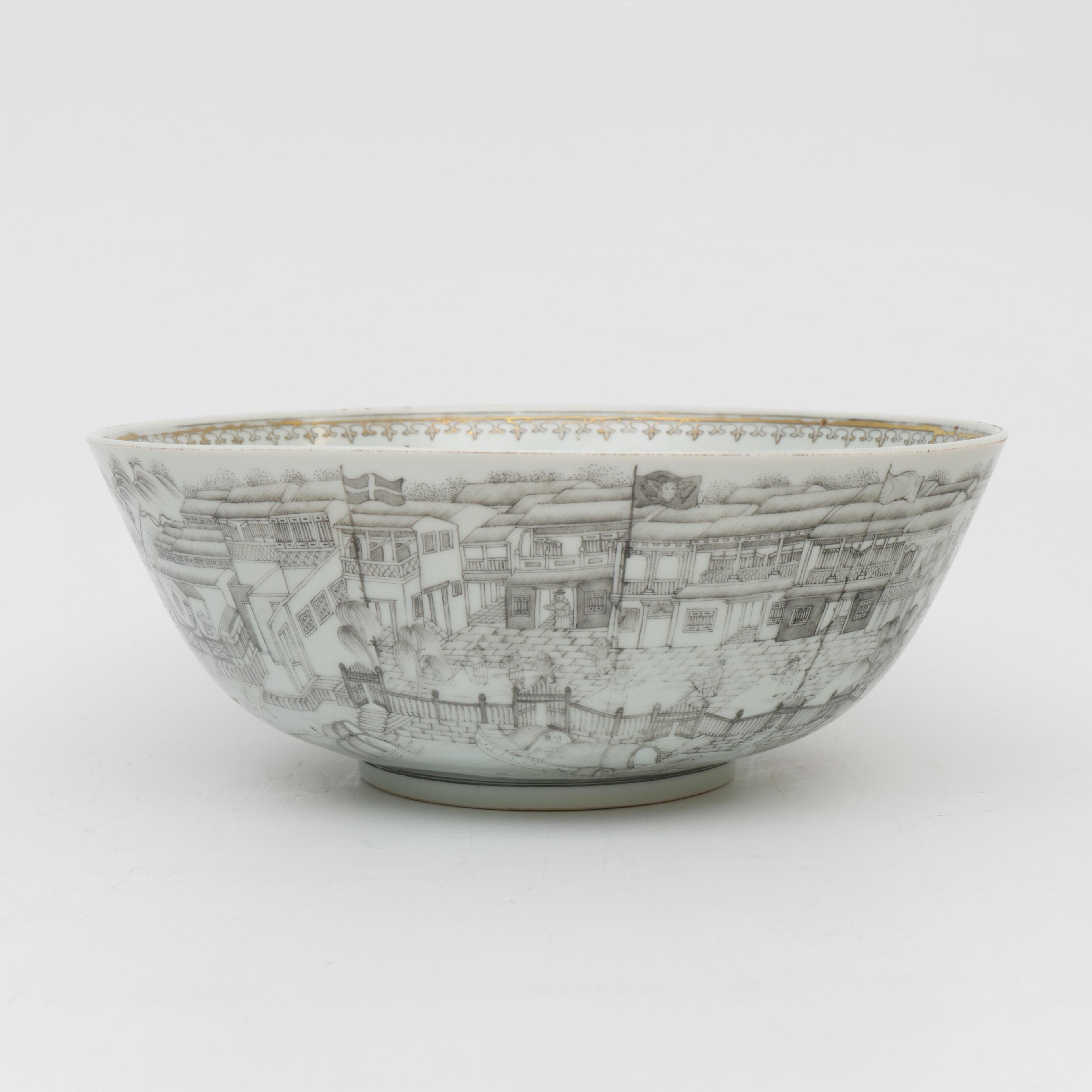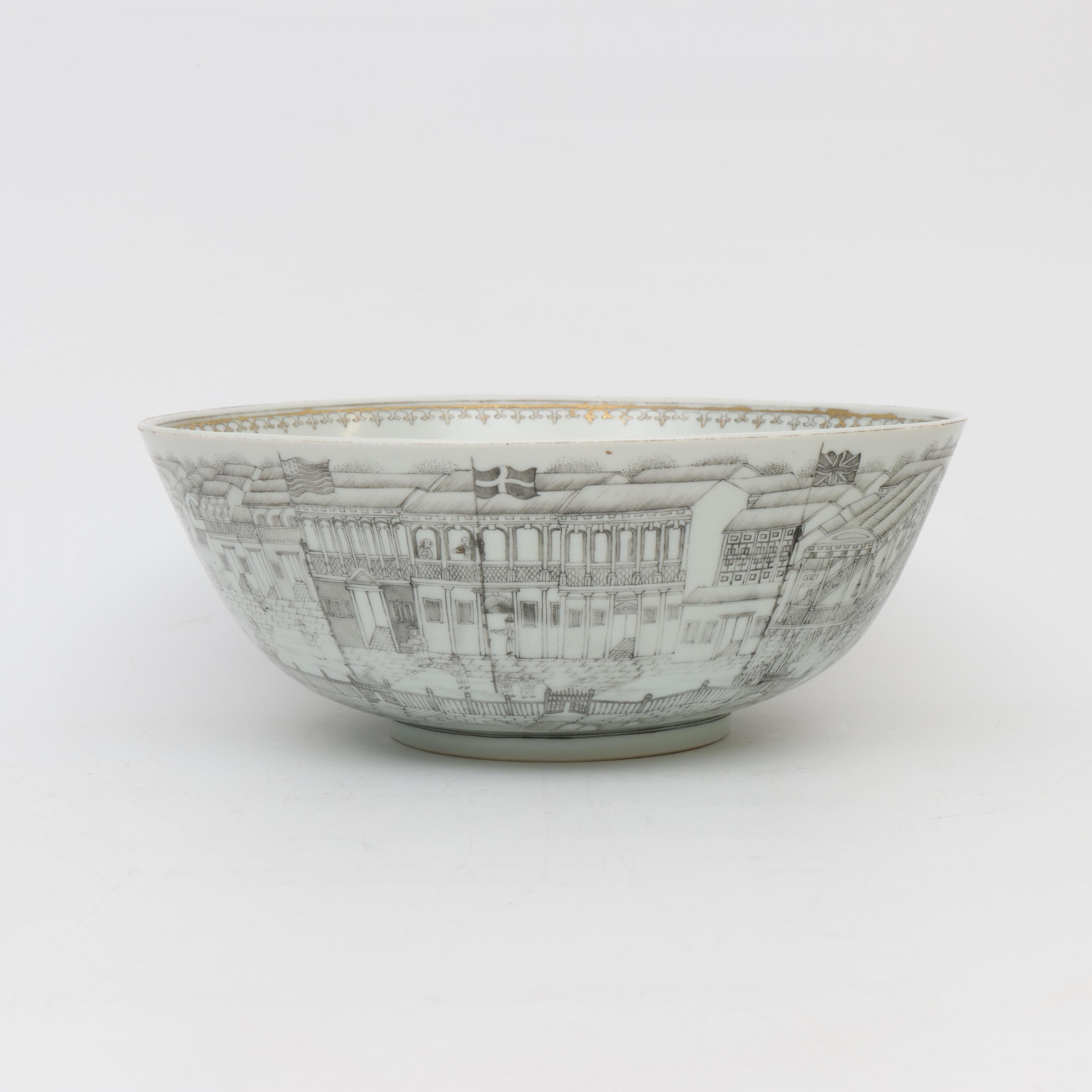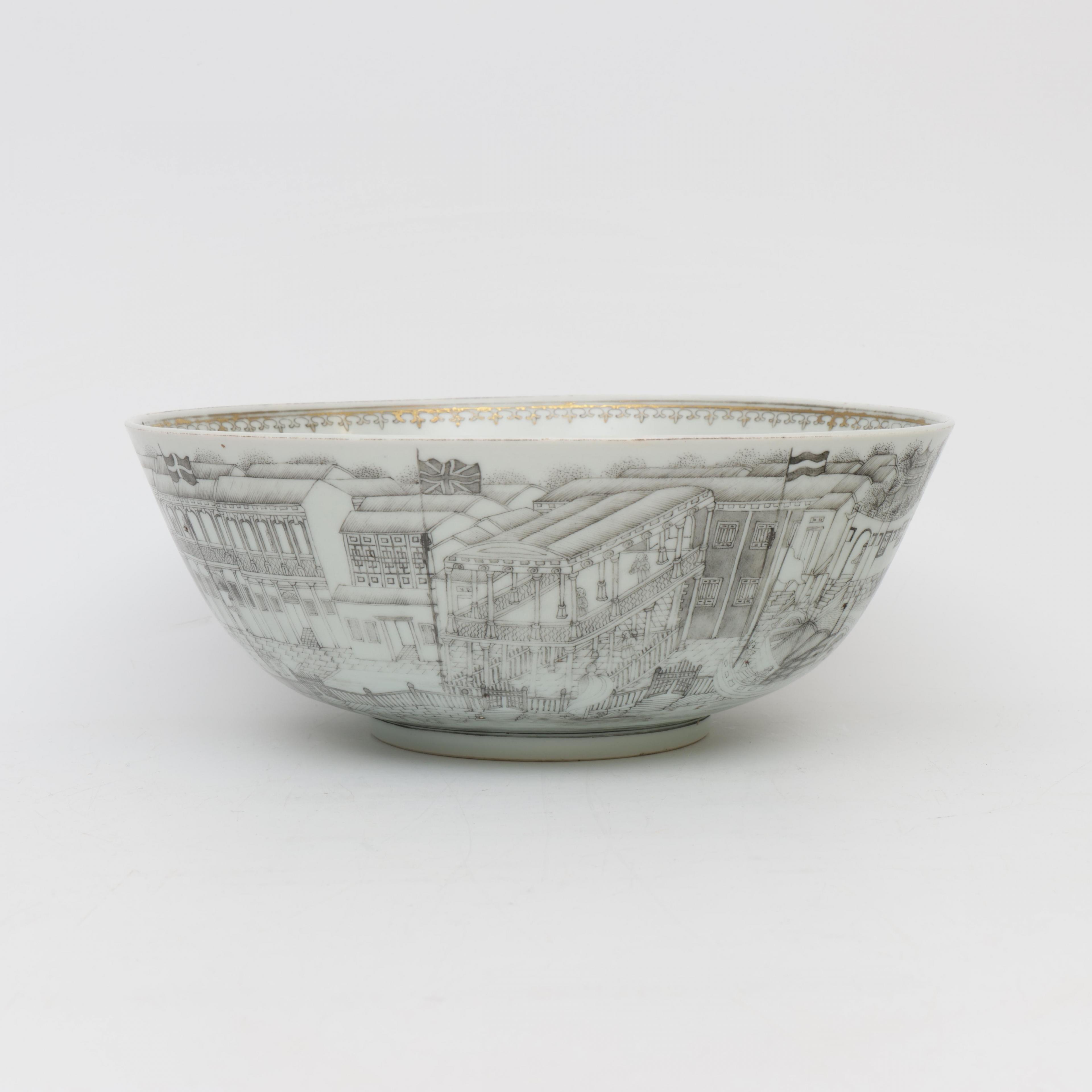China, an export grisaille porcelain 'Hongs of Canton' bowl, late Qing dynasty (1644-1912),