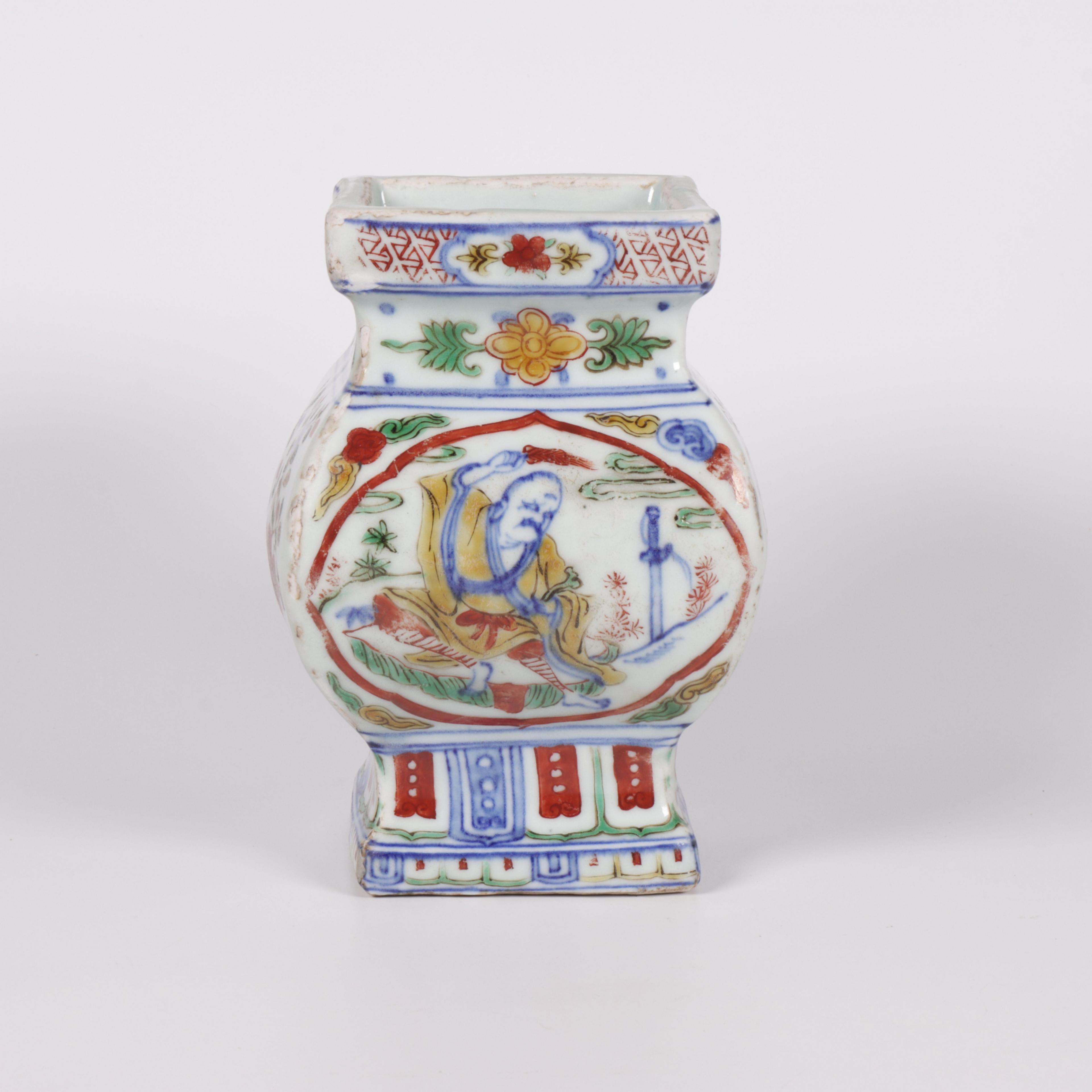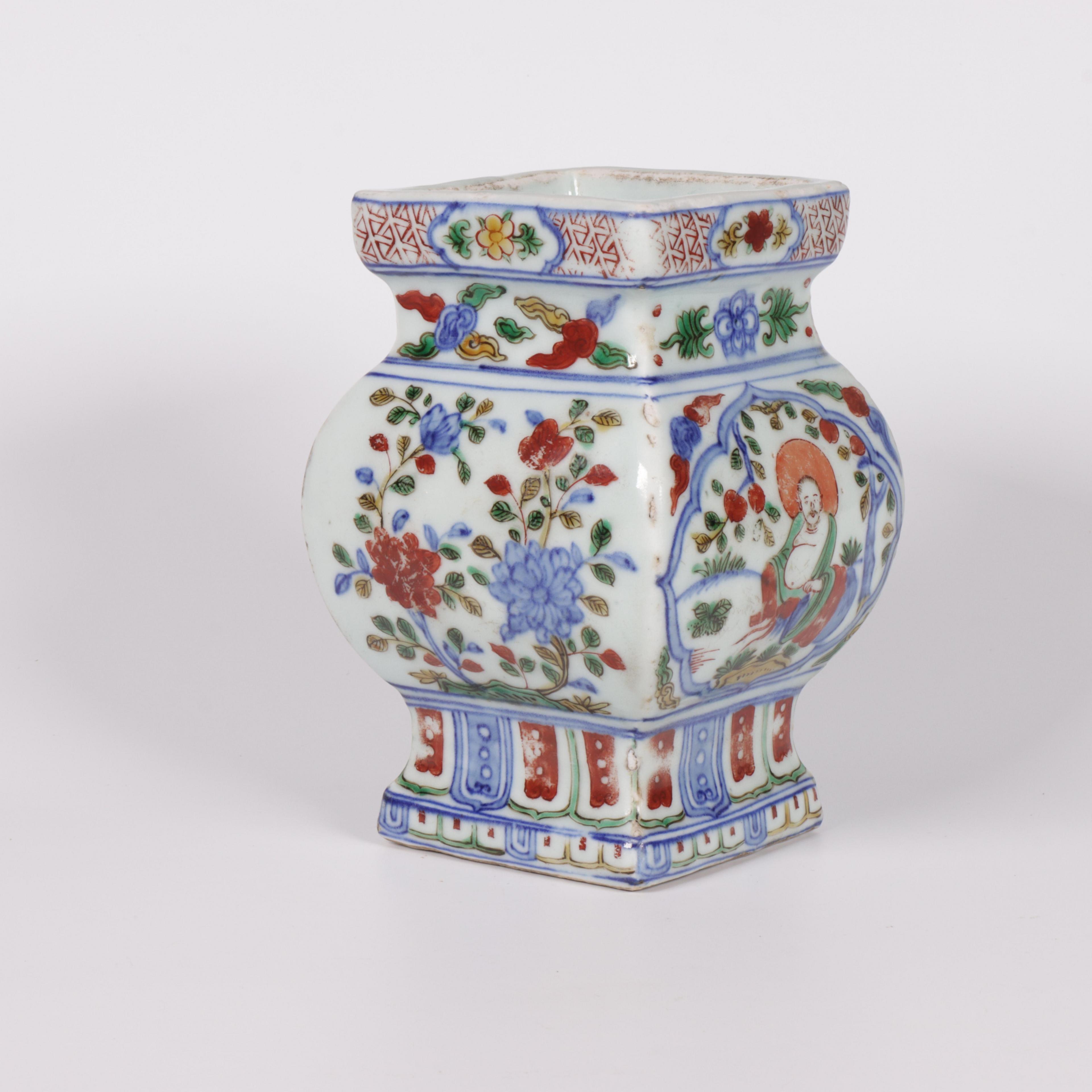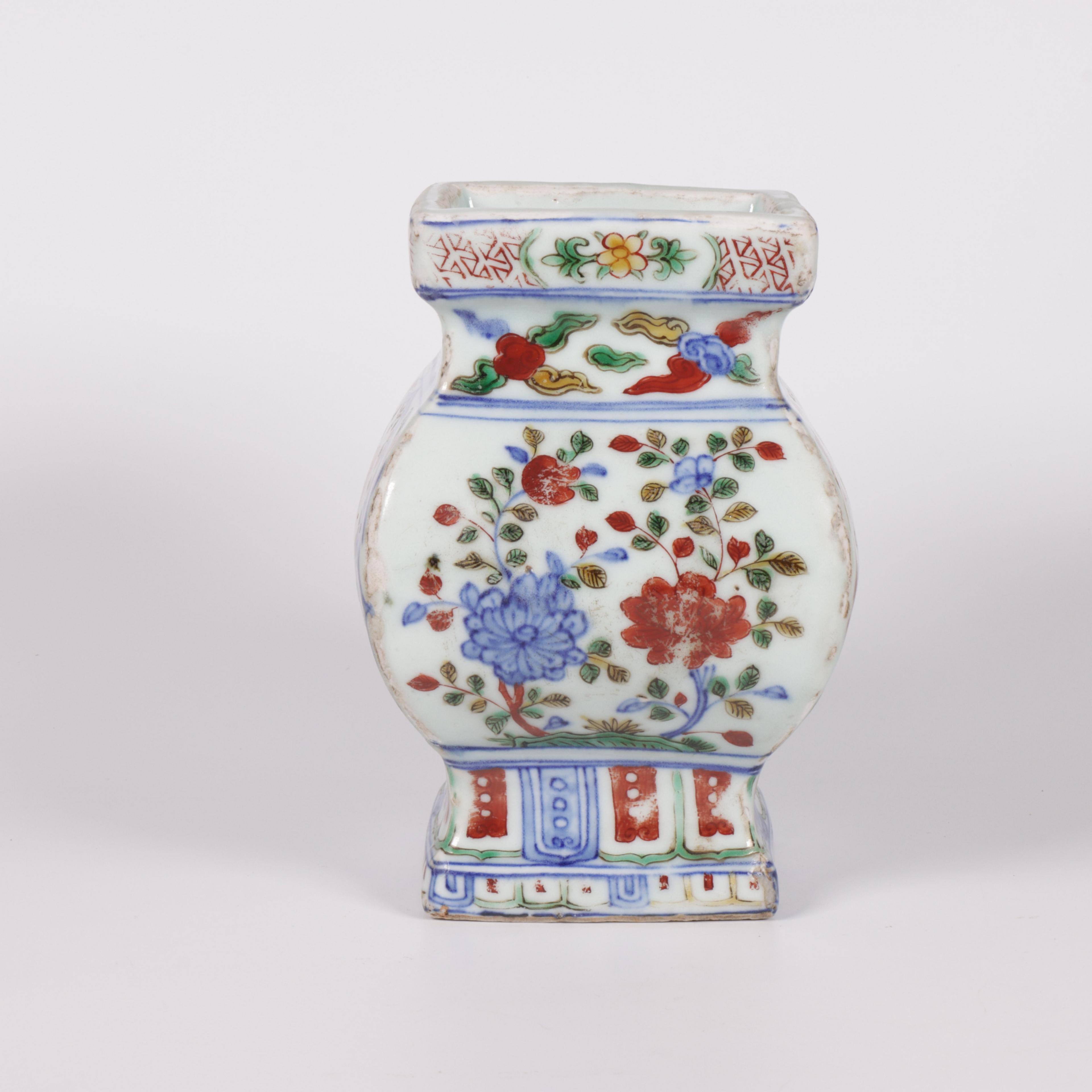 China, a doucai porcelain square vase, probably late Ming/ early Qing dynasty (ca. 17th century),