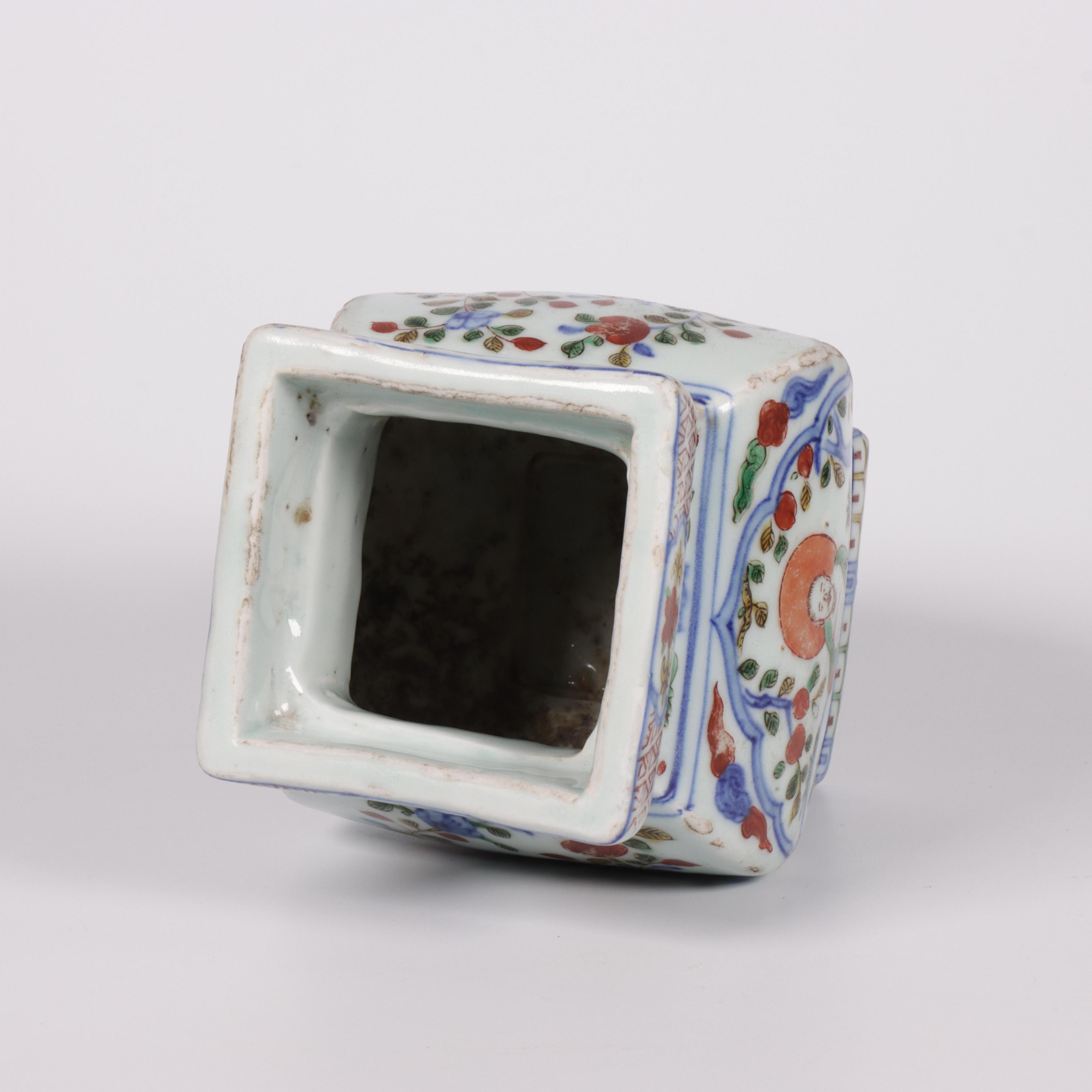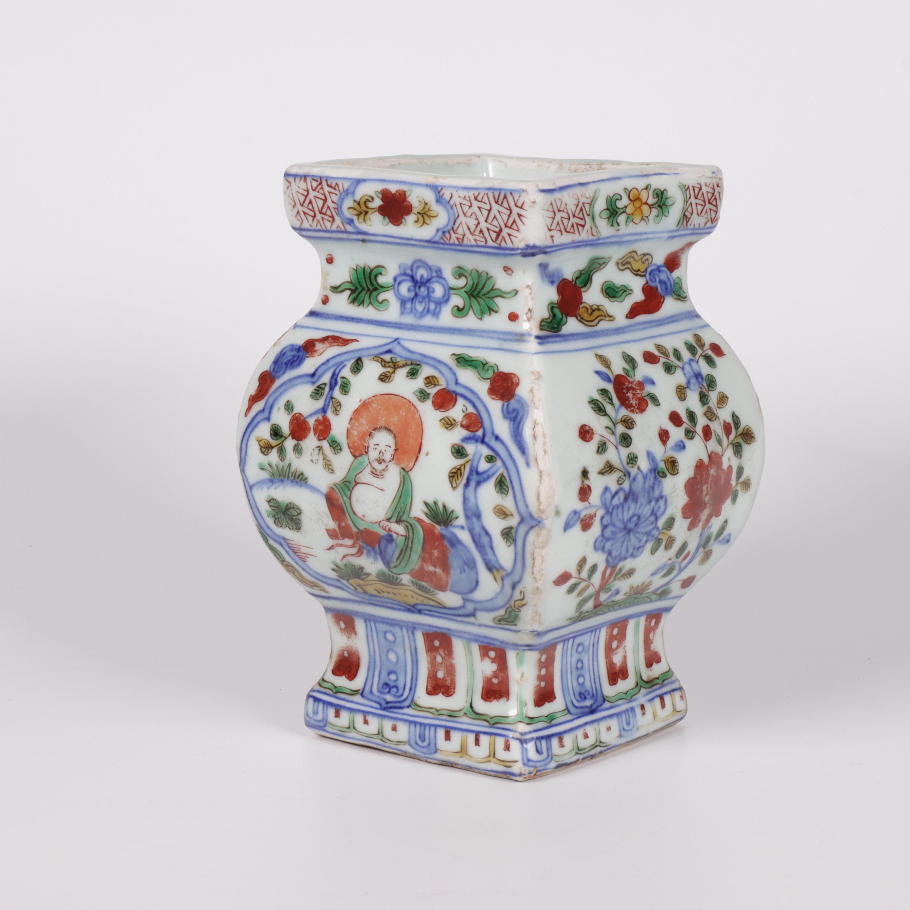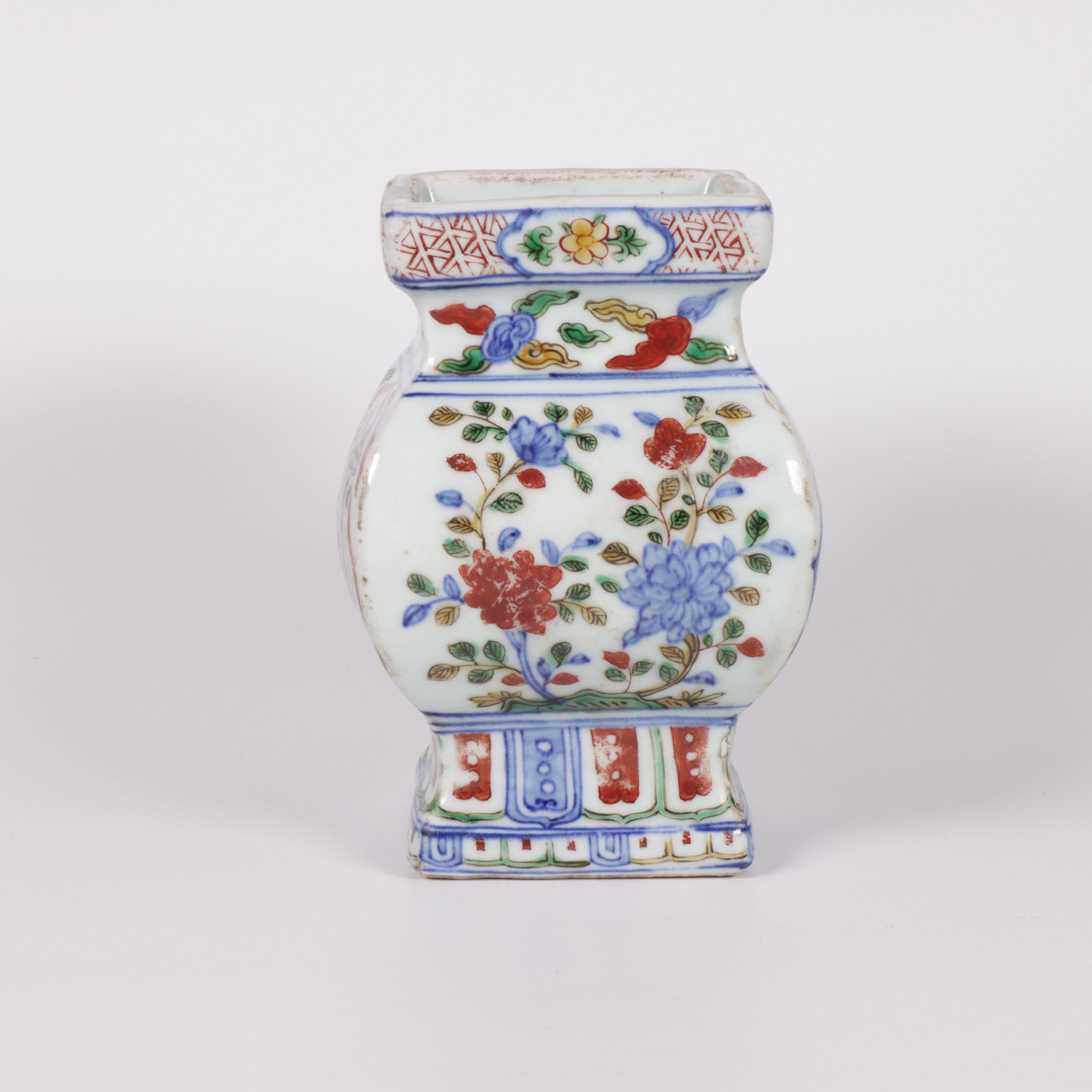 China, a doucai porcelain square vase, probably late Ming/ early Qing dynasty (ca. 17th century),