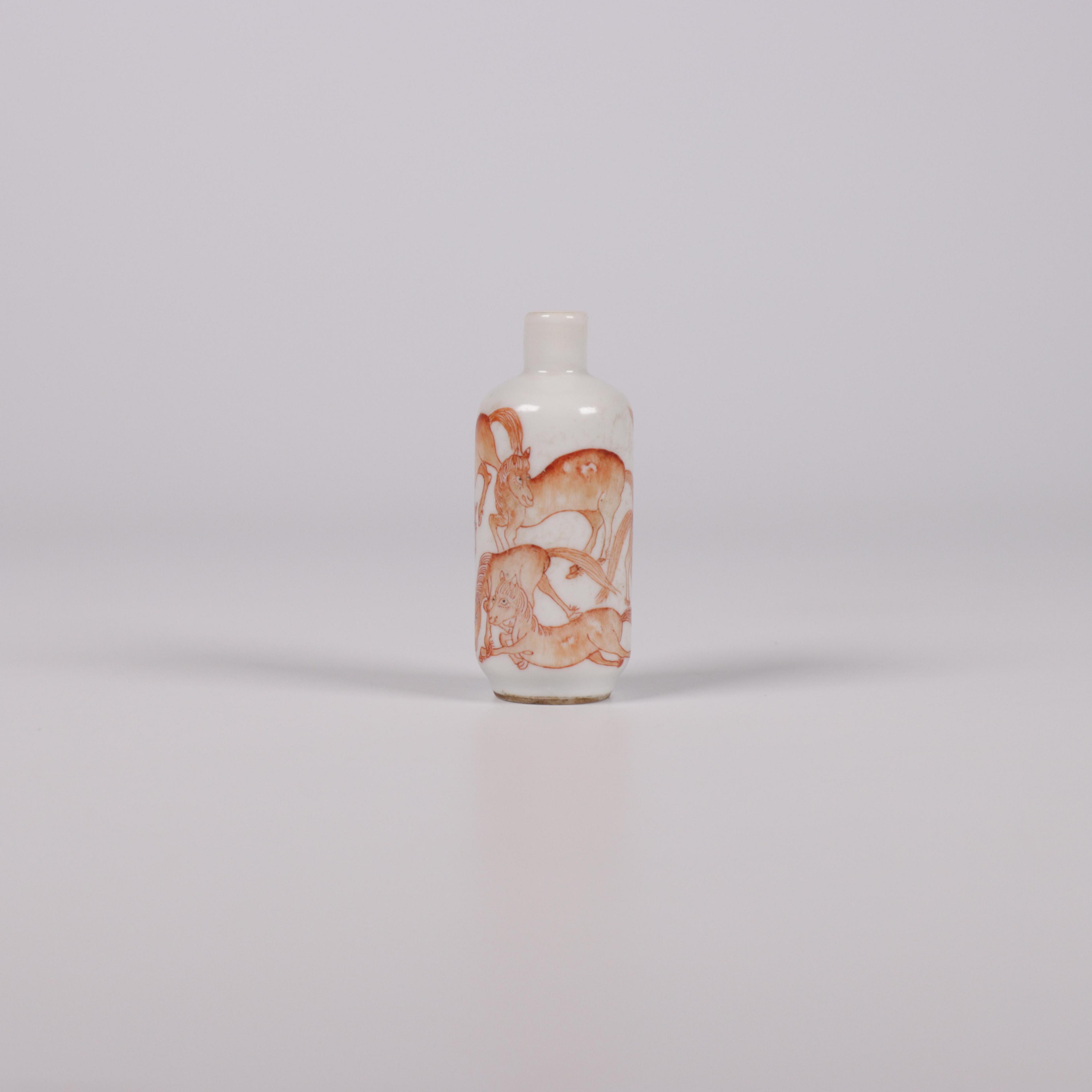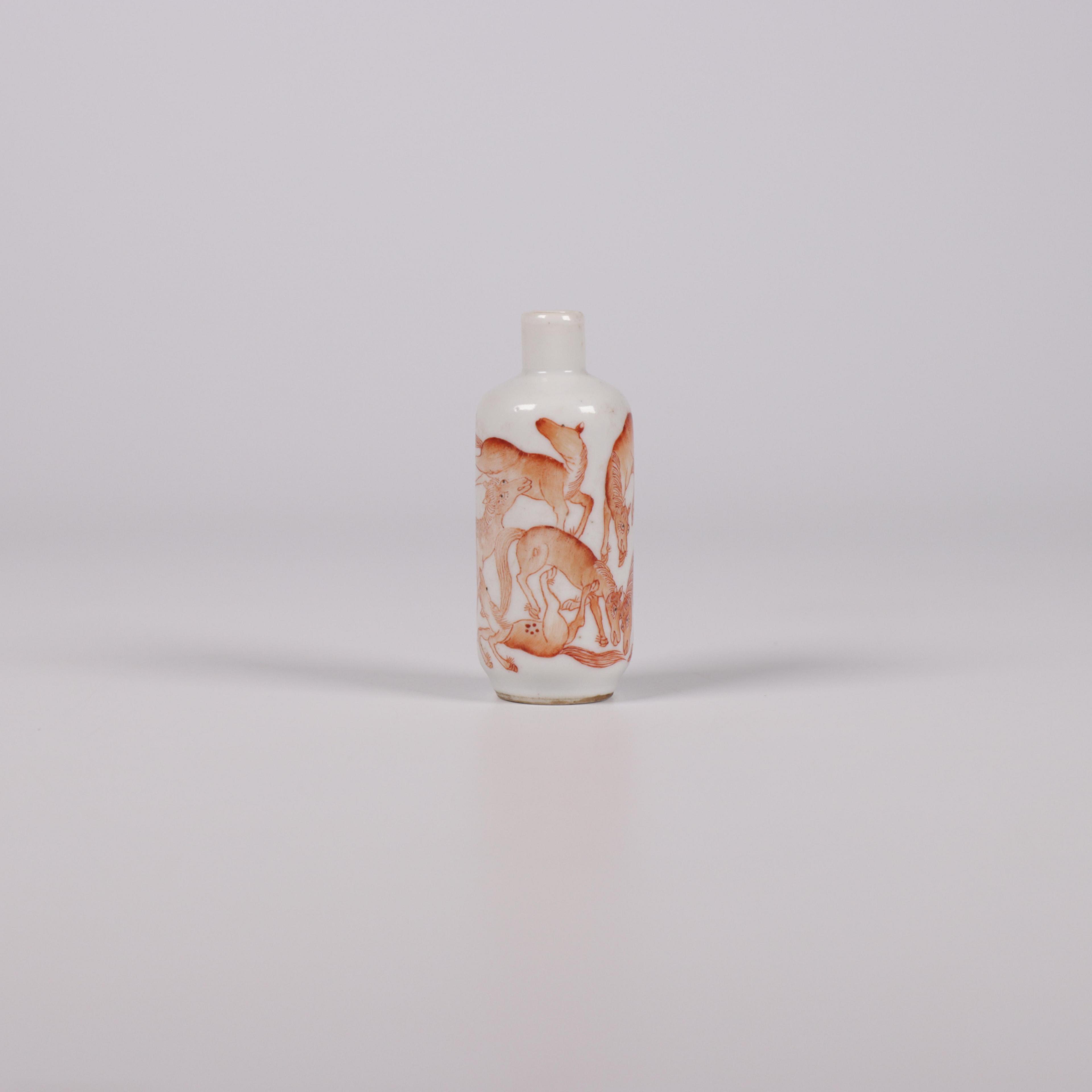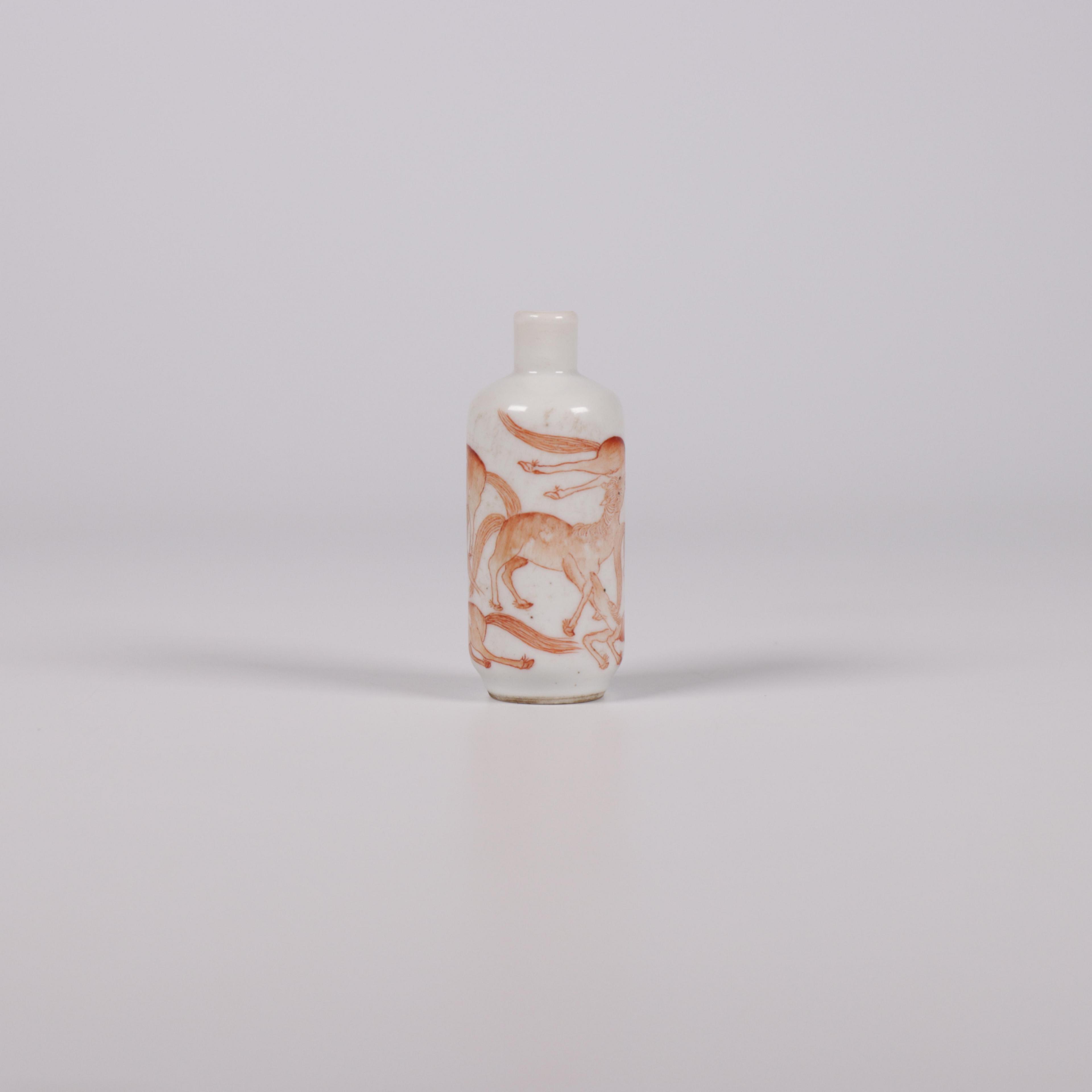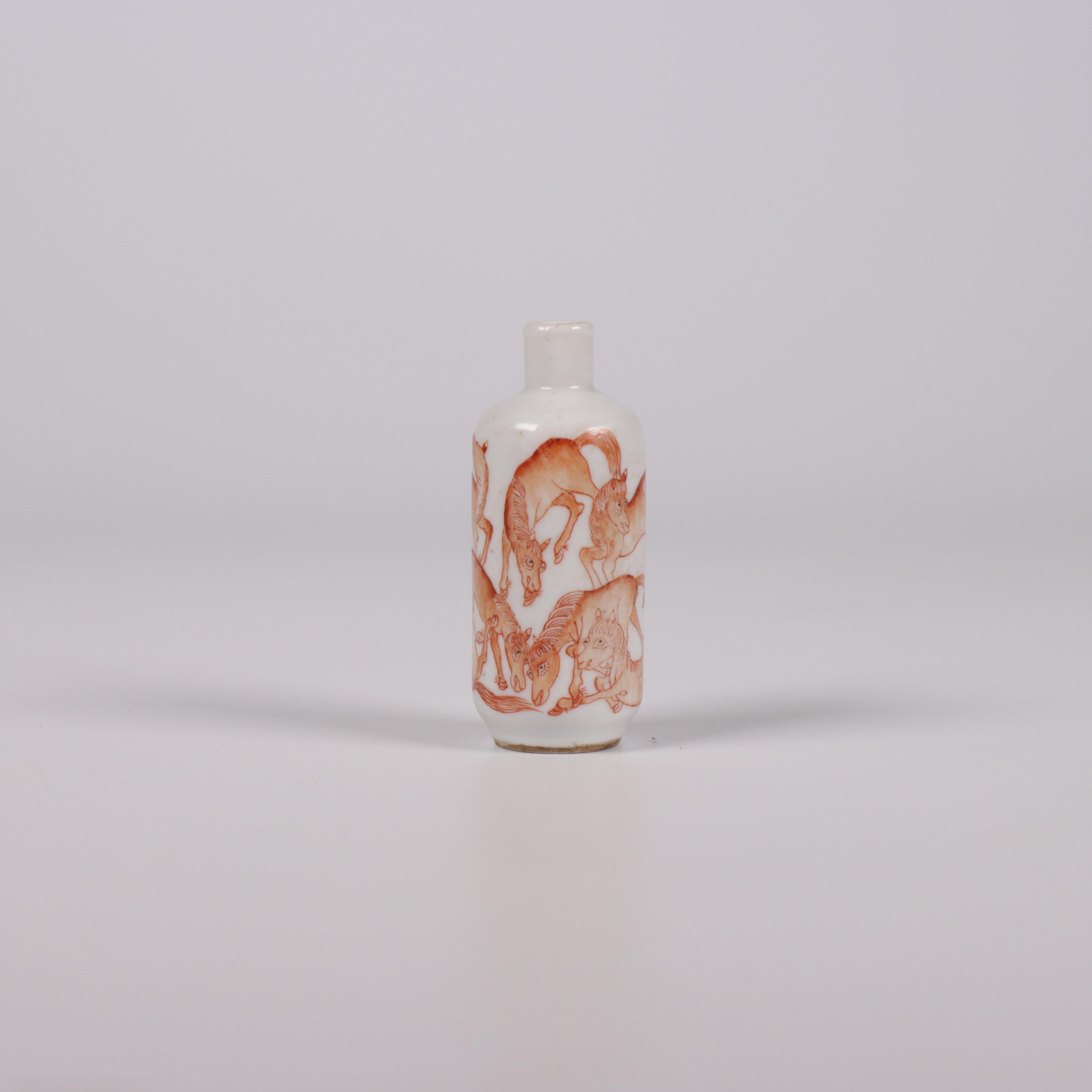 the cylindrical bottle painted with eight frolicking horses, the base with apocryphal four-character Xuande mark