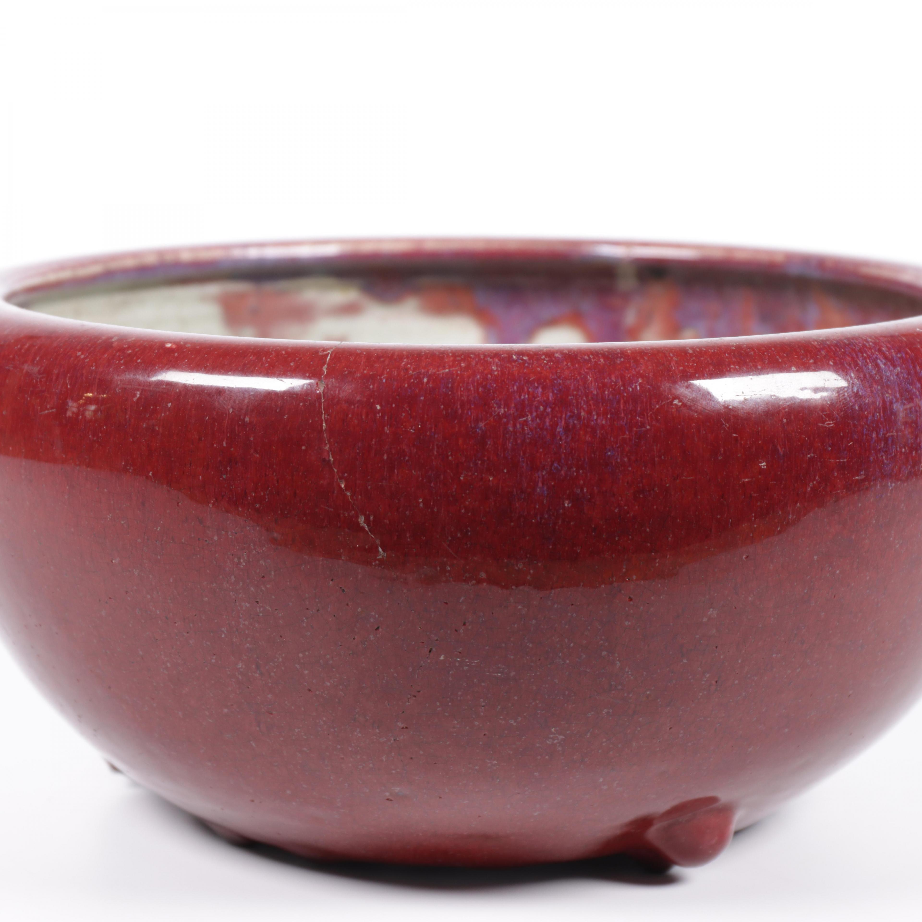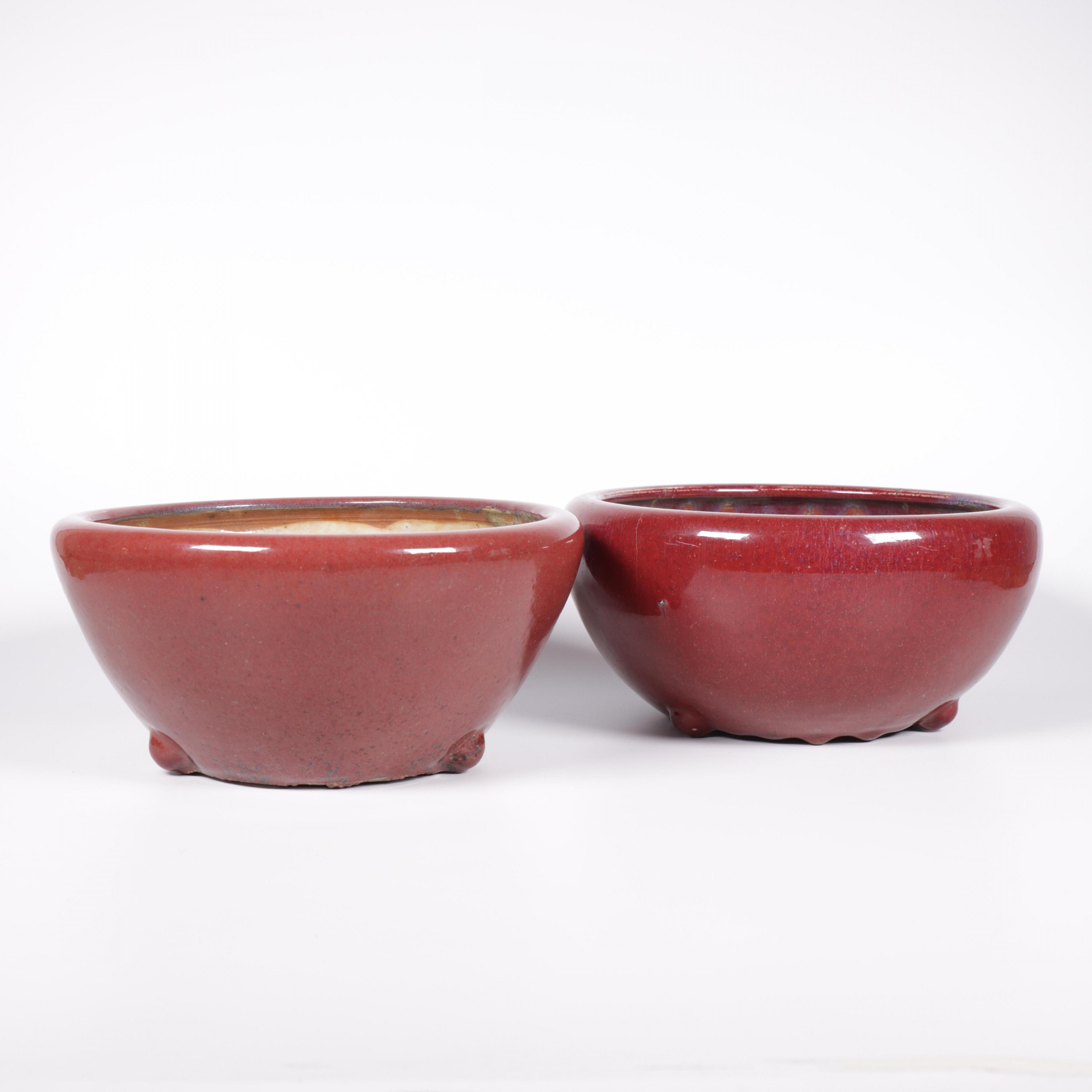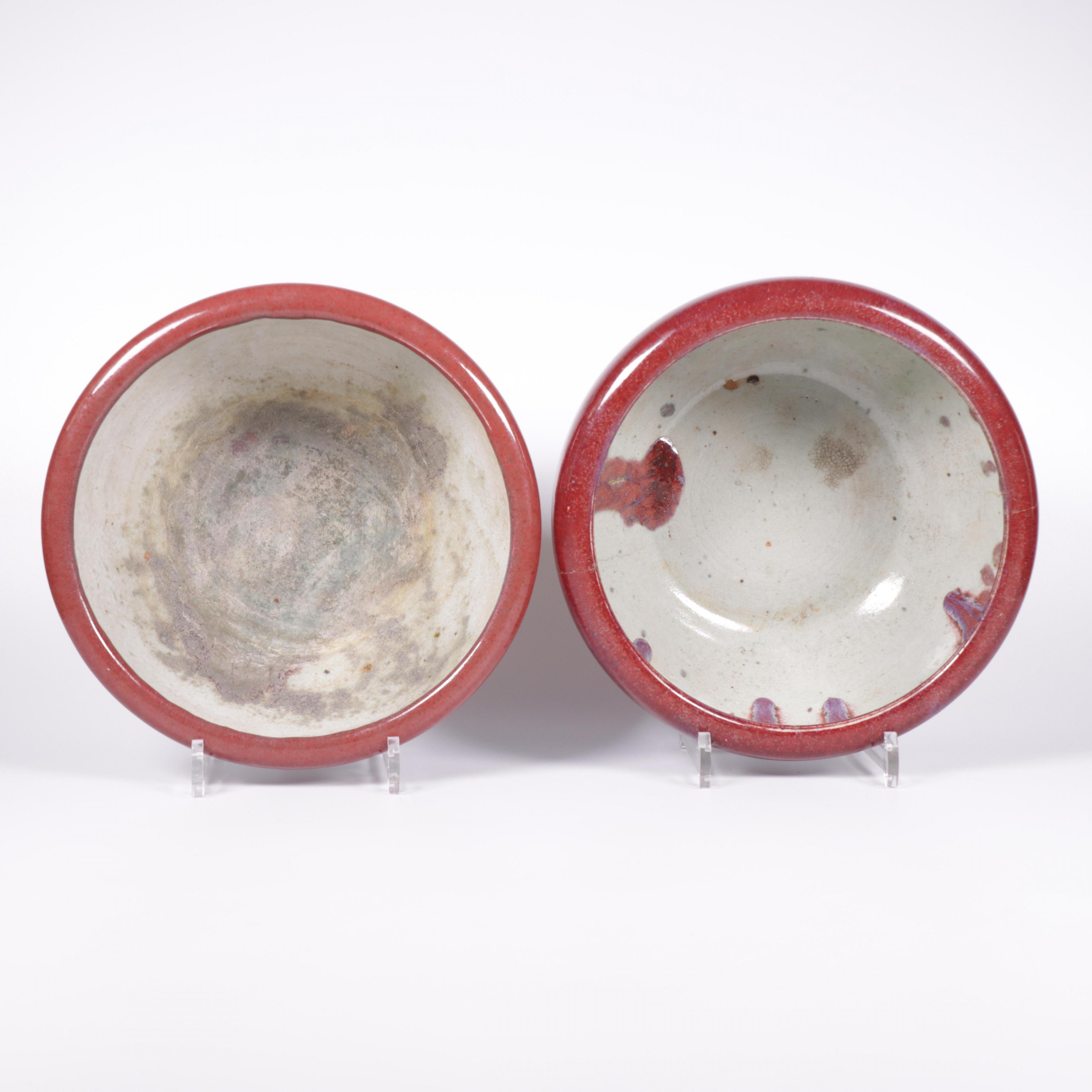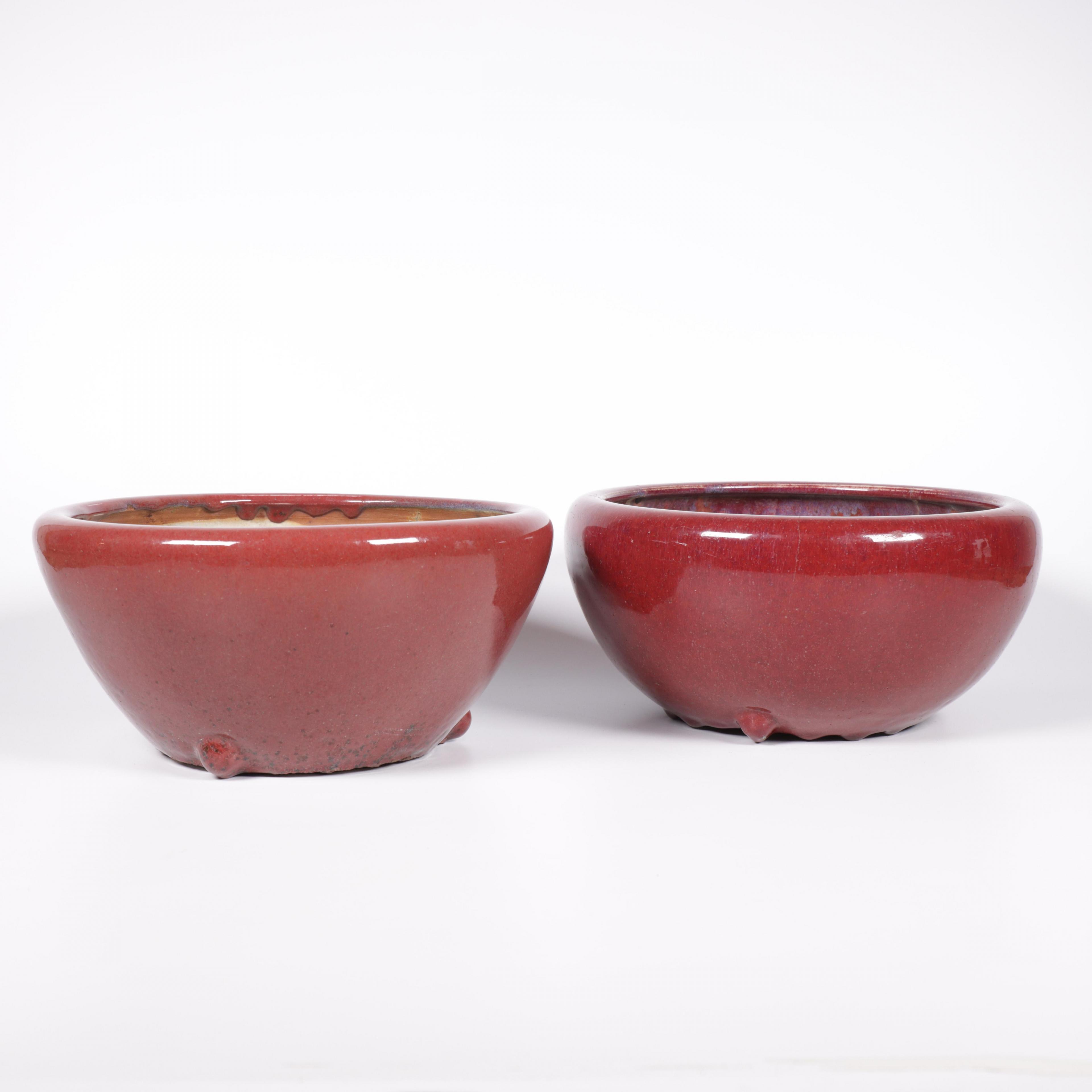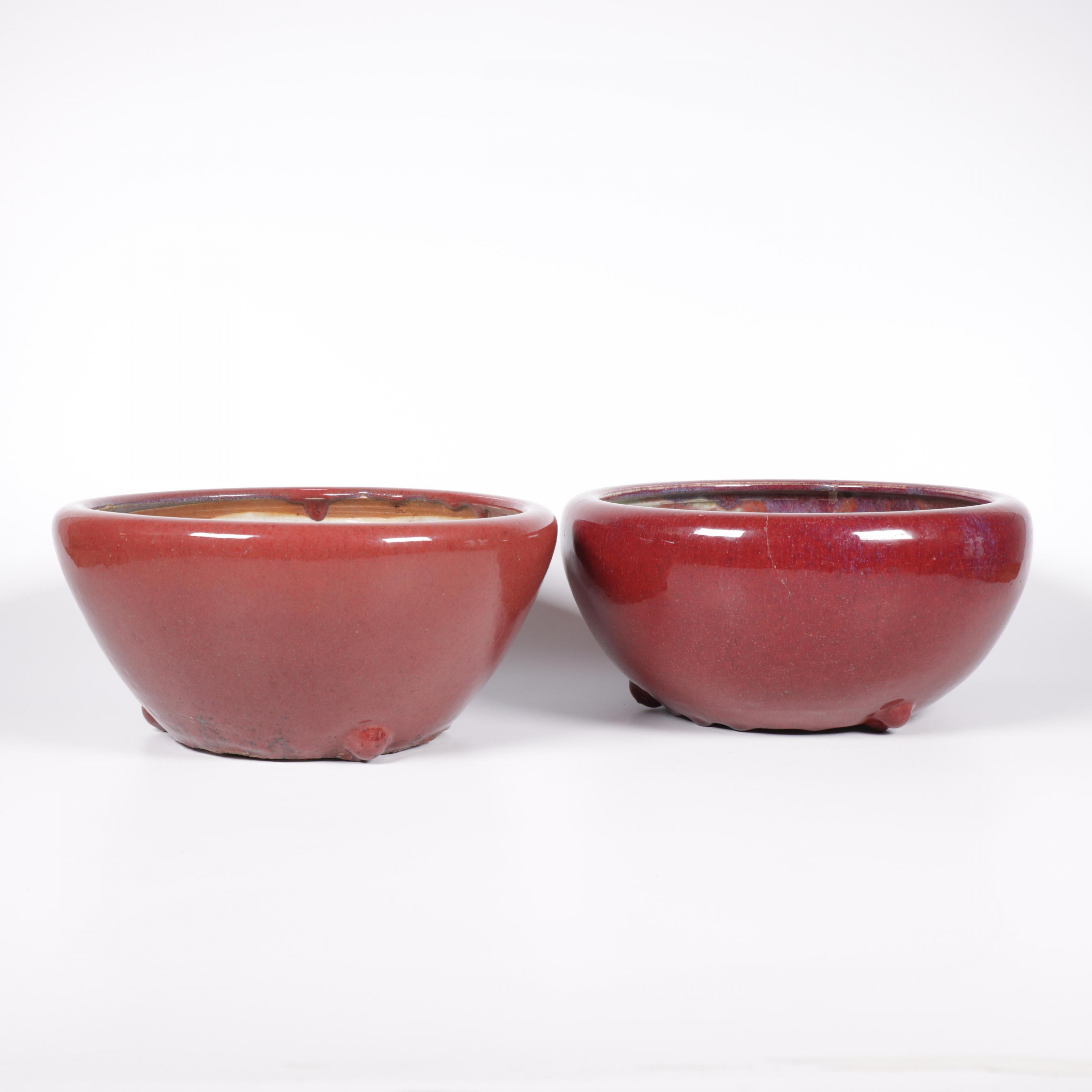 each covered with a strawberry glaze with some splashes of lavender (one with several cracks)