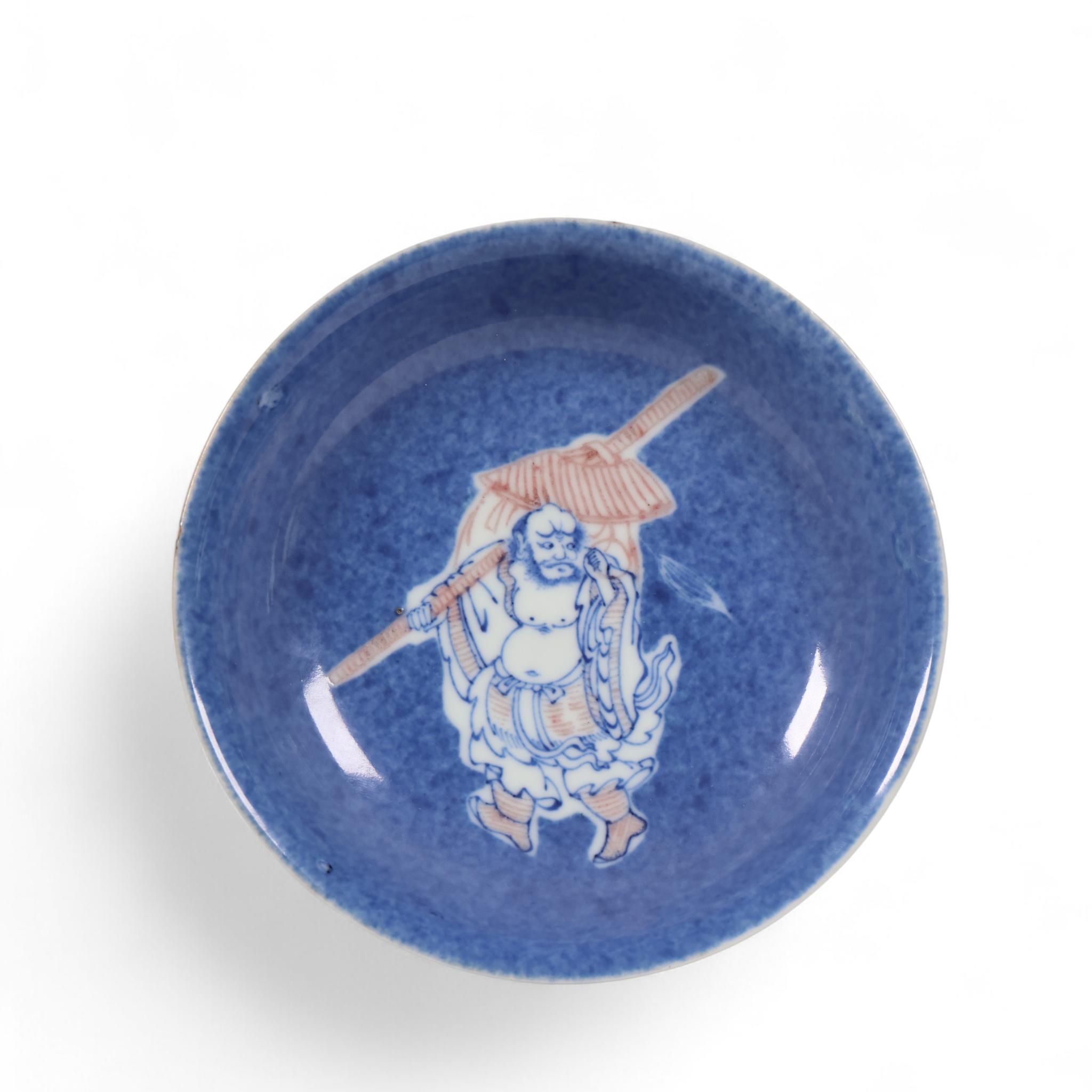 China, a copper-red-decorated powder-blue 'monk' saucer, Qing dynasty (1644-1912),