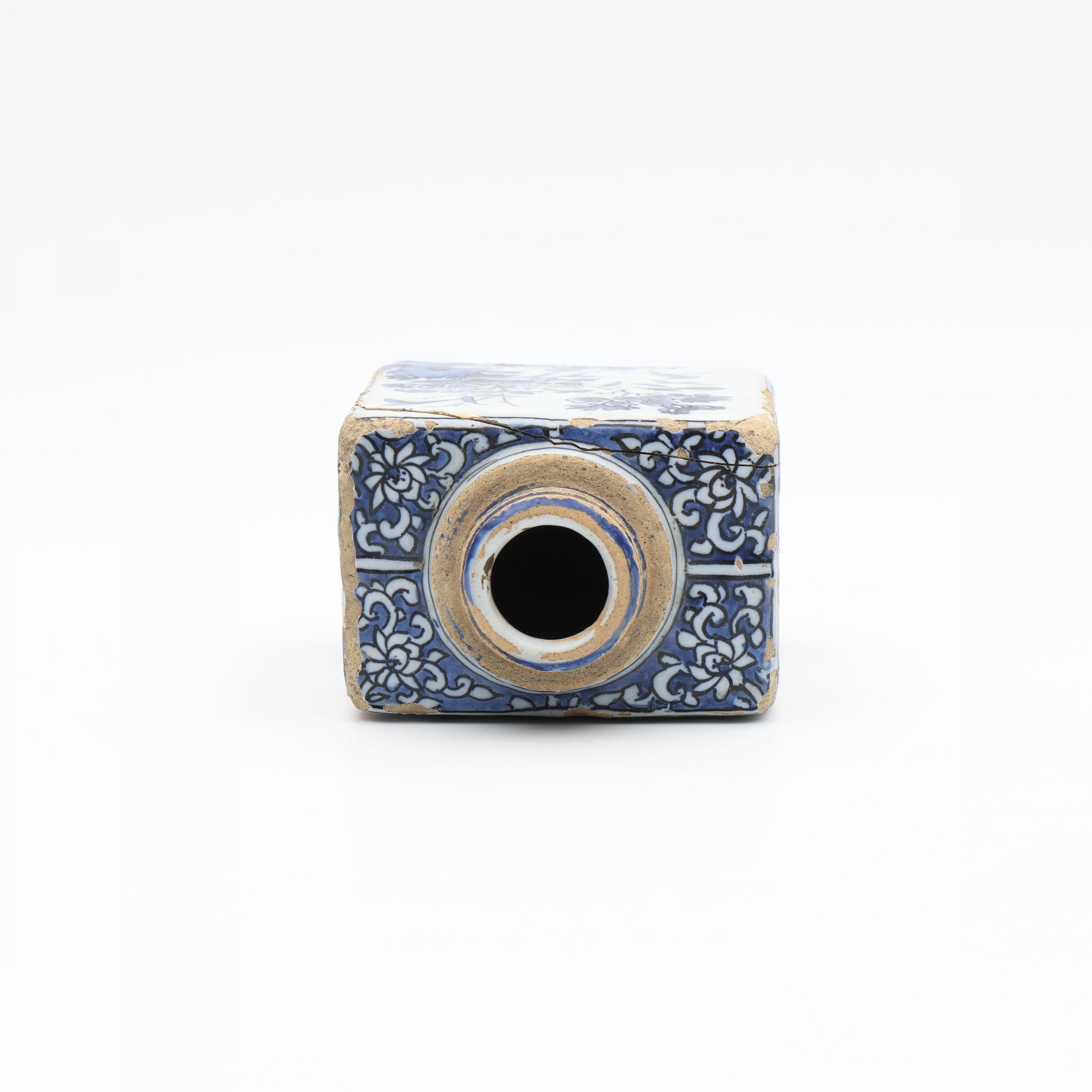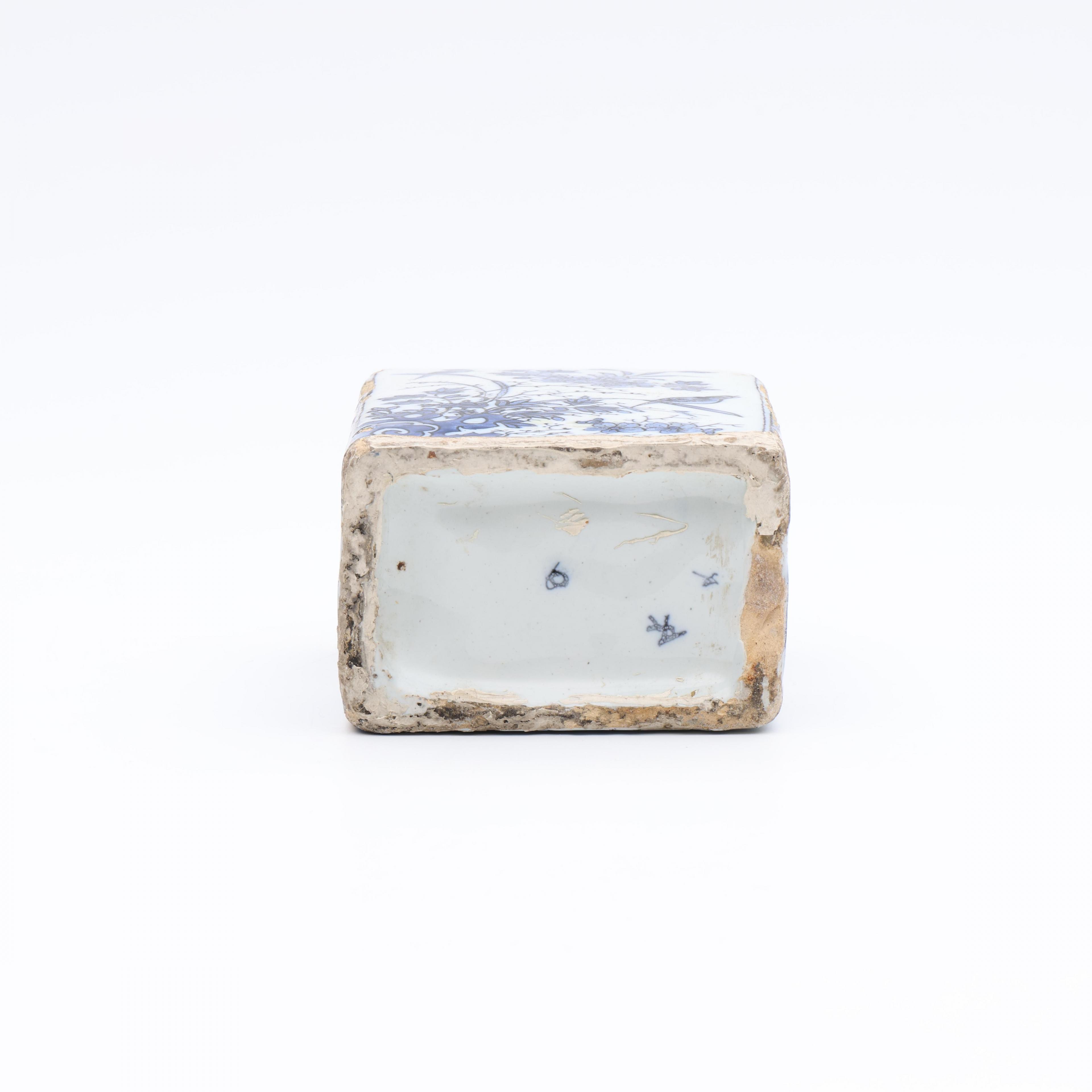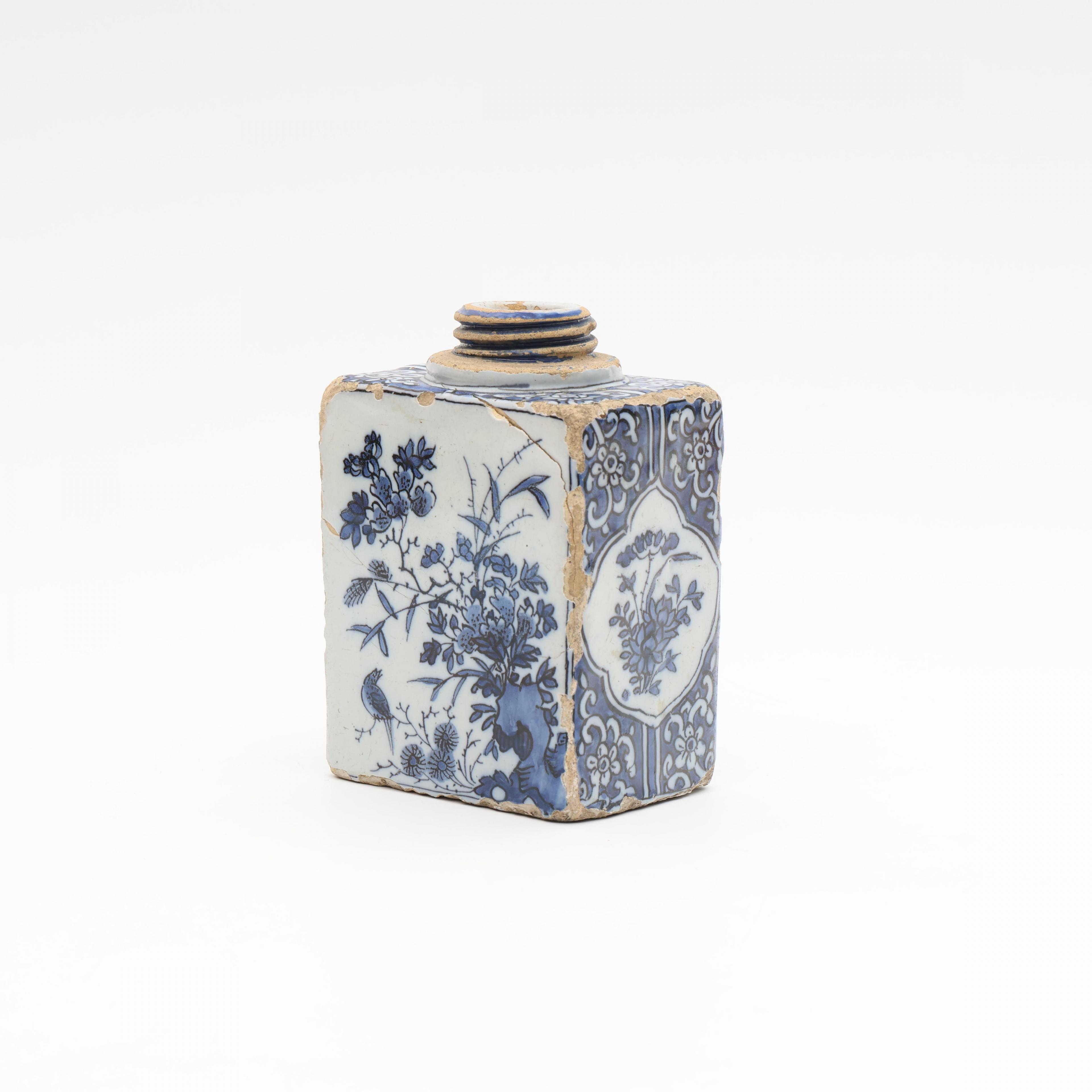 Delft, een blauwwit aardewerken theebus, gemerkt voor Adrianus Kocx voor de Grieksche A, 1687-1701,