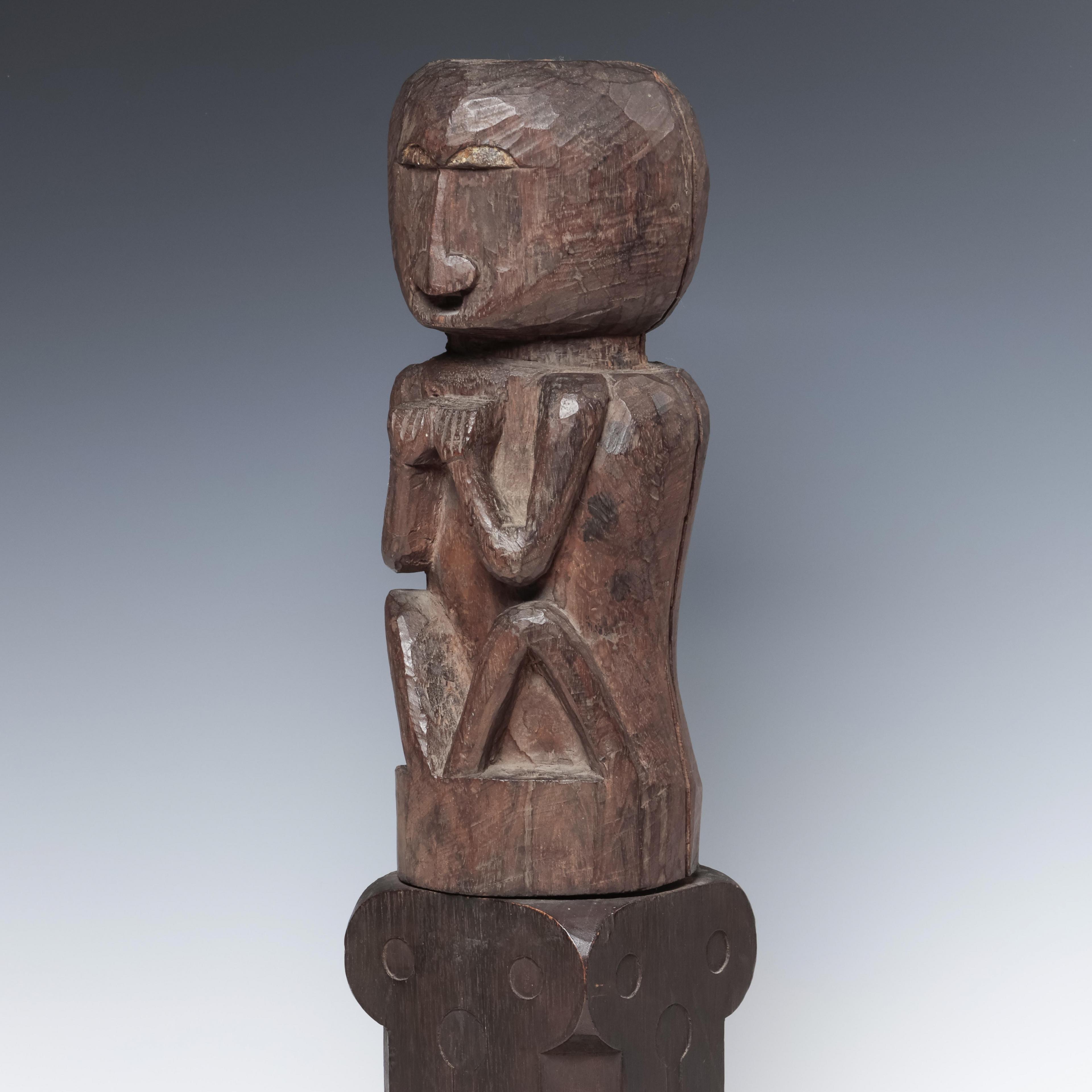 Provenance: C. T. Bertling (1891-1970), Bloemendaal, acquired in the late 1920s in the Moluccas. The figure can be seen standing on the table in this picture where C.T. Bertling is seated in his home in Menado, Sulawesi, holding the one of the two Lake Sentani staffs, lot number 5638, in his hand, ca. 1927.