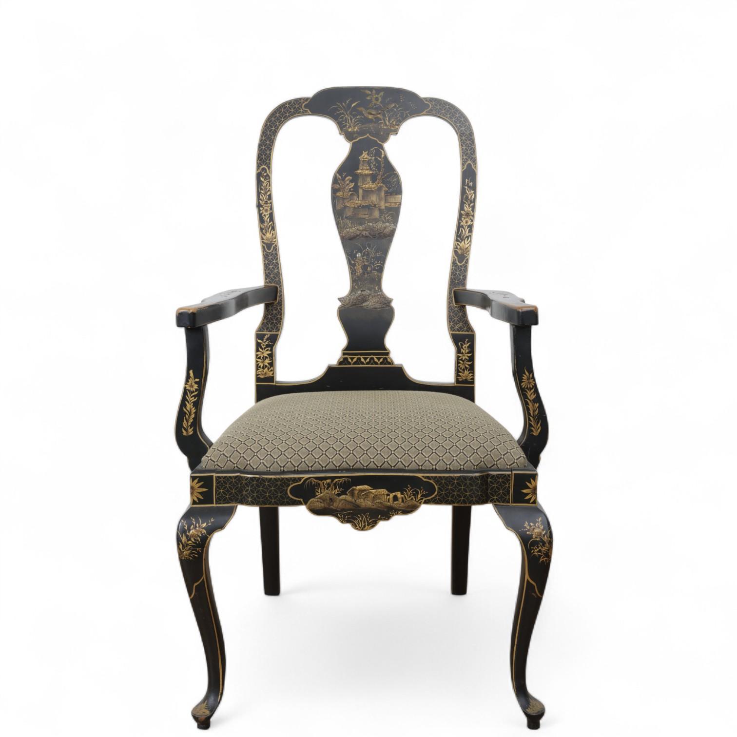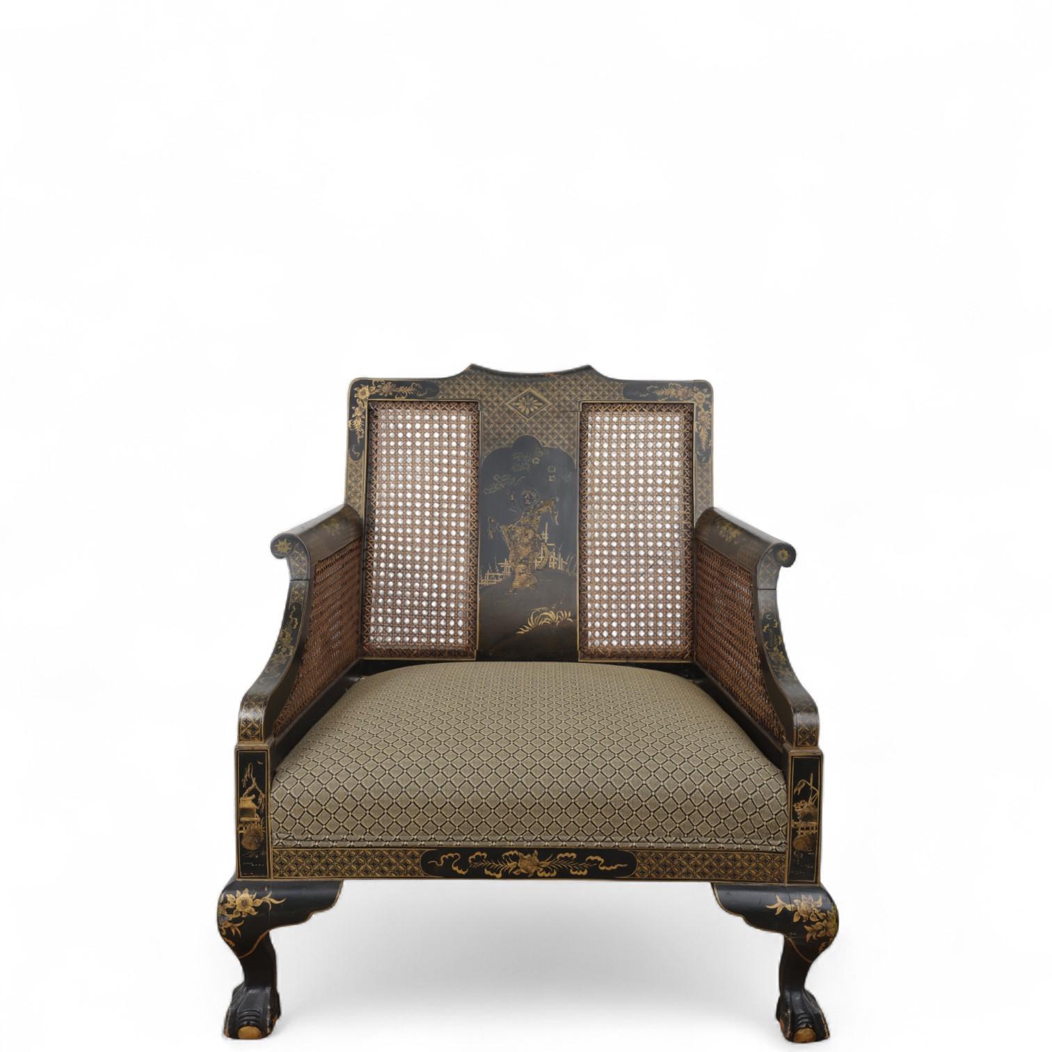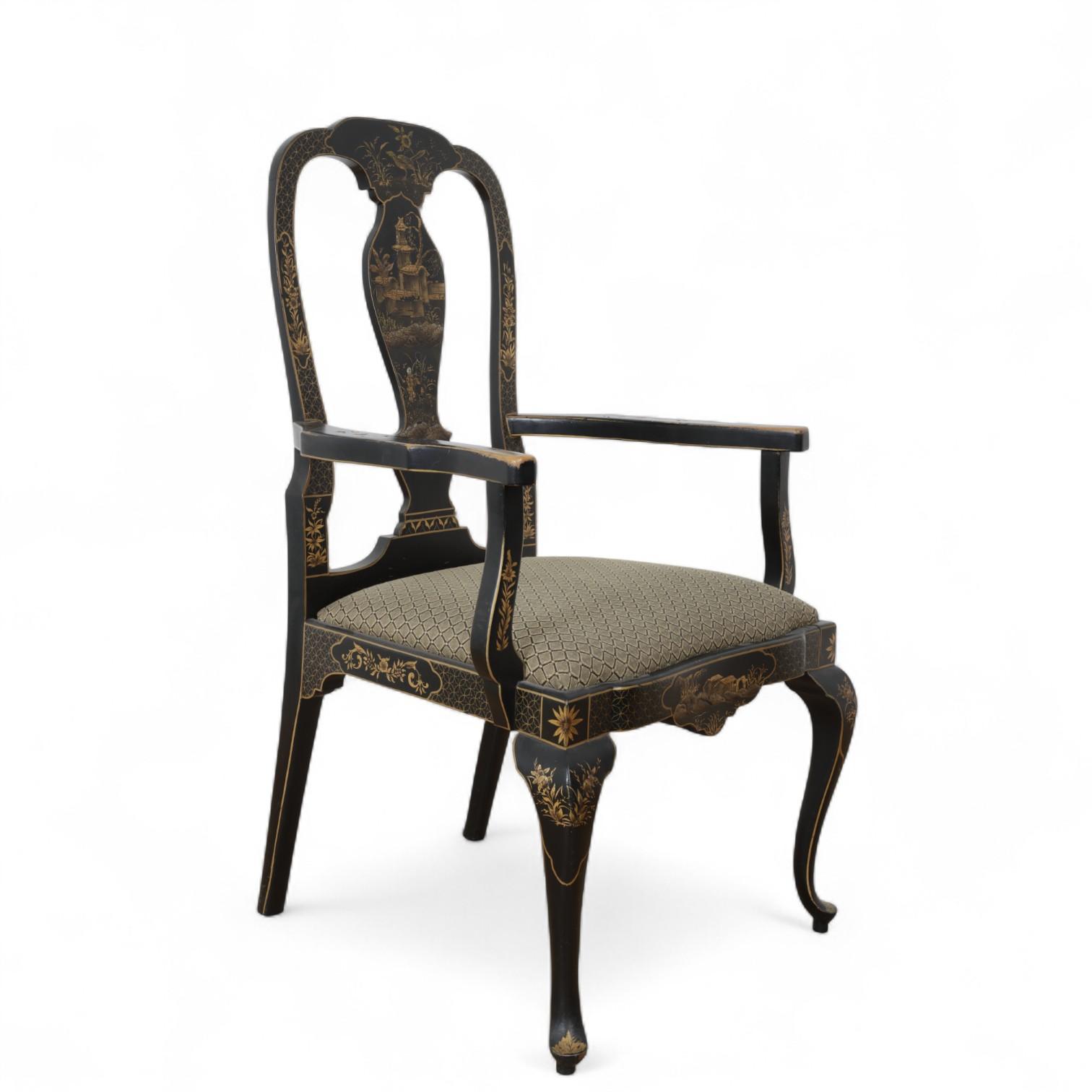 China, a lacquered and gilded chair and an armchair, ca. 1900