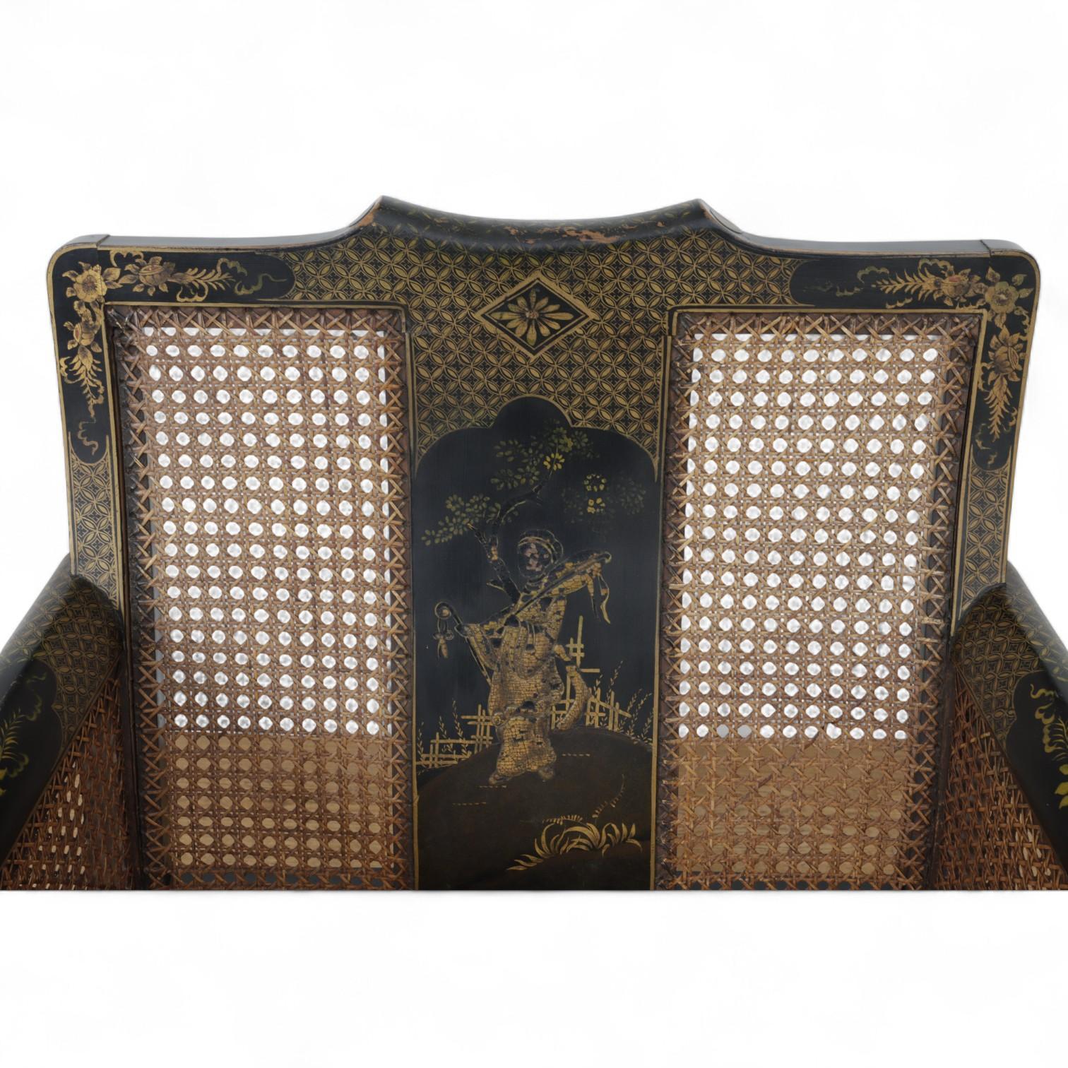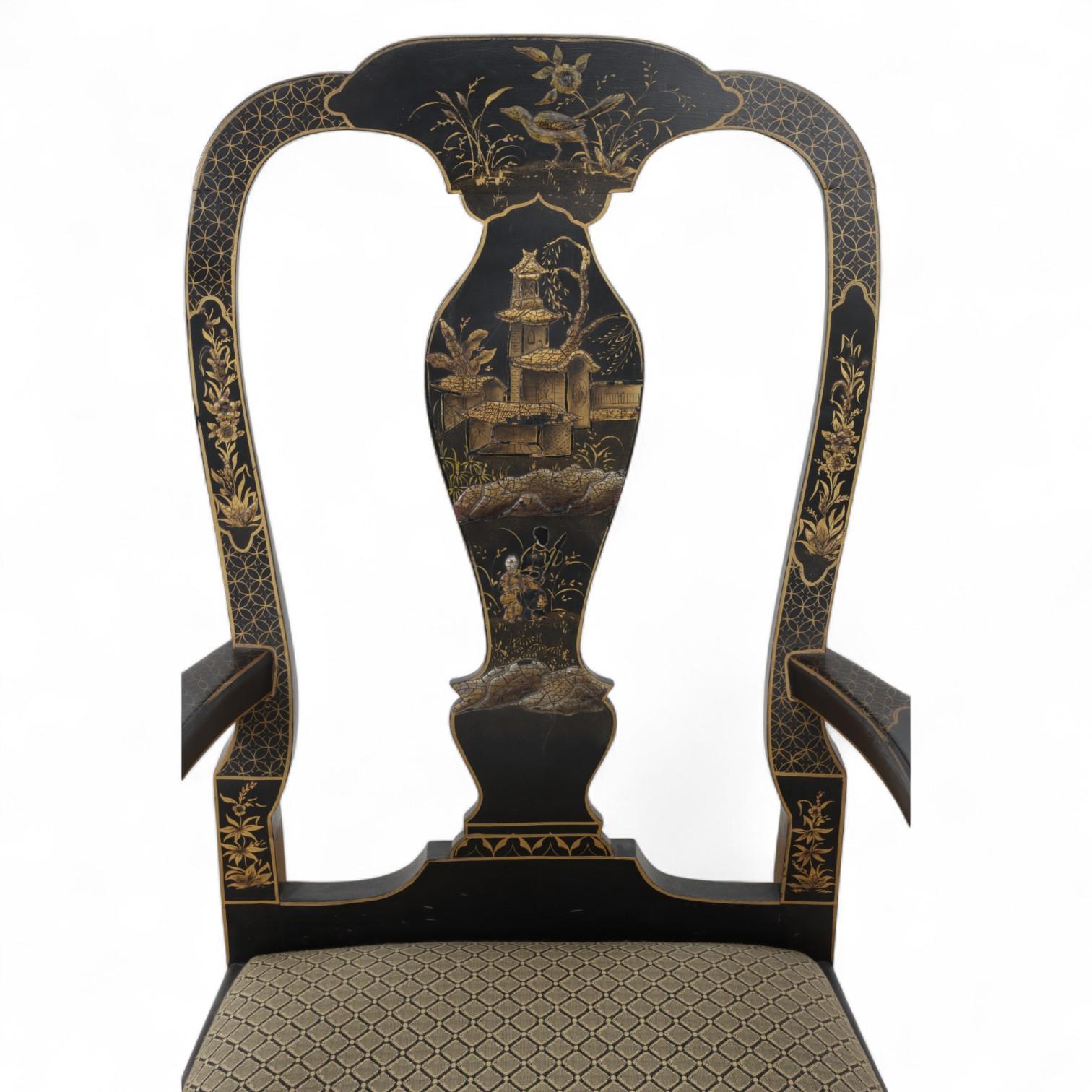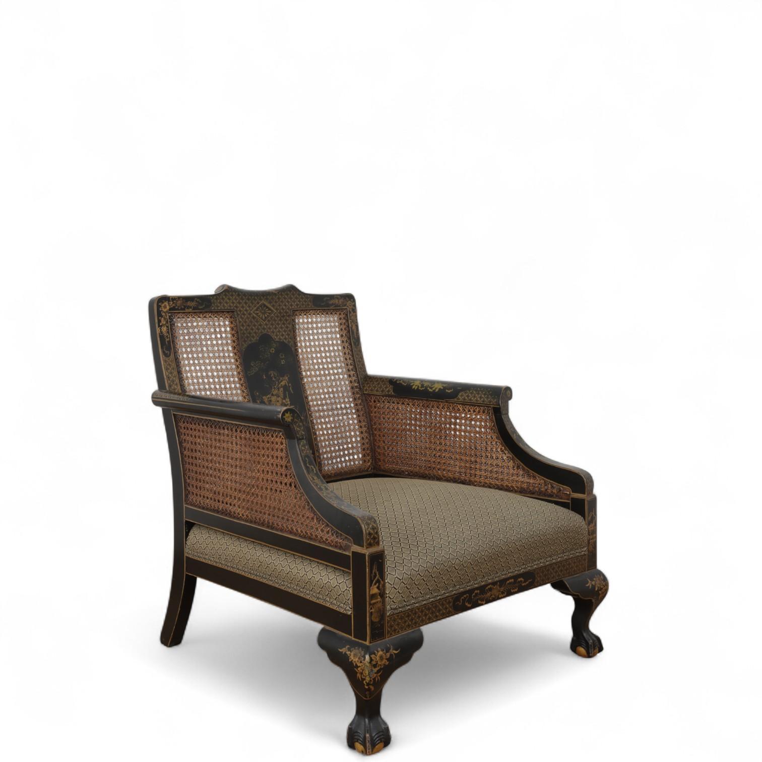 China, a lacquered and gilded chair and an armchair, ca. 1900