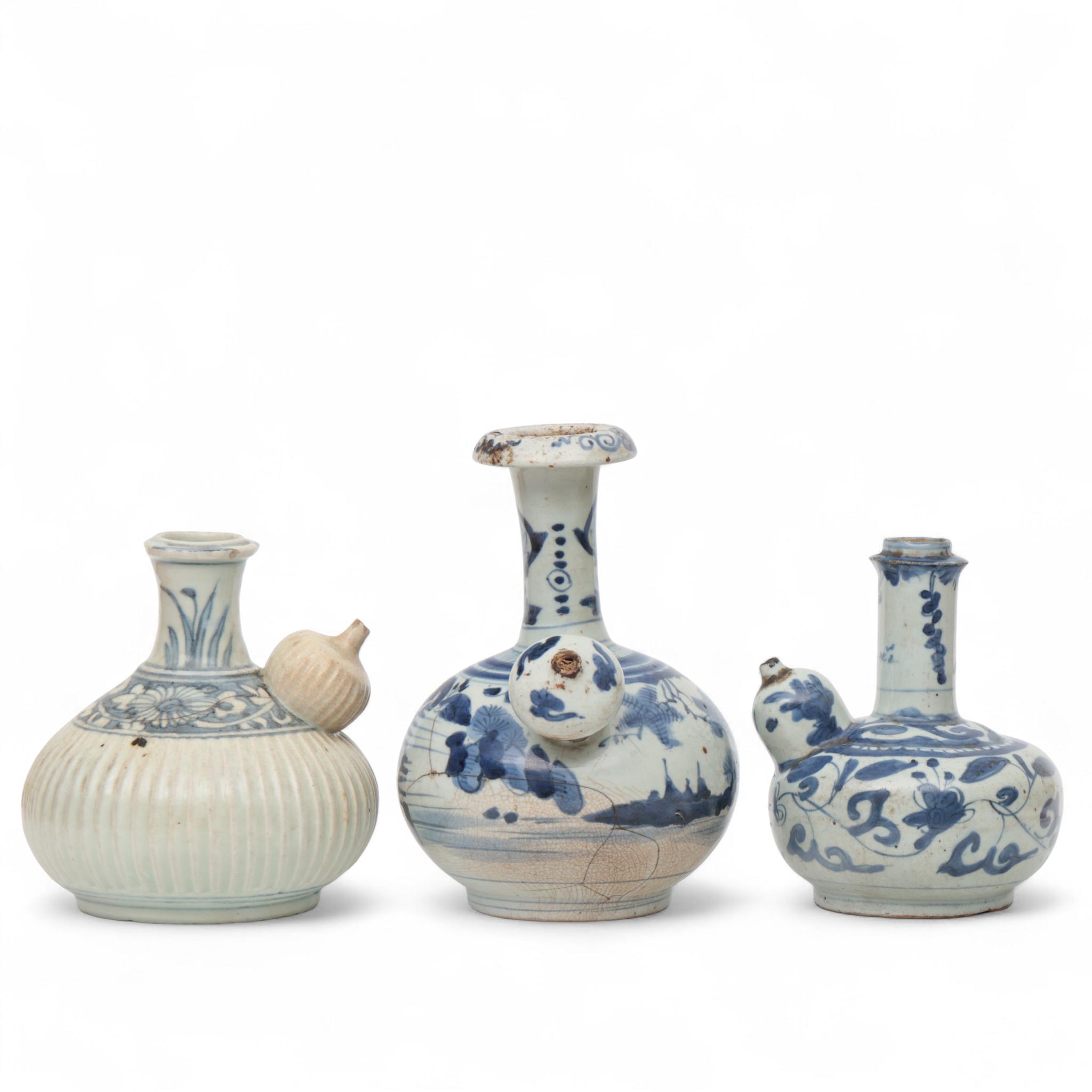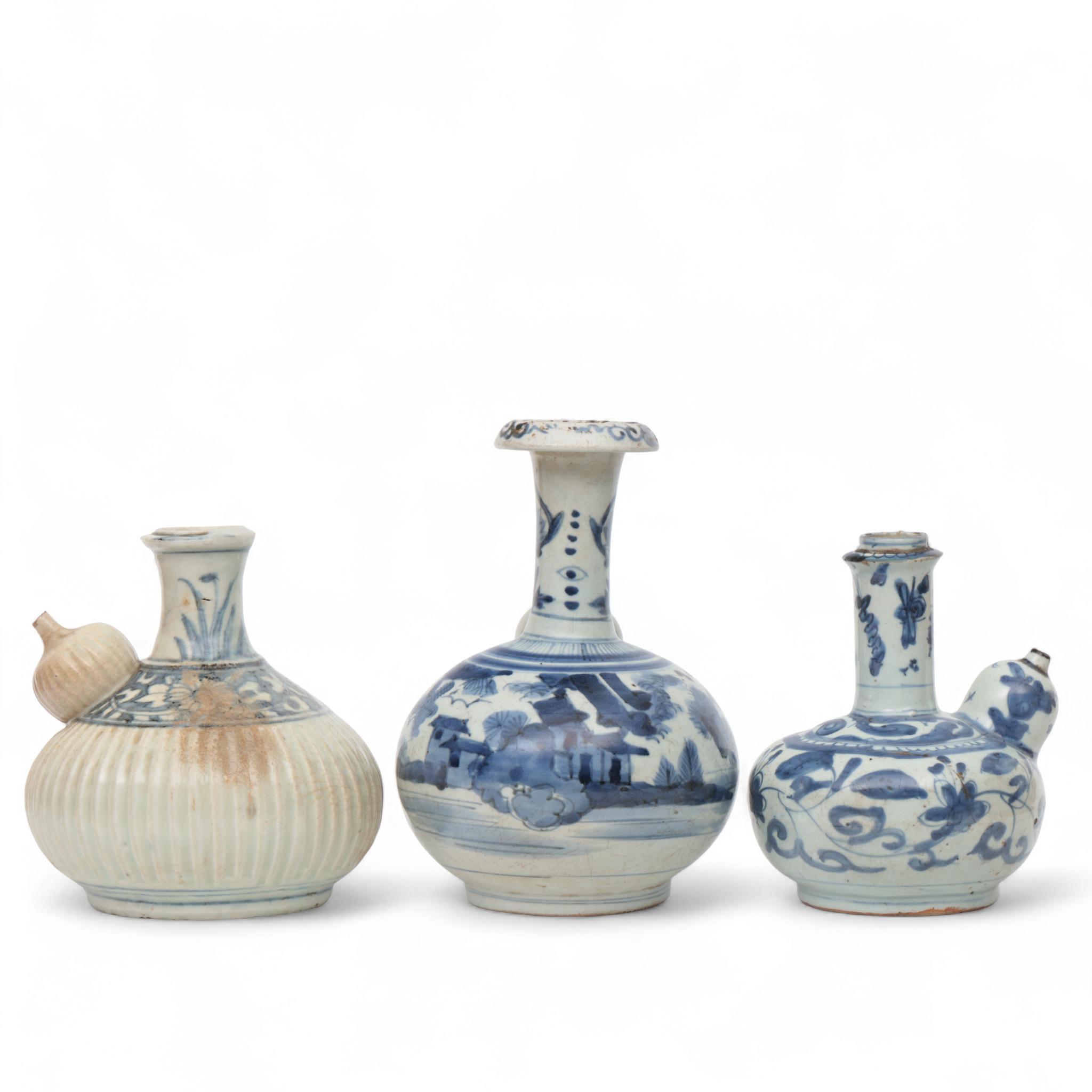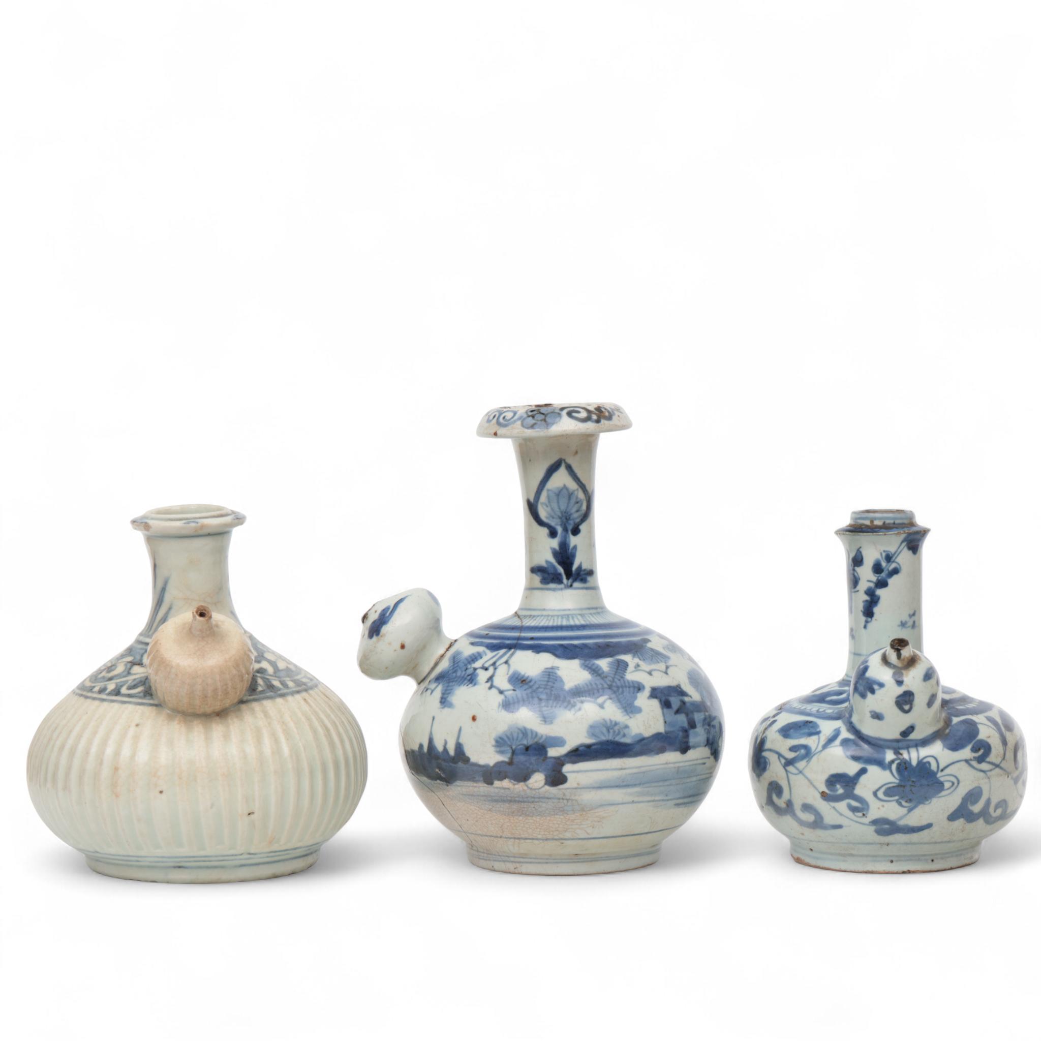 China, three various blue and white porcelain kendi's, 18th-19th century,