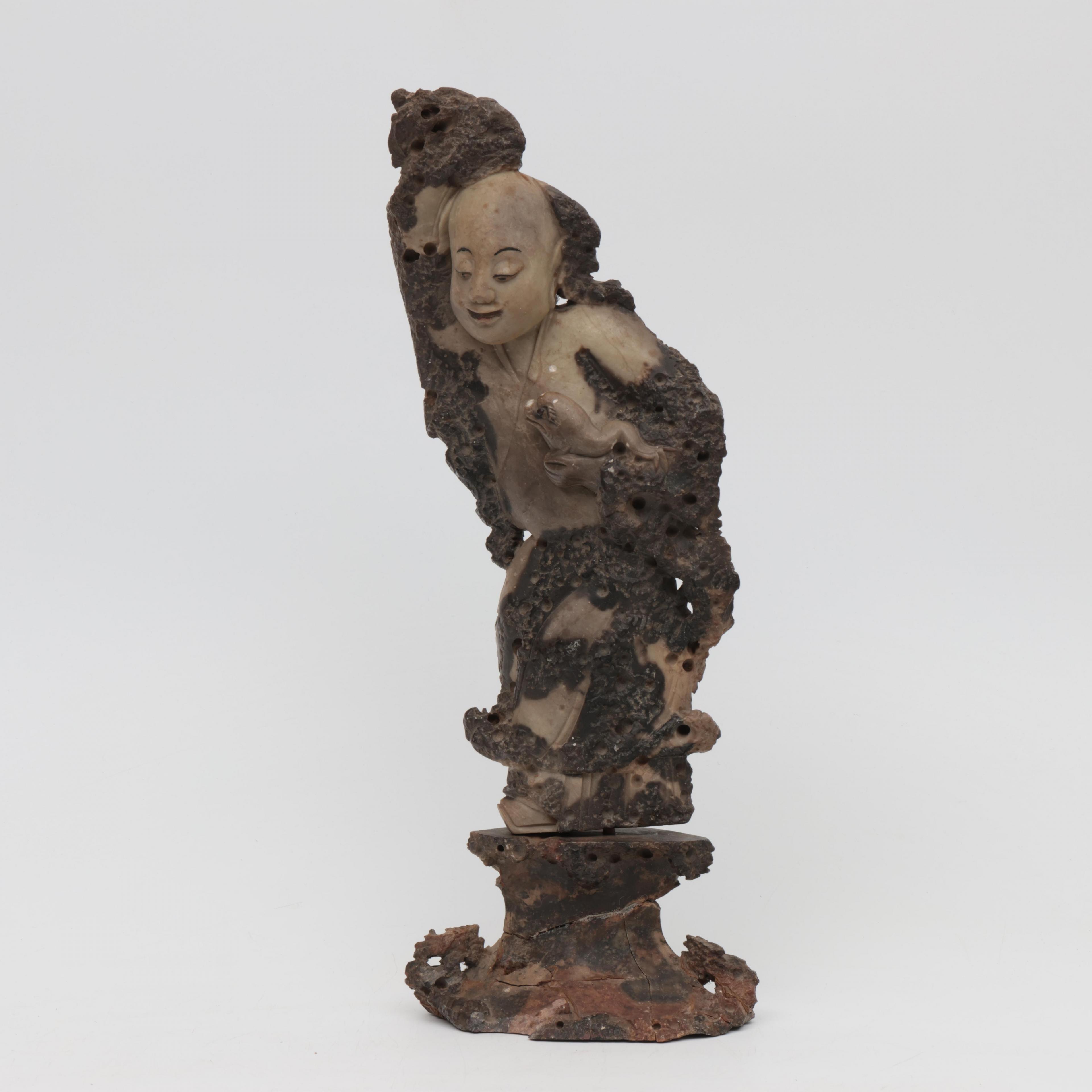China, a soapstone figure of Liu Hai and his three-legged toad, late 19th century,
