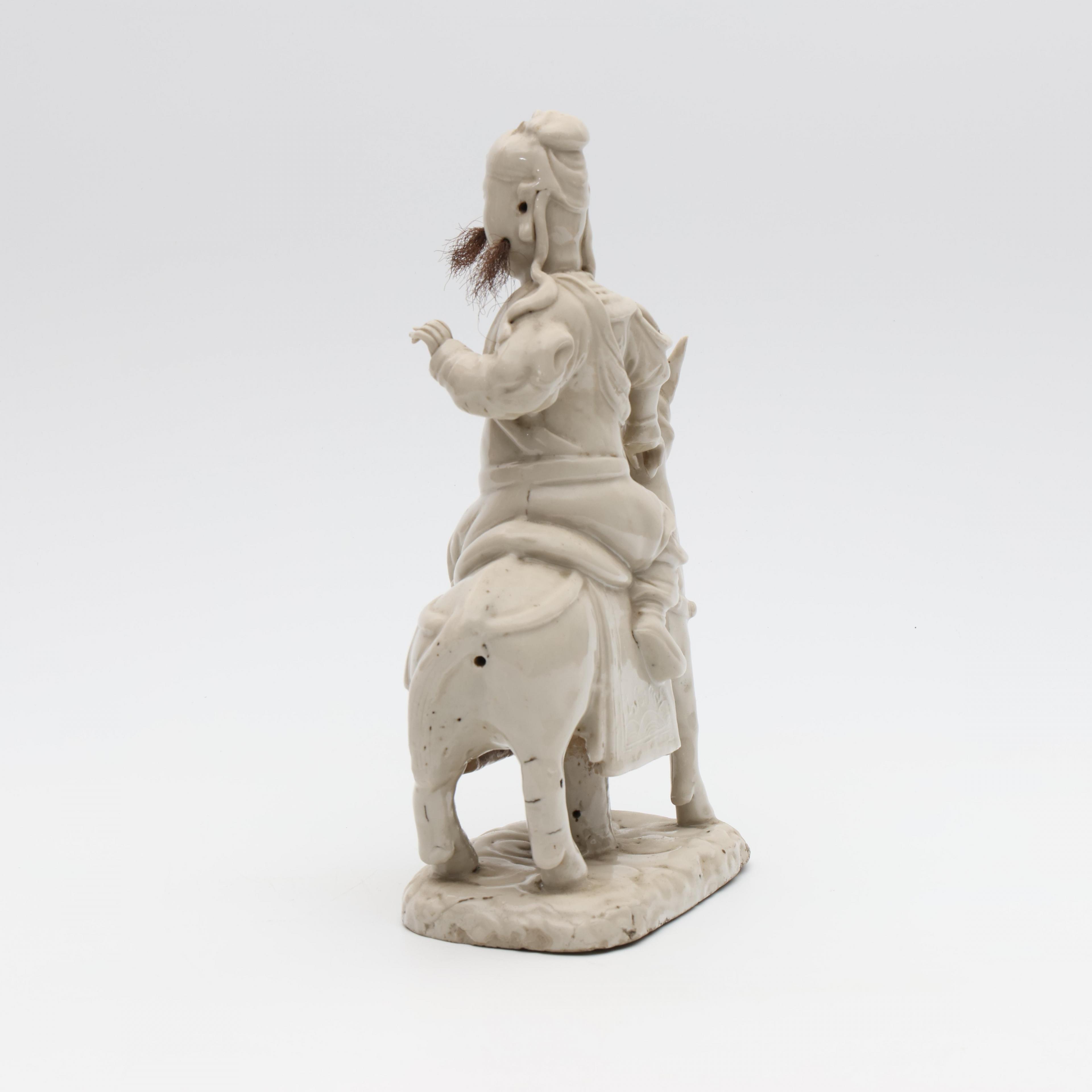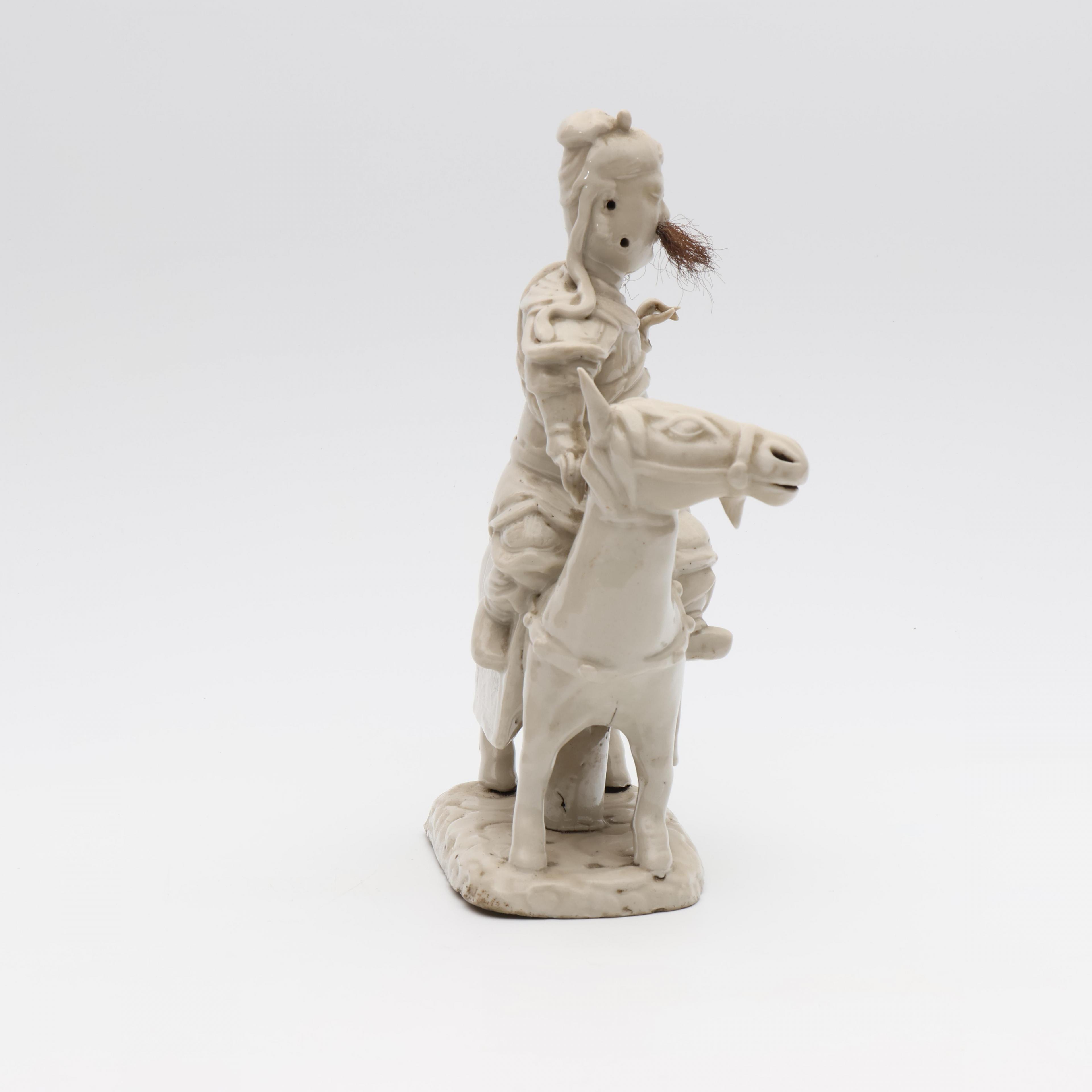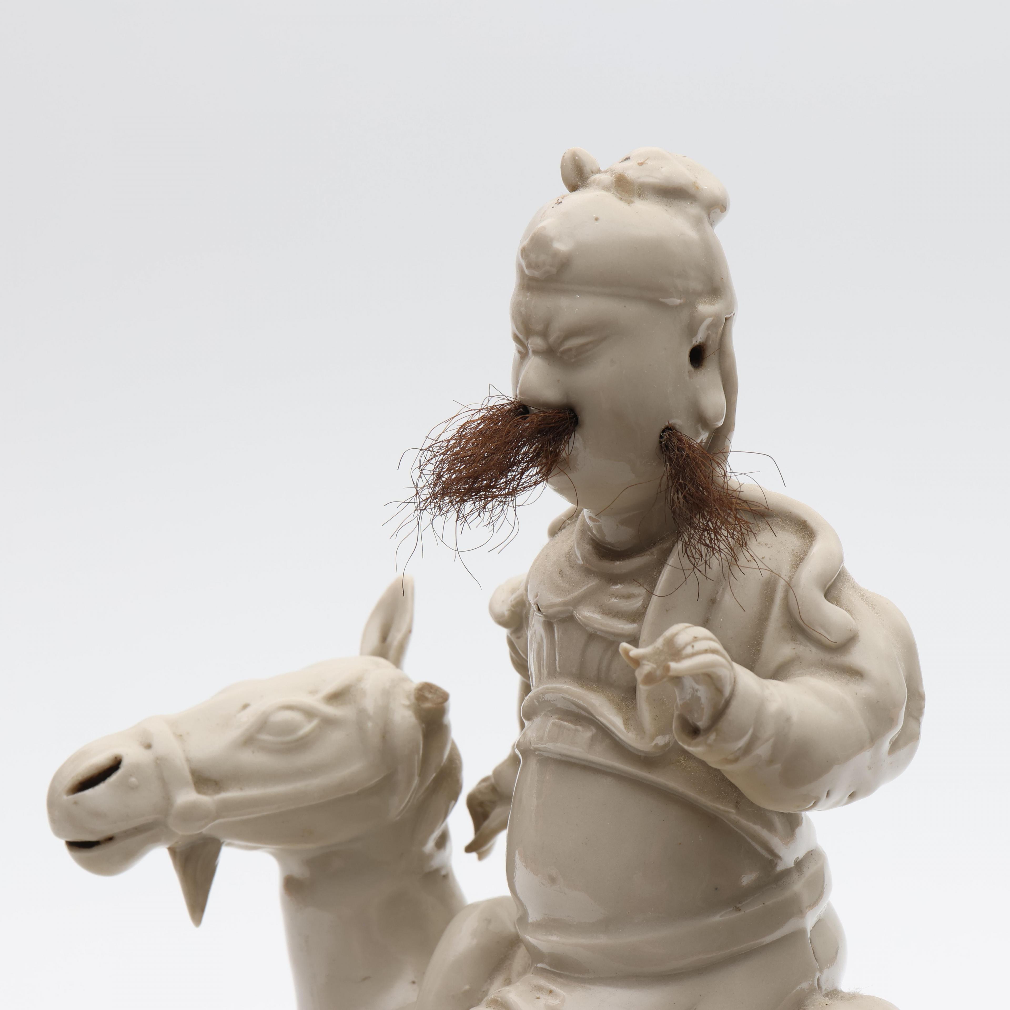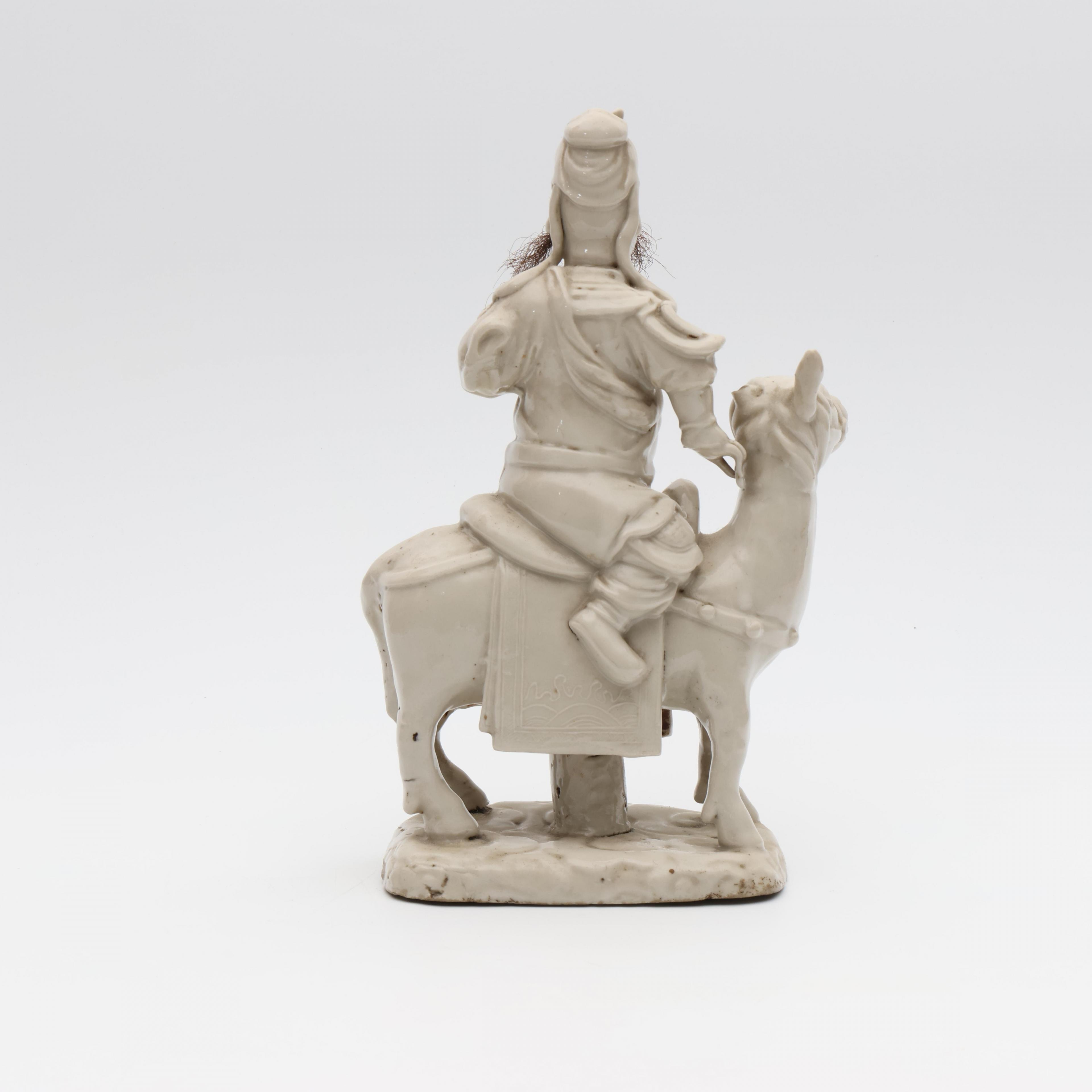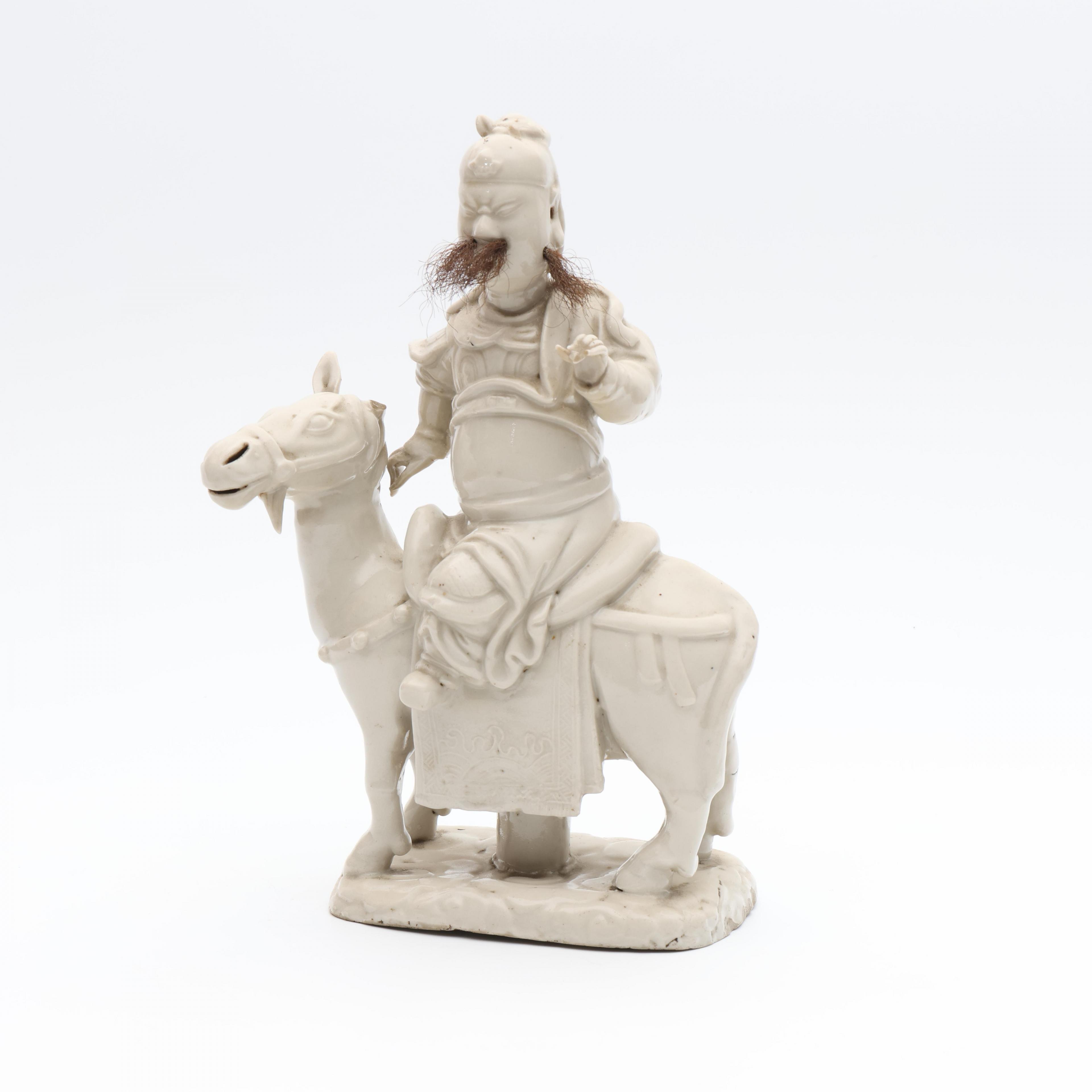 China, a Dehua porcelain figure of Guandi on horseback, late 19th/ early 20th century,