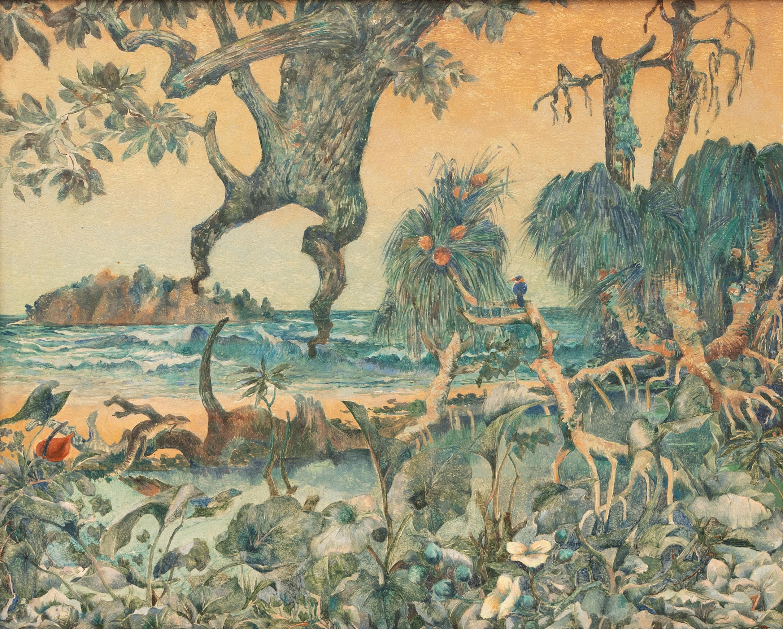 paneel, gesign. op achterzijde lijst, 36 x 44,5 cm.