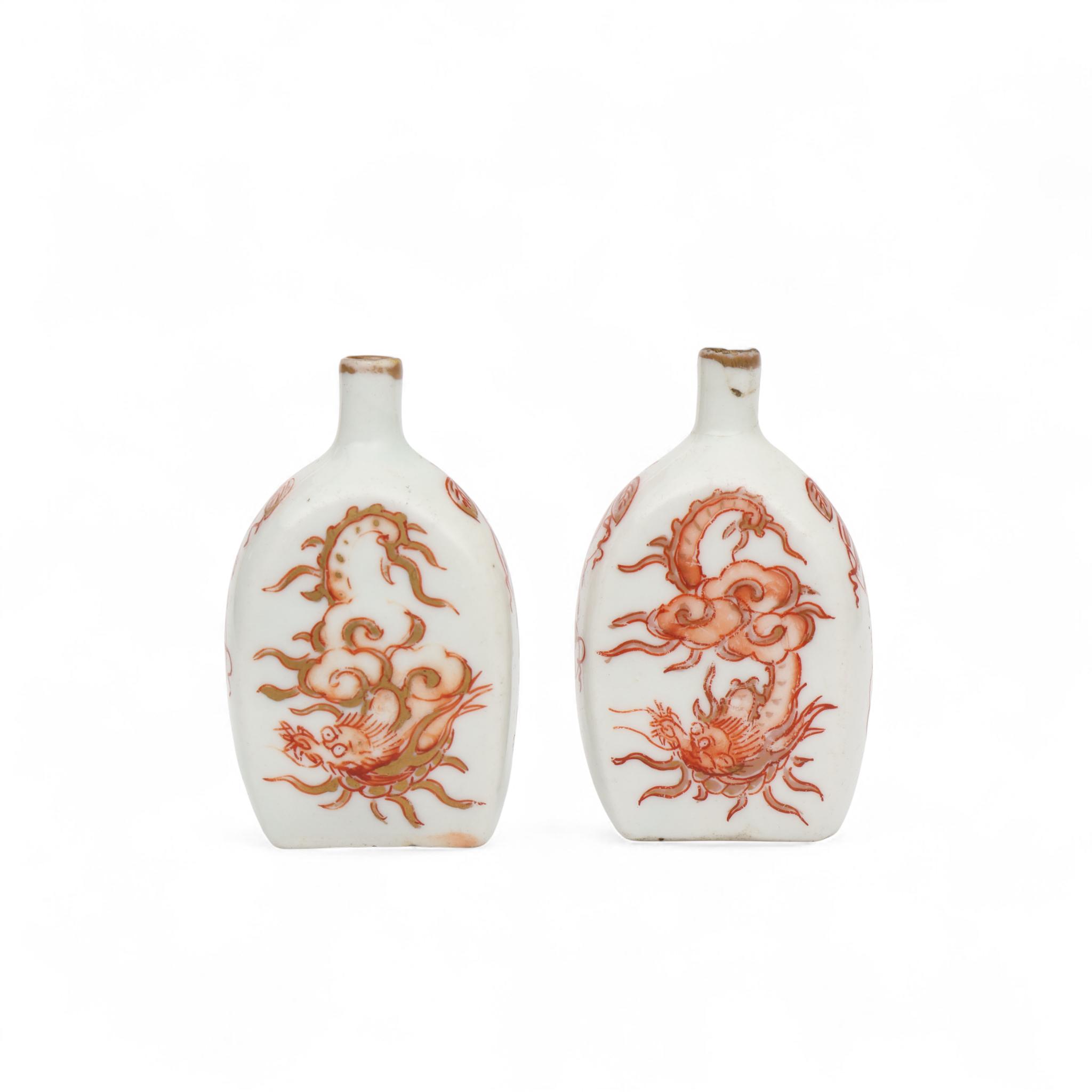 China, a pair of iron-red and gilt porcelain snuff bottles, 19th century,