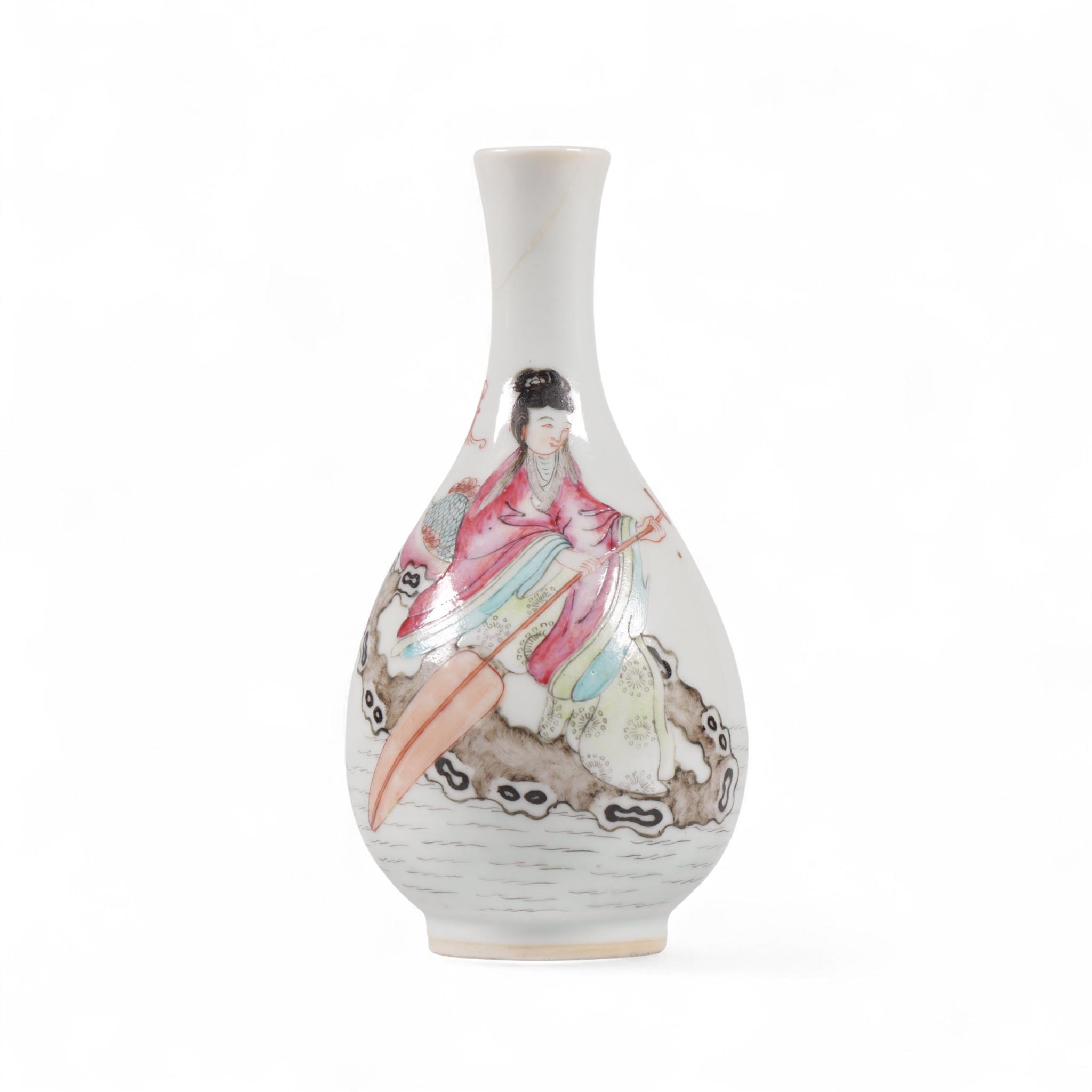 China, a small famille rose porcelain 'female Immortal' vase, late Qing dynasty (1644-1912),