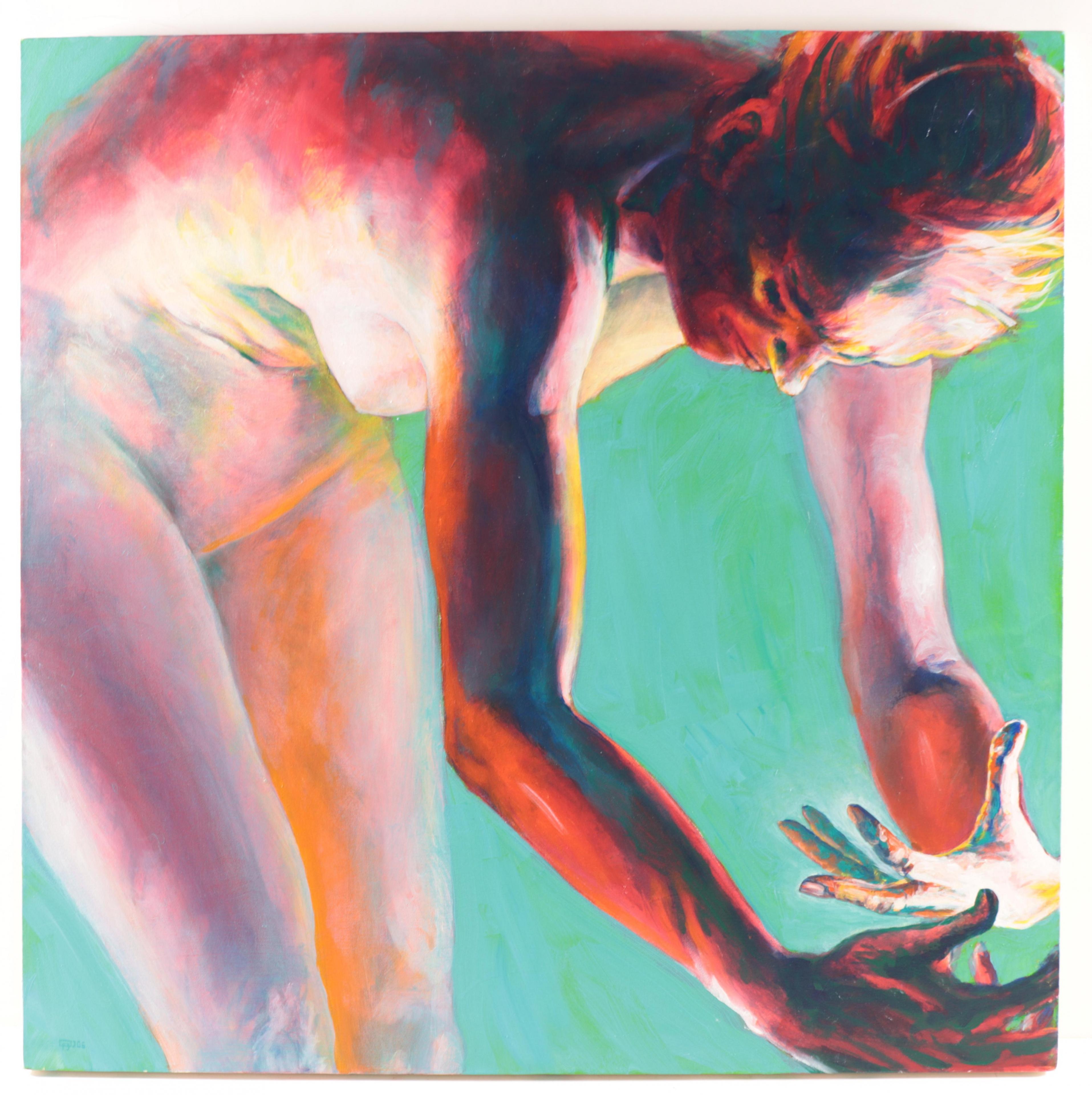 doek, niet ingelijst, 90 x 90 cm.
