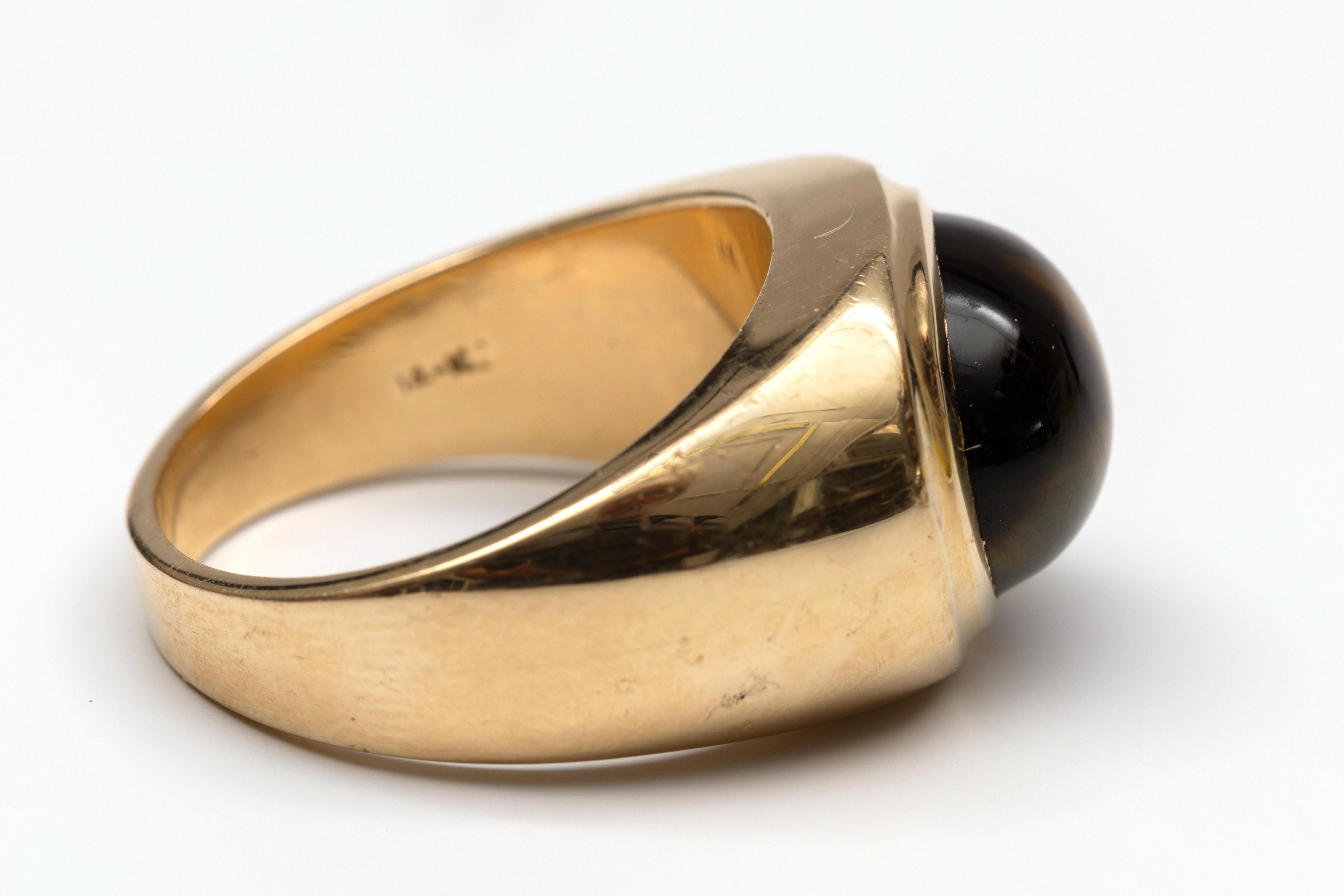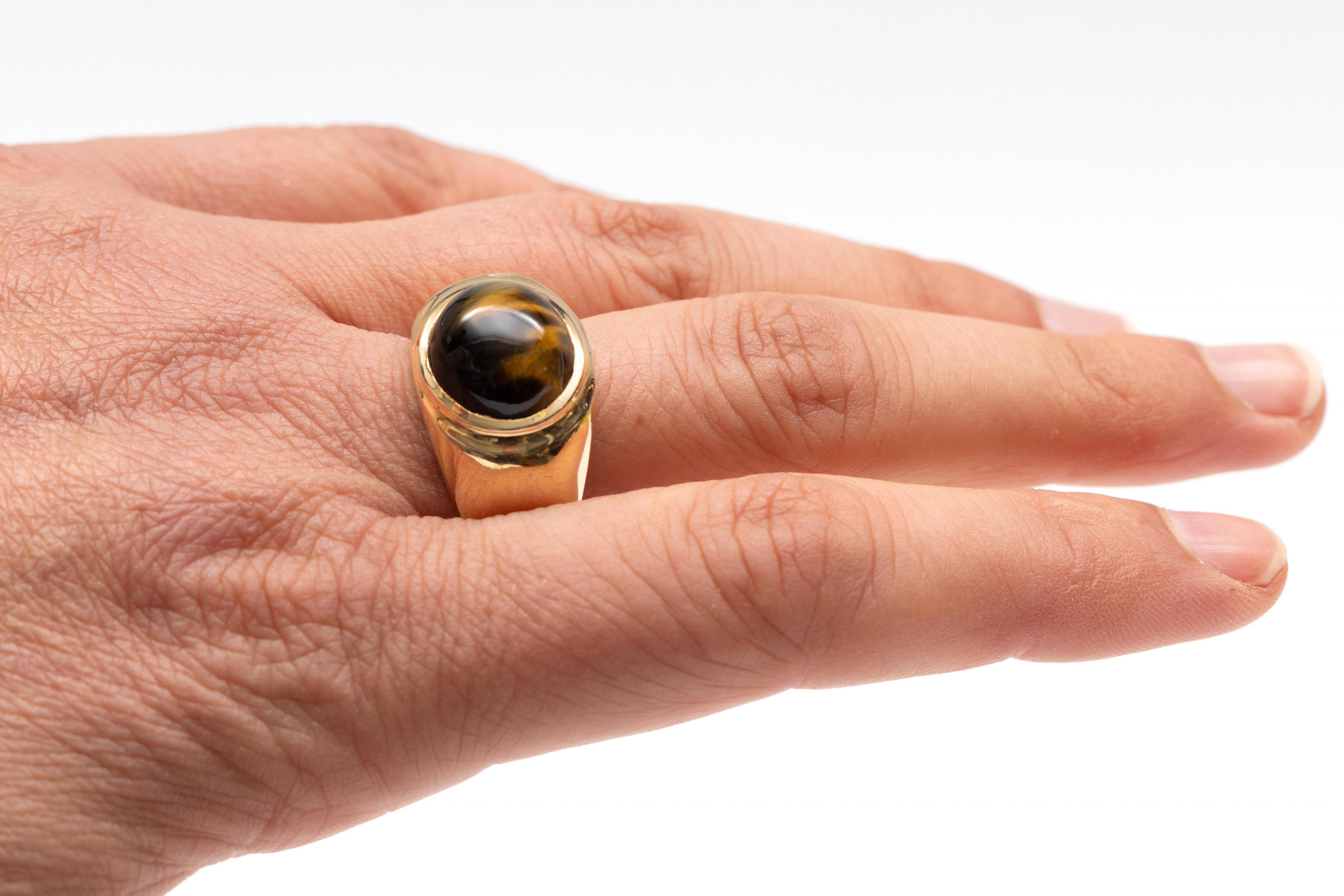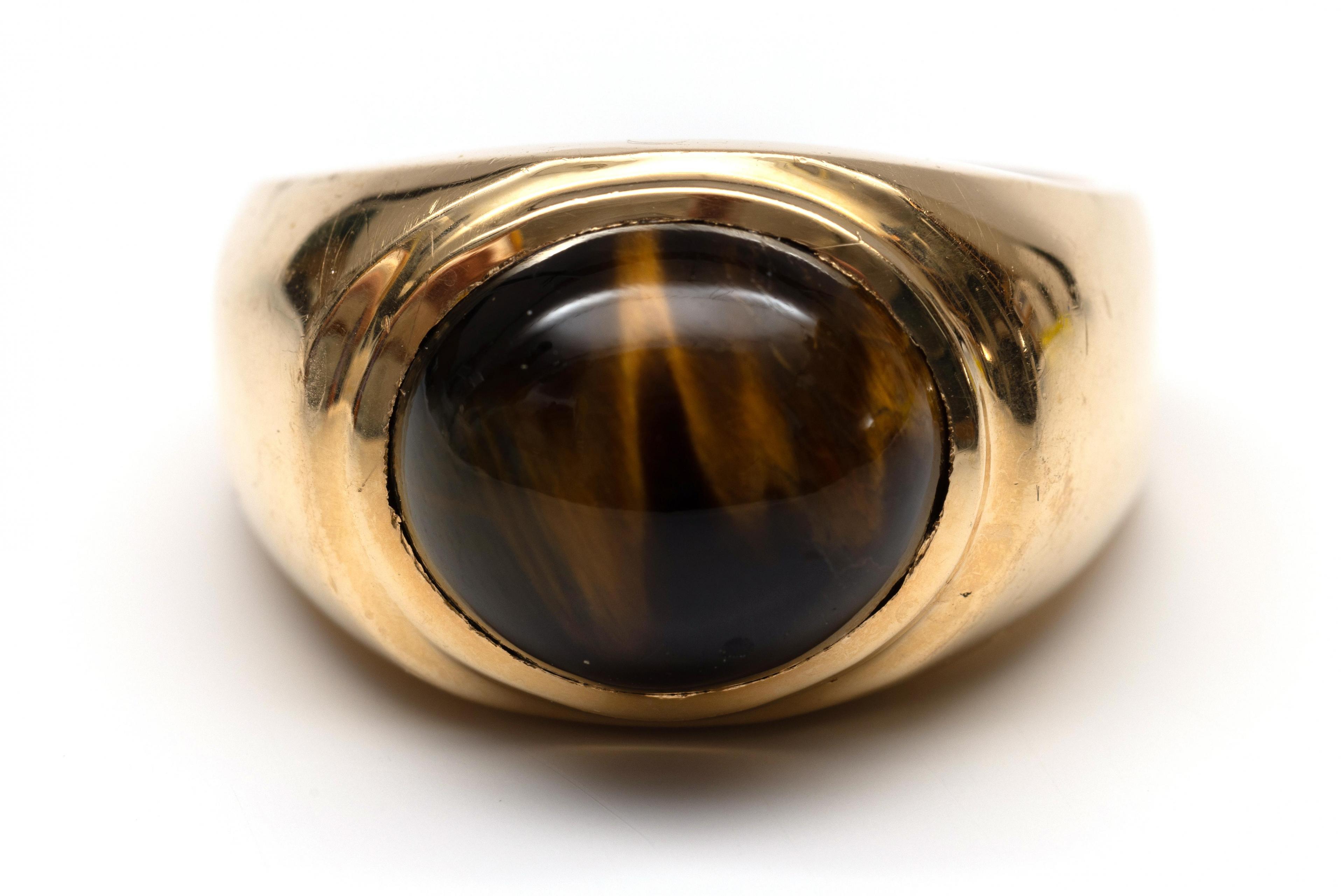 14 k. Gold ring, set with an oval cabochon-cut tiger's eye (approx. 12 x 13.7 mm), maker's mark Jansen, Post & Cocx, Amsterdam, 1965-2014.