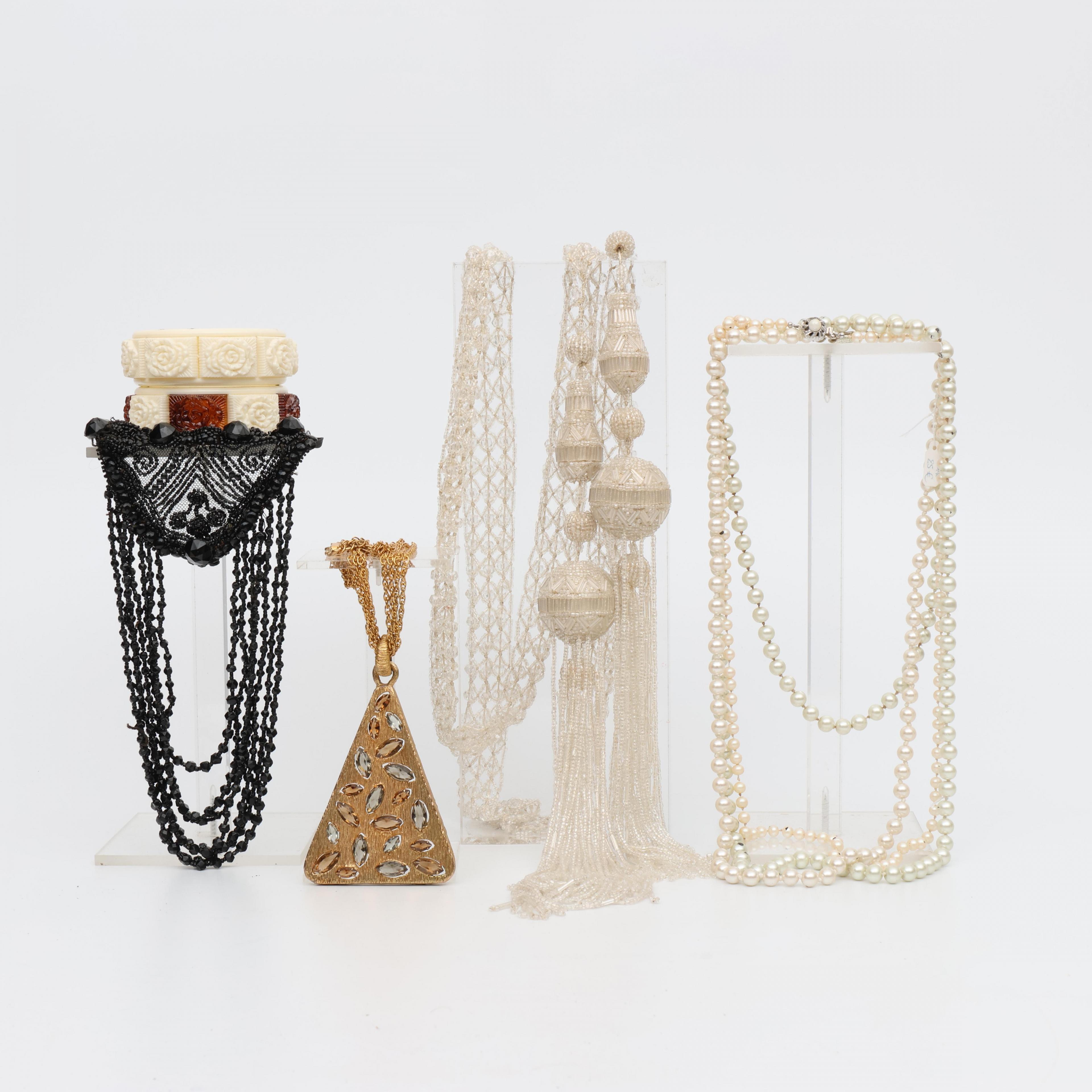 Diverse colliers waaronder cultive parels, en een kralen riem