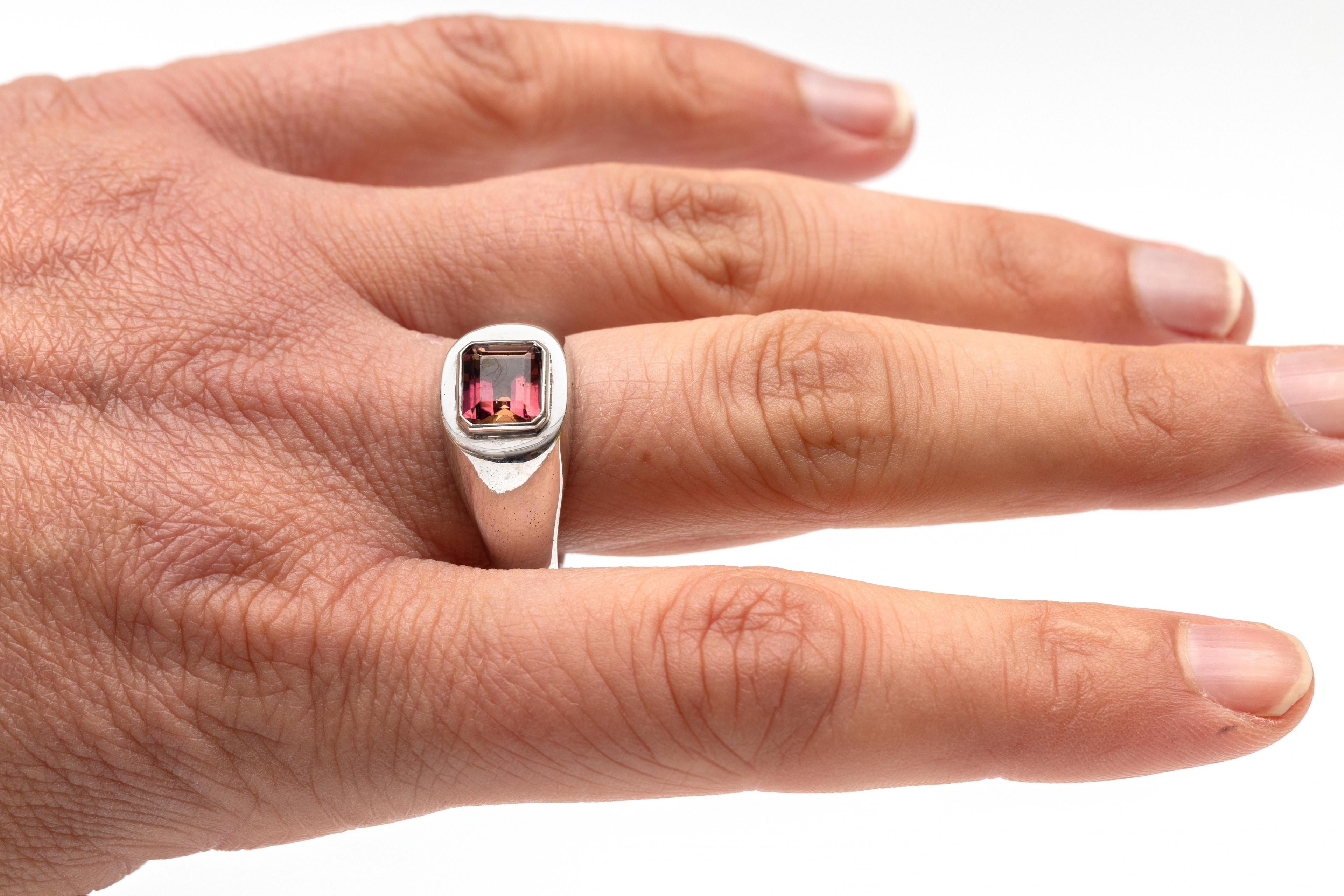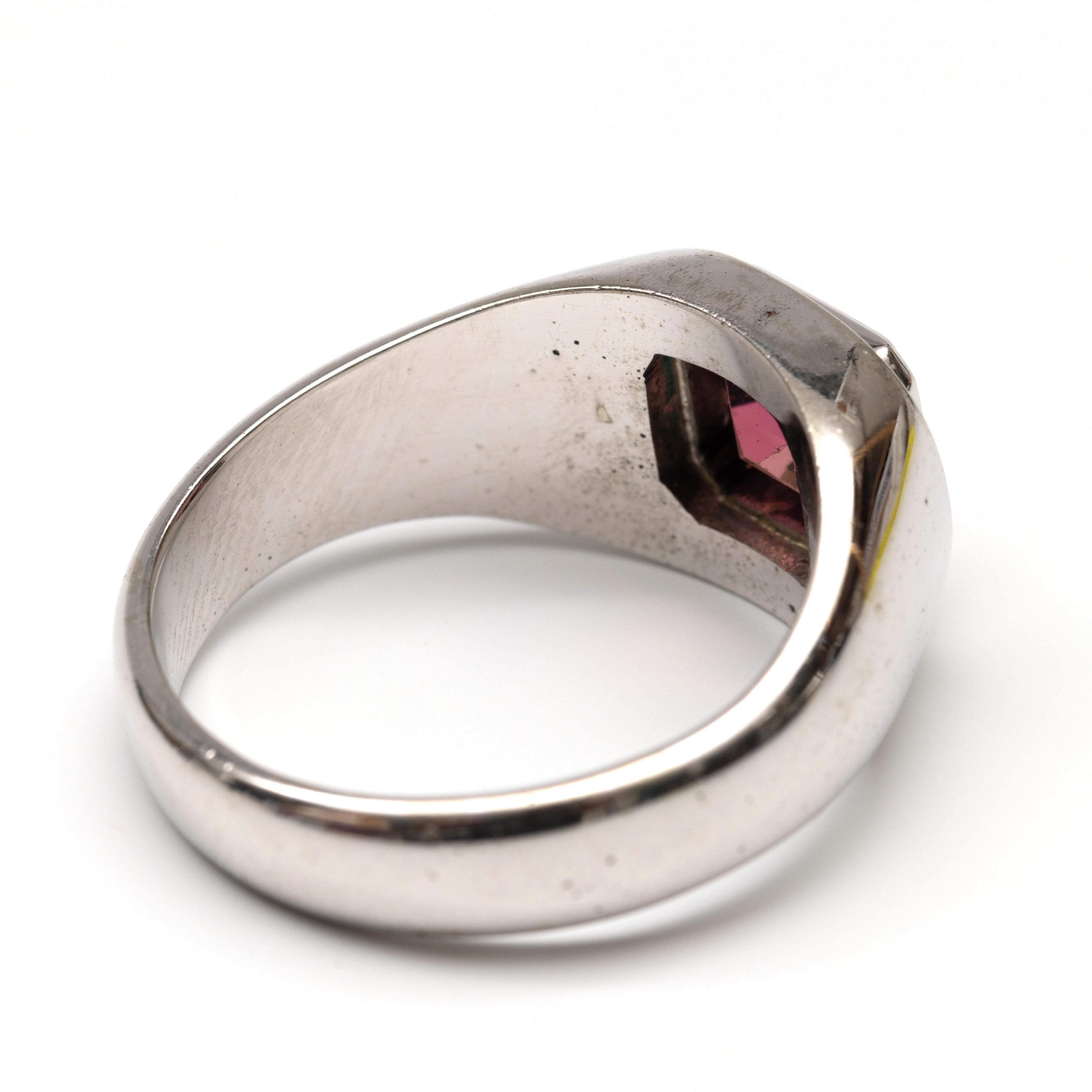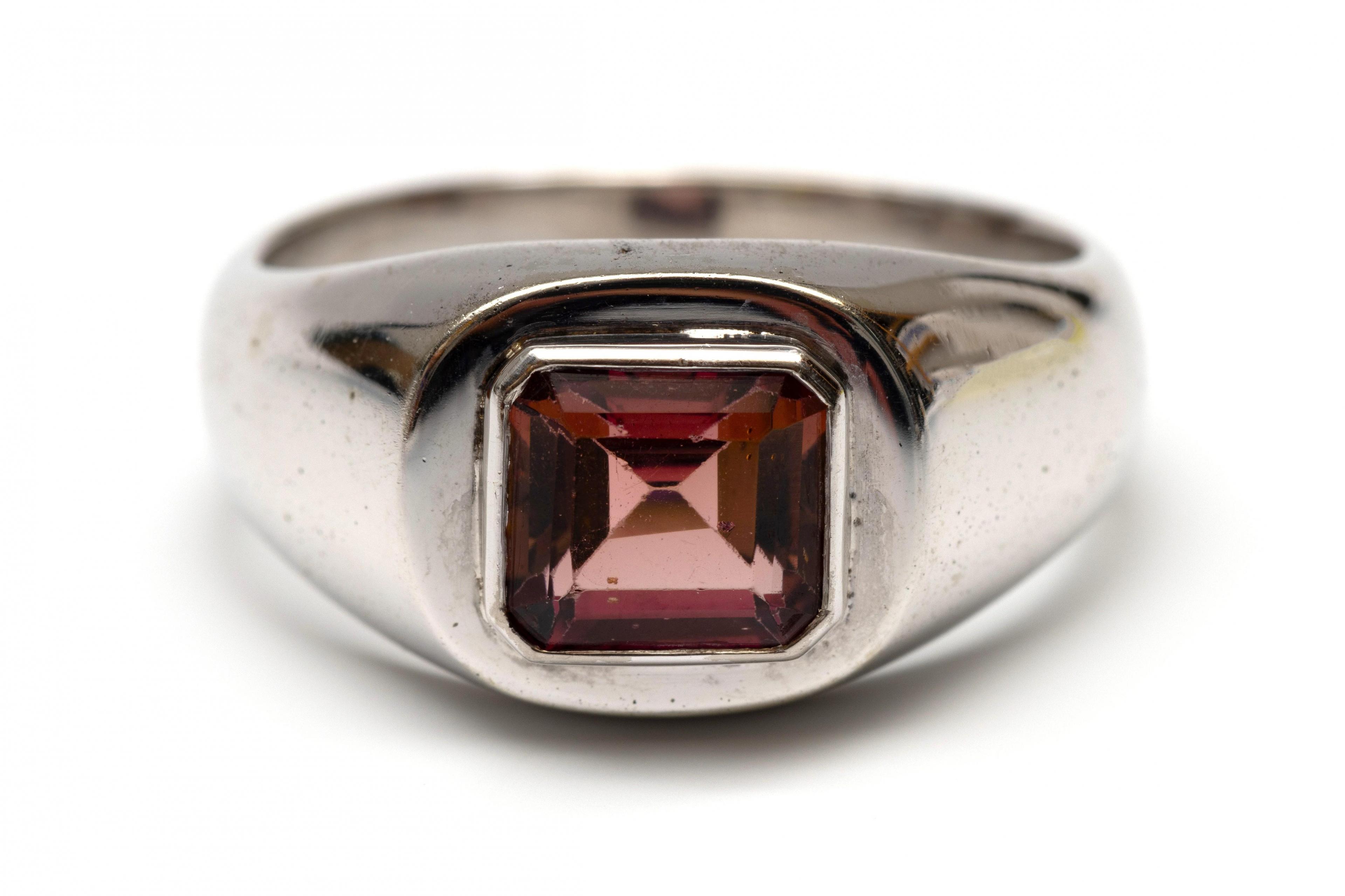 14 k. white gold ring. Set with an emerald-cut, highly pleochroic purple-pink rubelite (approx. 6.5 x 7.2 mm)