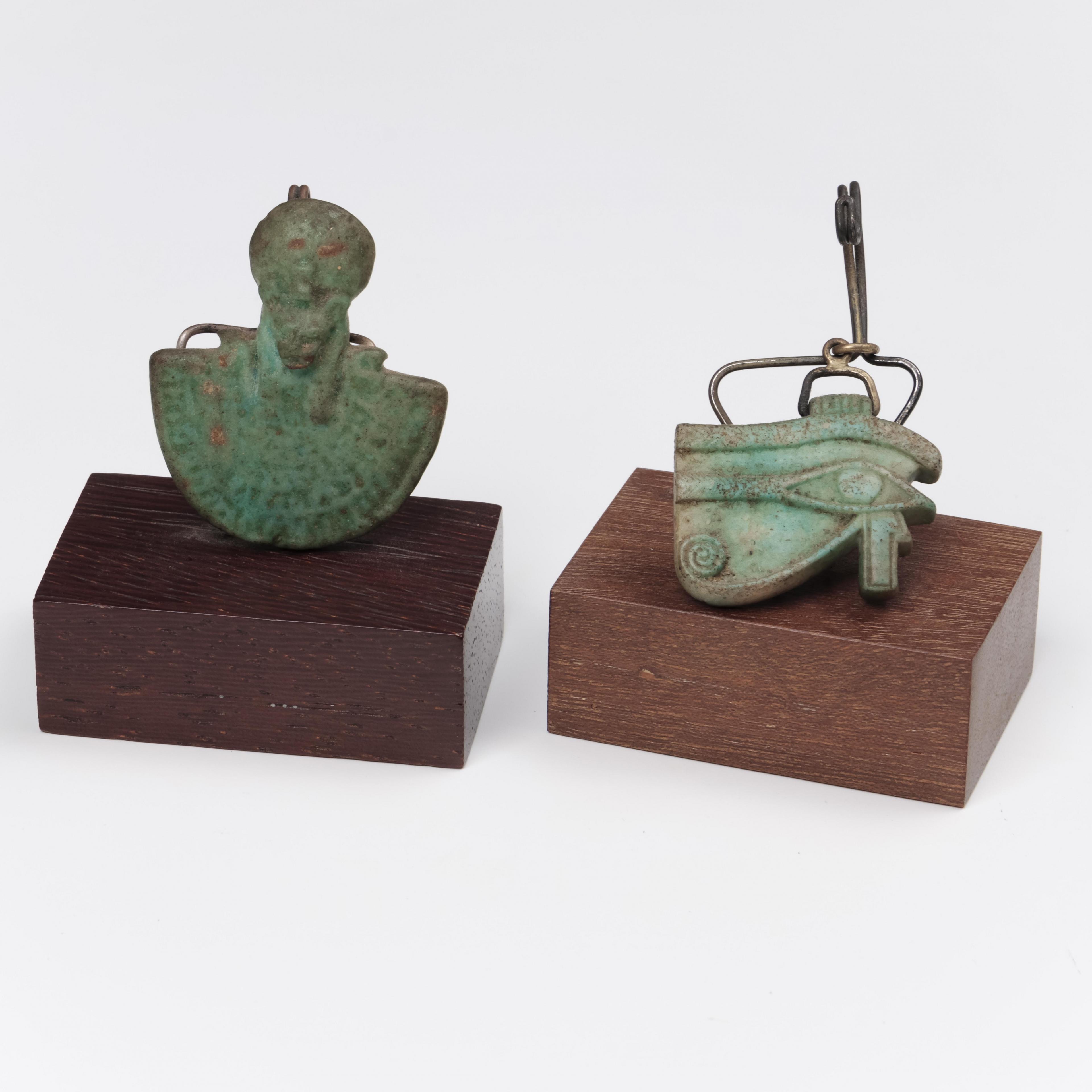 Egypt, a faience Sekhmet and a faience Udjat, eye amulet, Late Period.