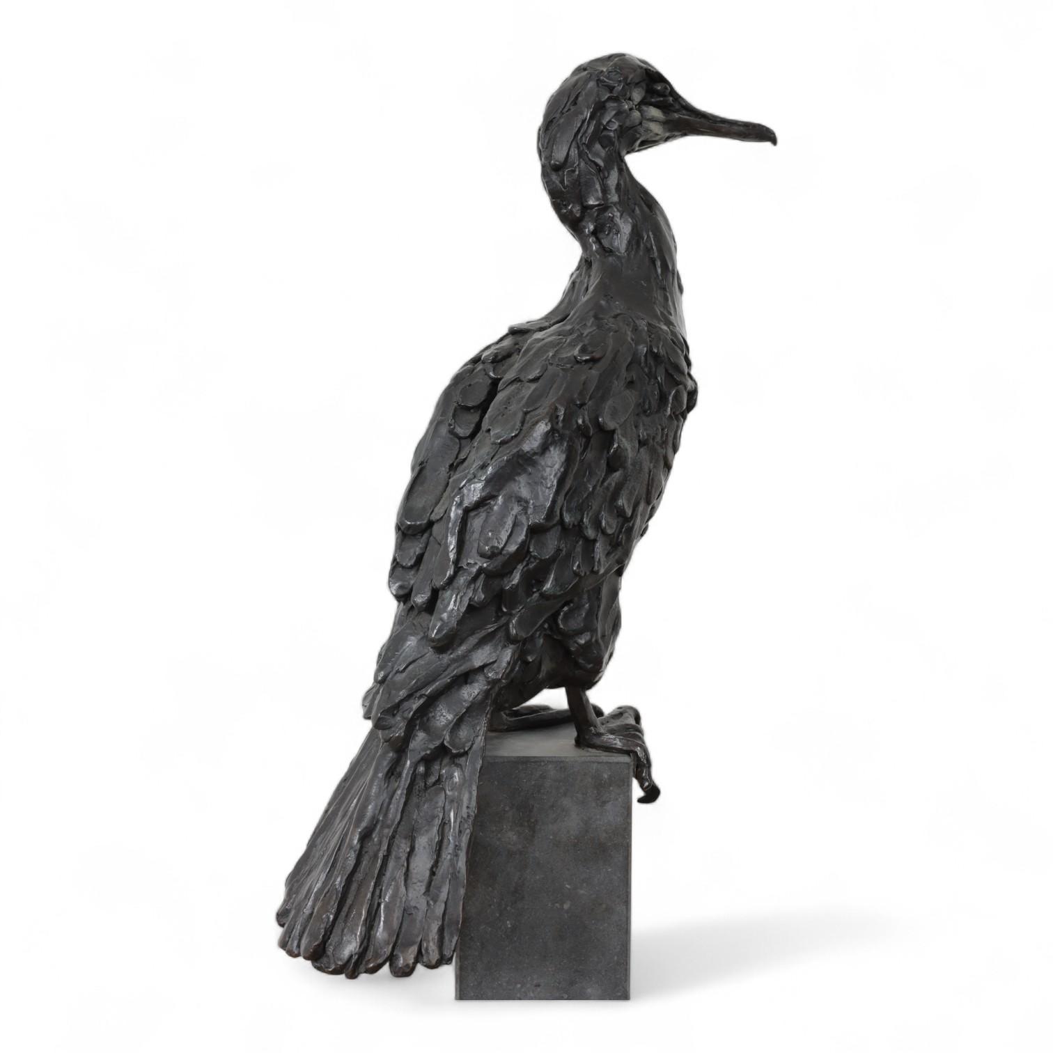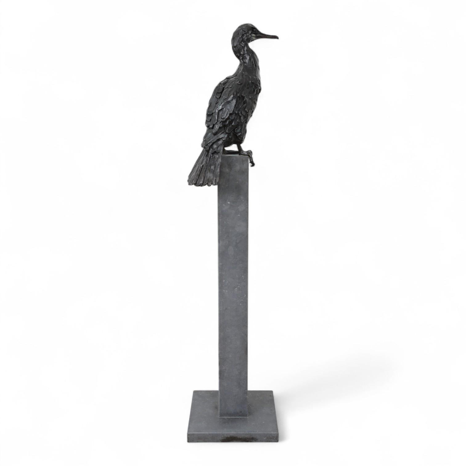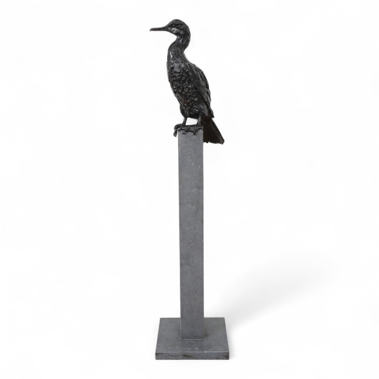 Jacqueline van der Laan (1948), zwart gepatineerd bronzen sculptuur van Aalscholver;