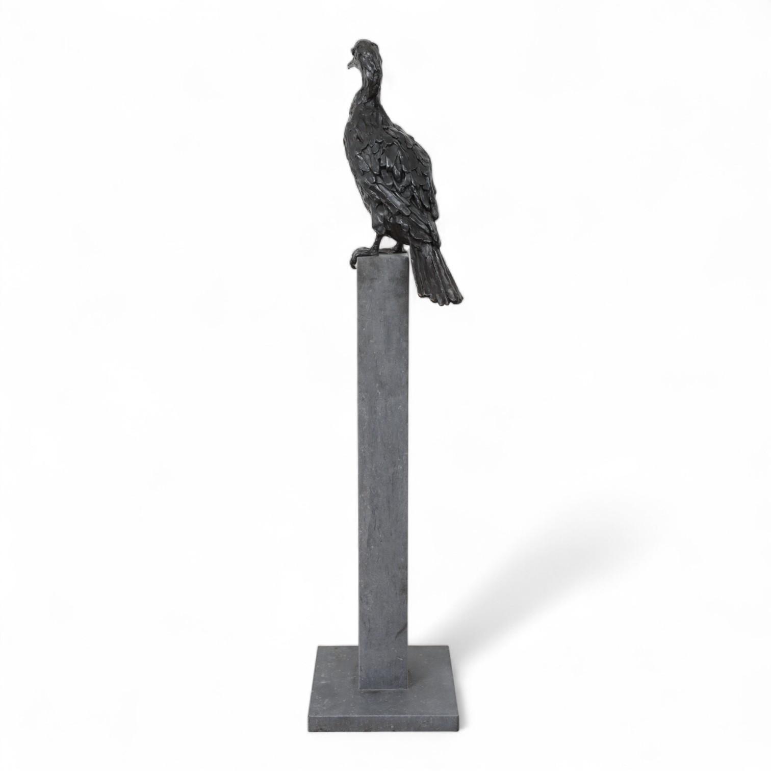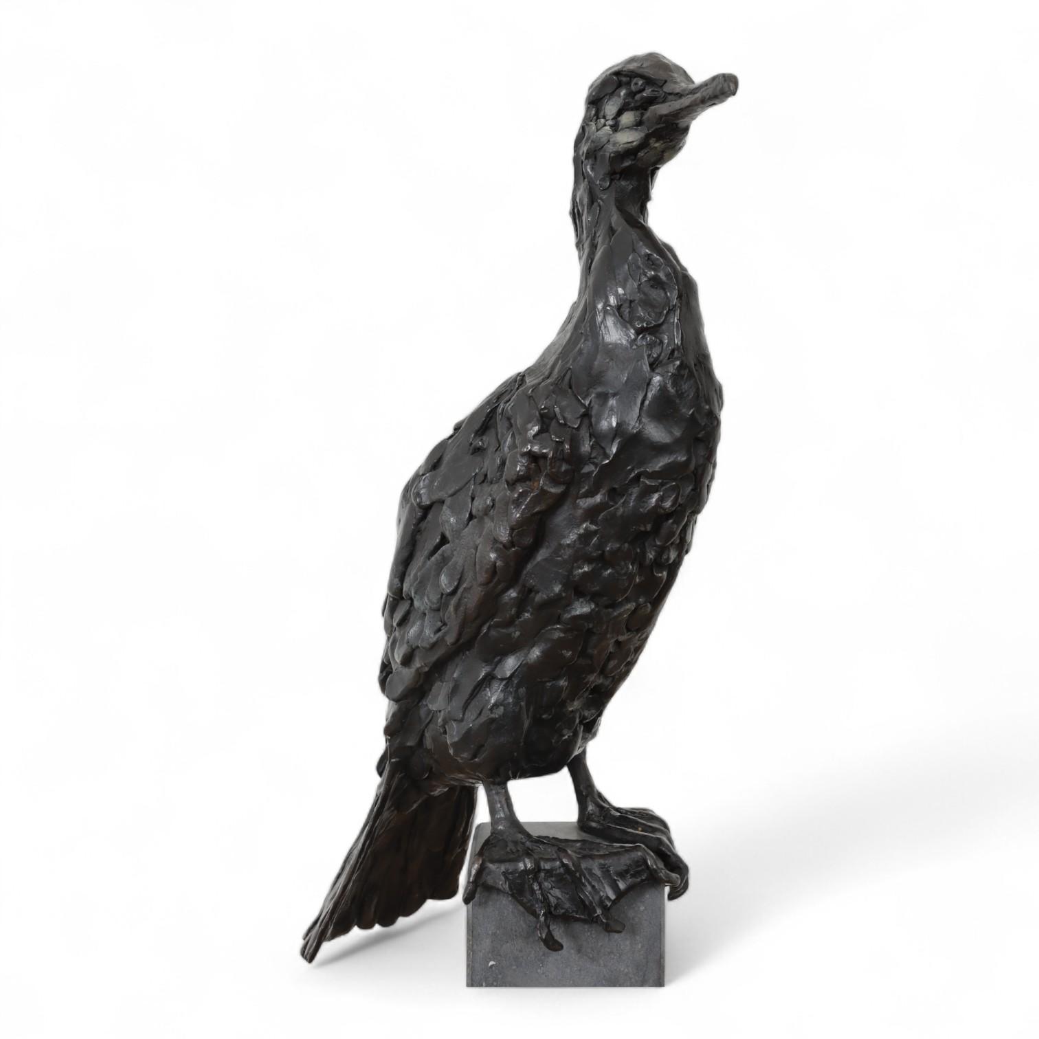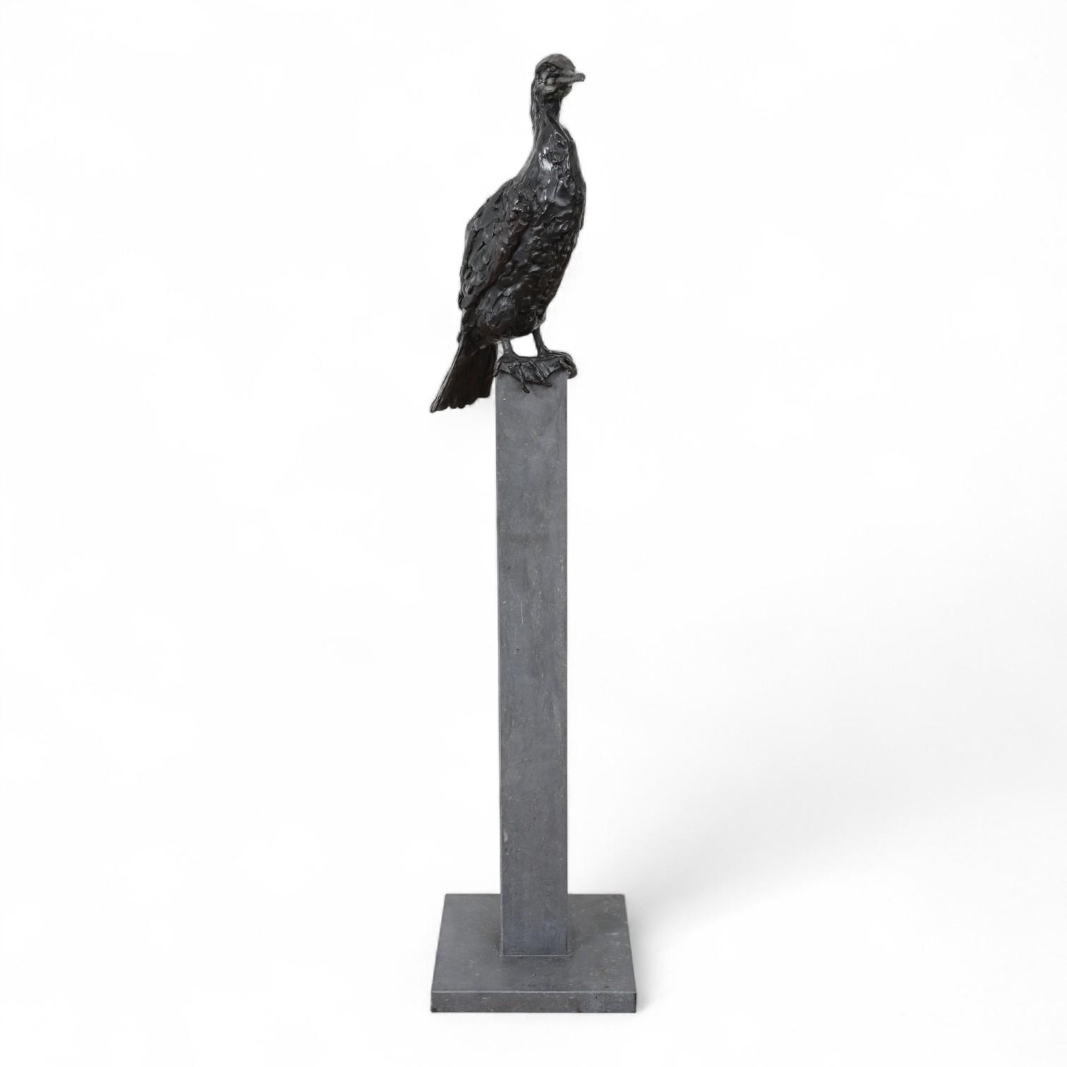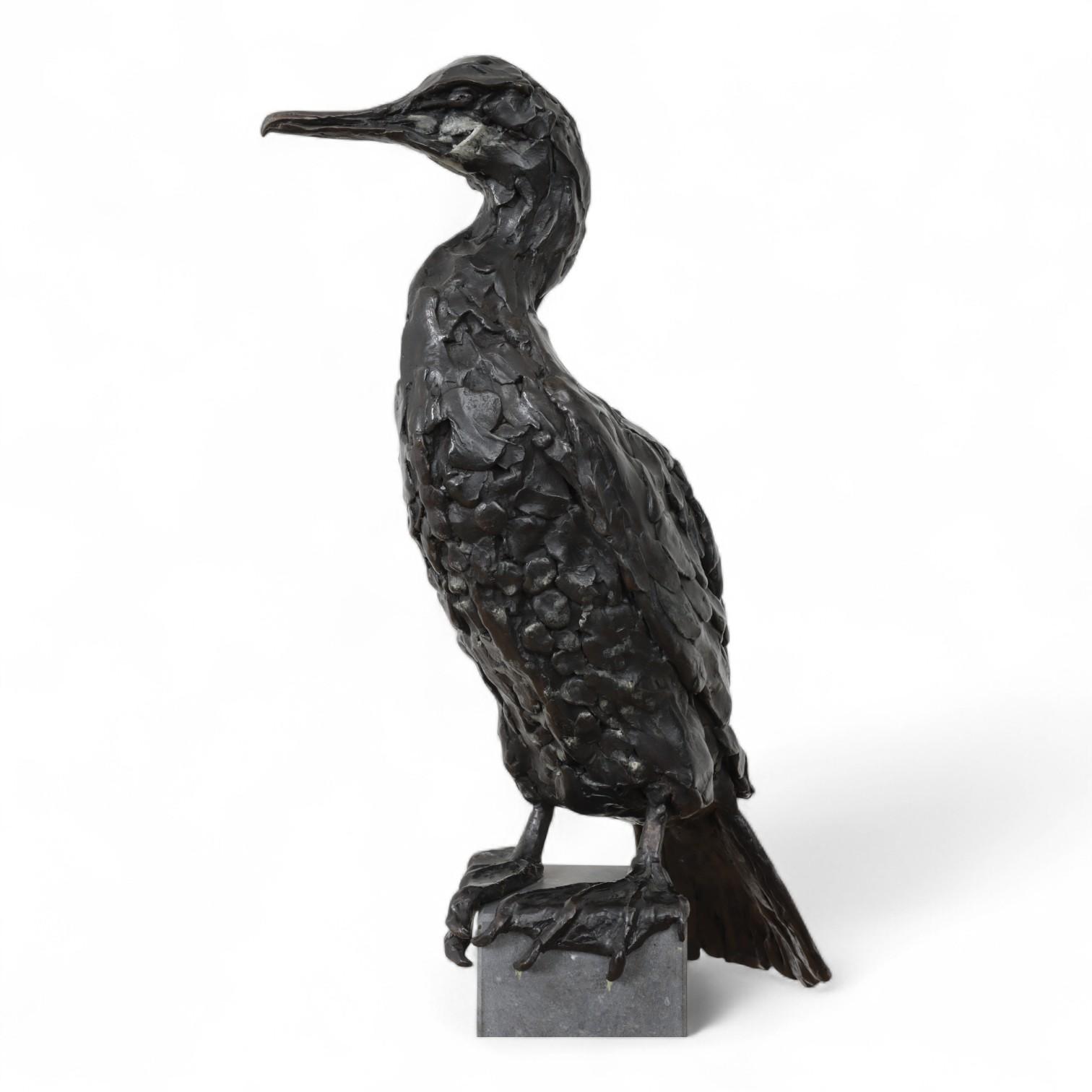 Jacqueline van der Laan (1948), zwart gepatineerd bronzen sculptuur van Aalscholver;