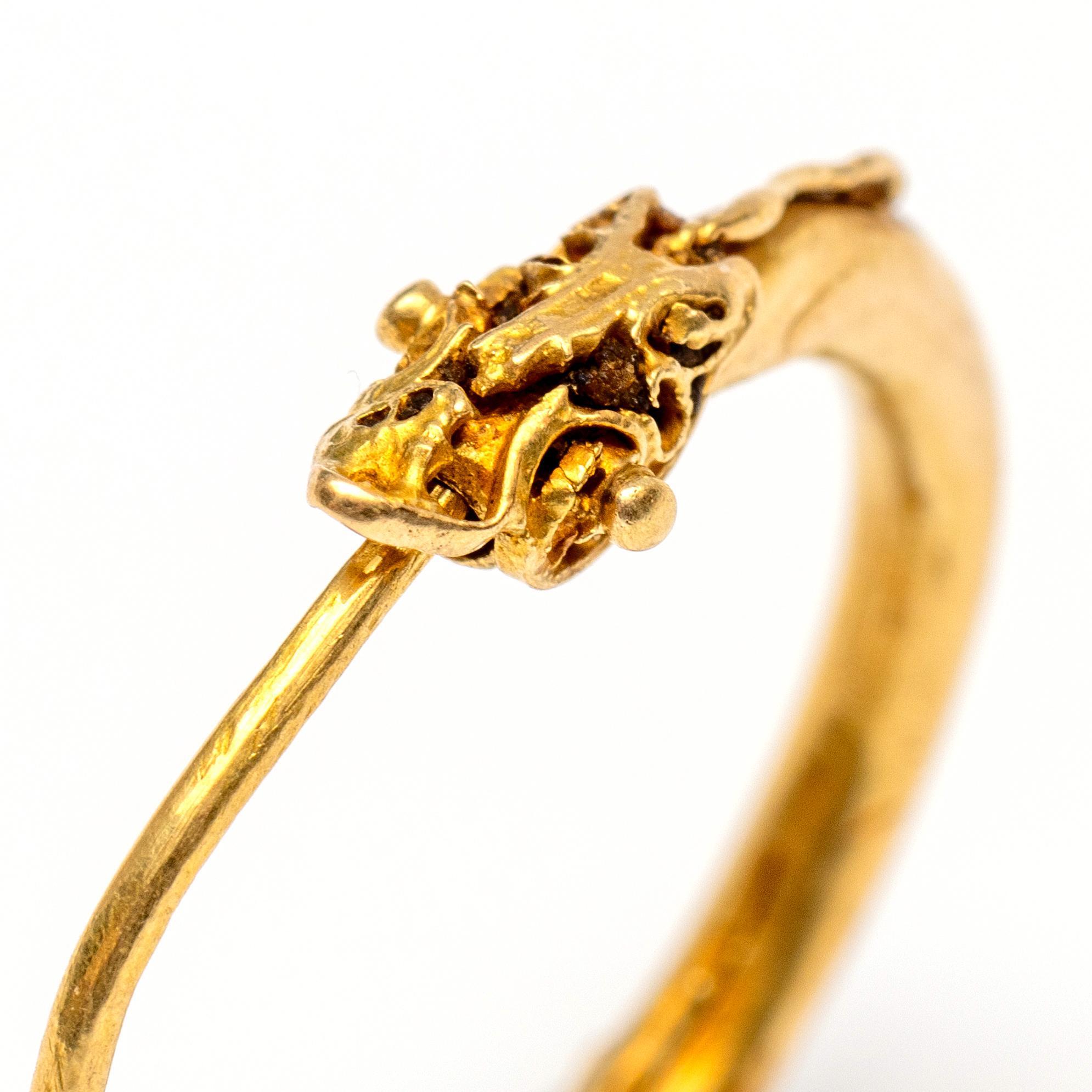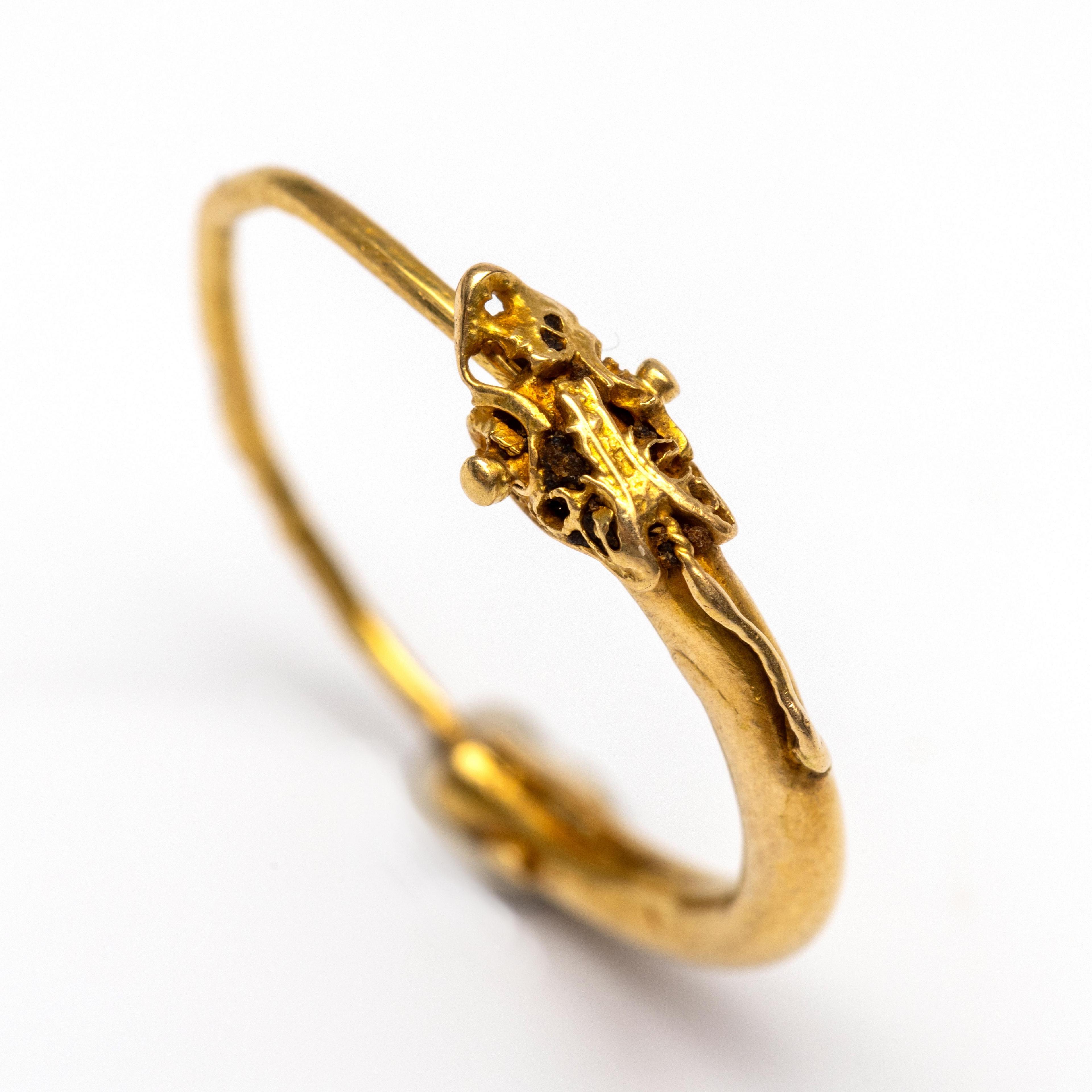 In de vorm van een slang, de kop gedecoreerd met filigrain.