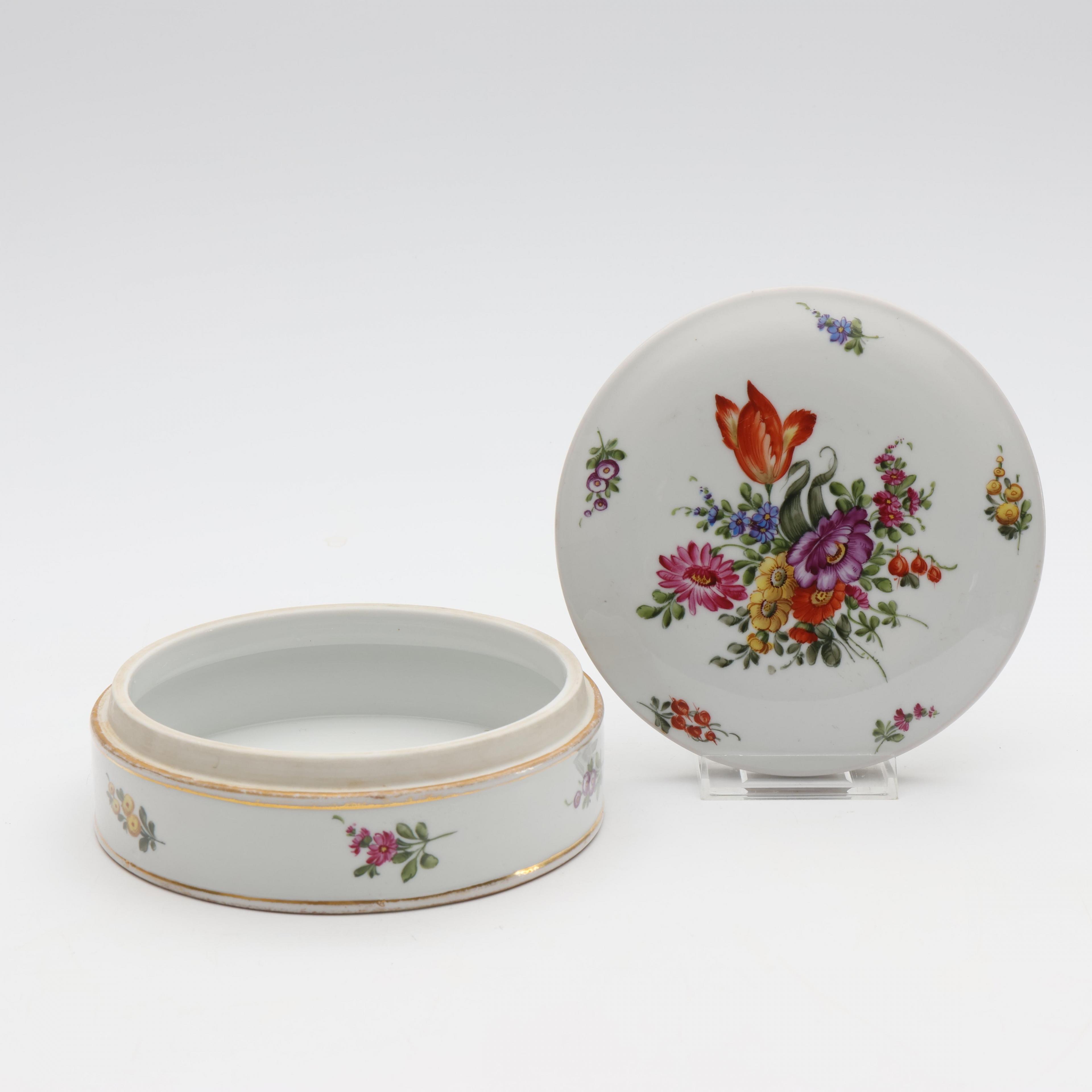 Porzellanmunufaktur Plaue, wit porseleinen koektrommel met polychrome schildering van bloemen, 19e eeuw;