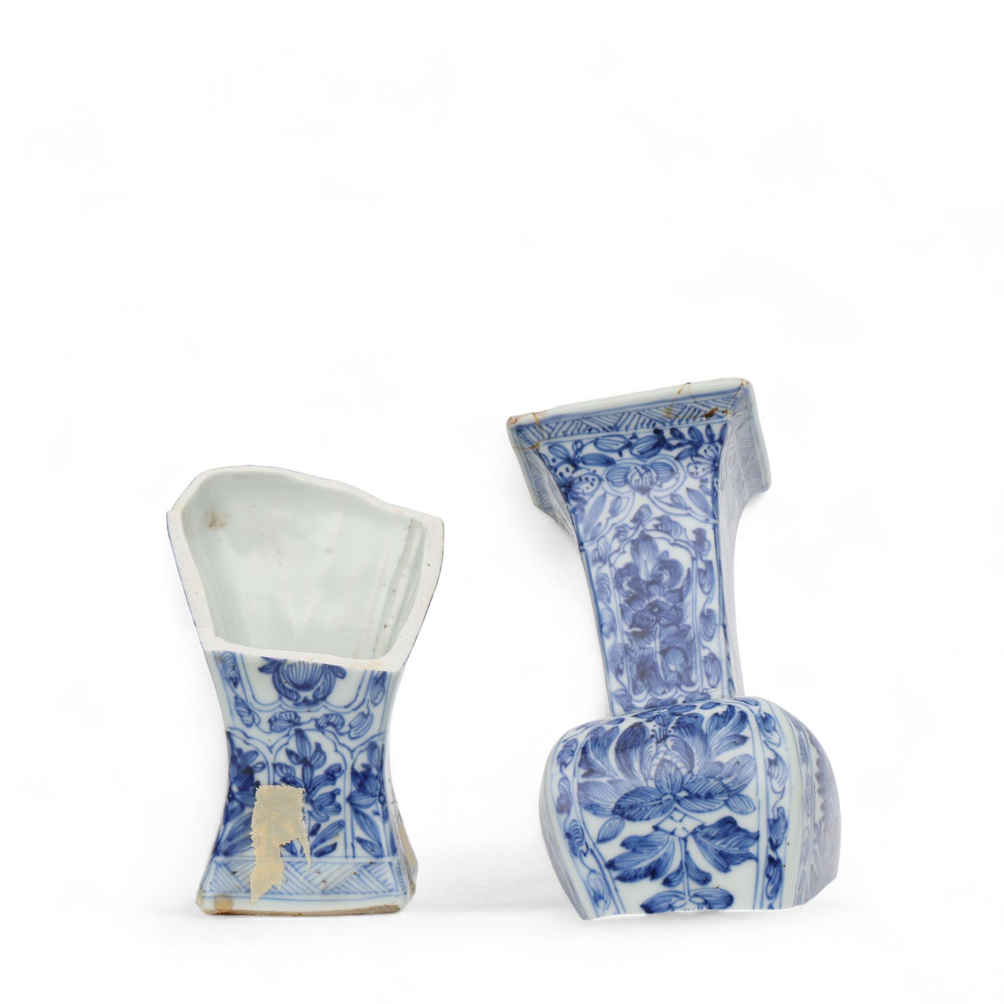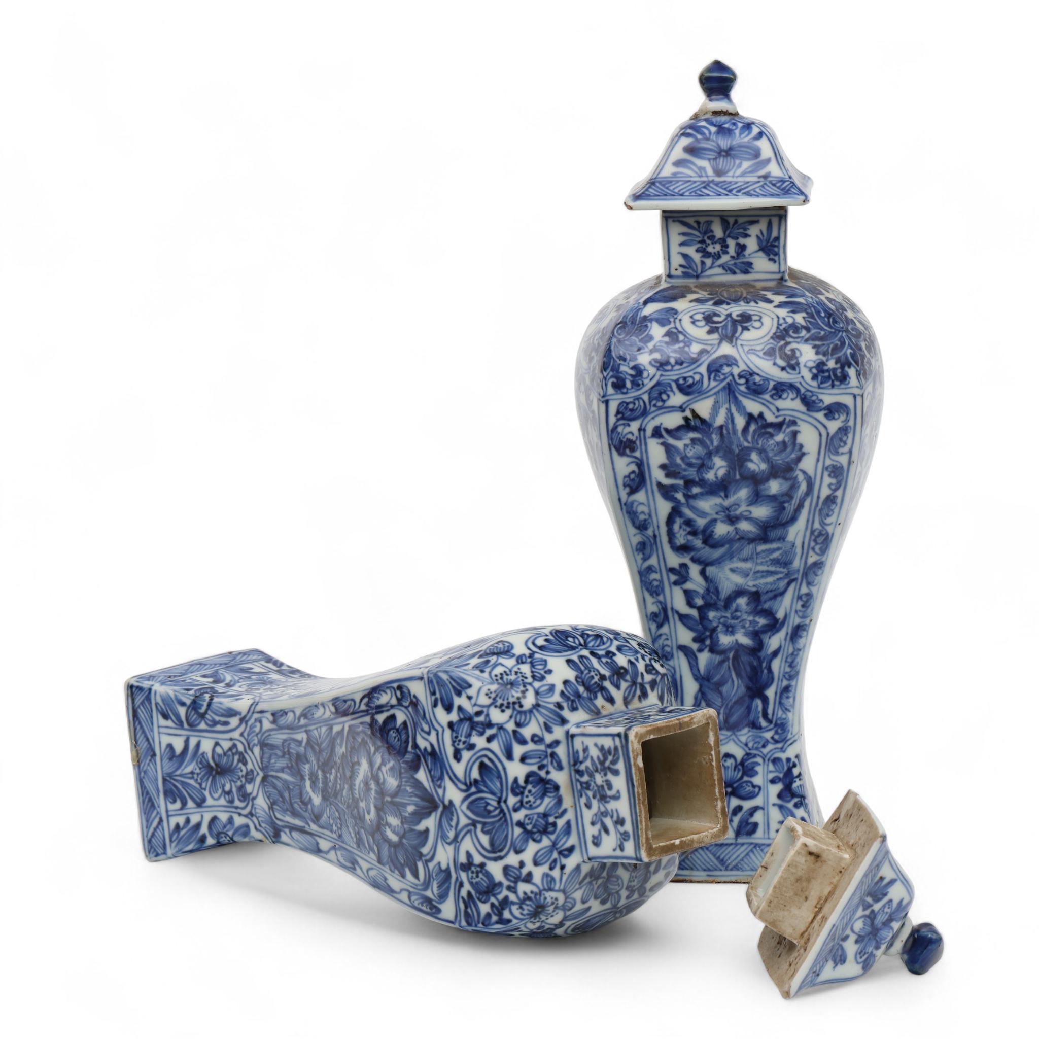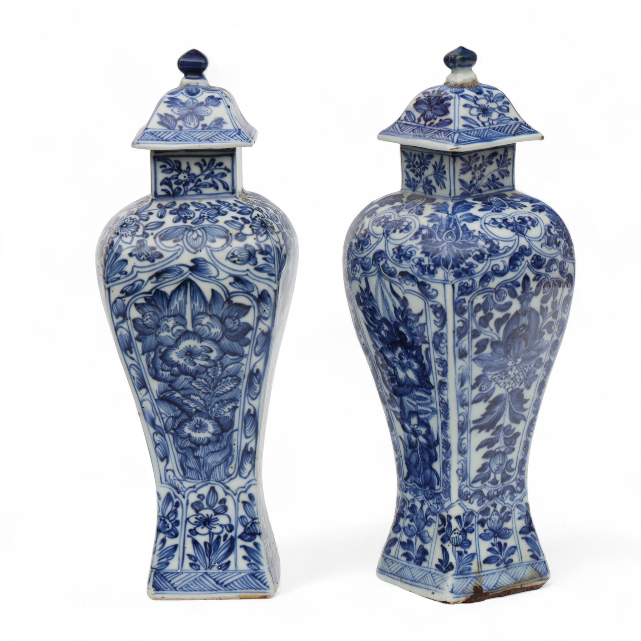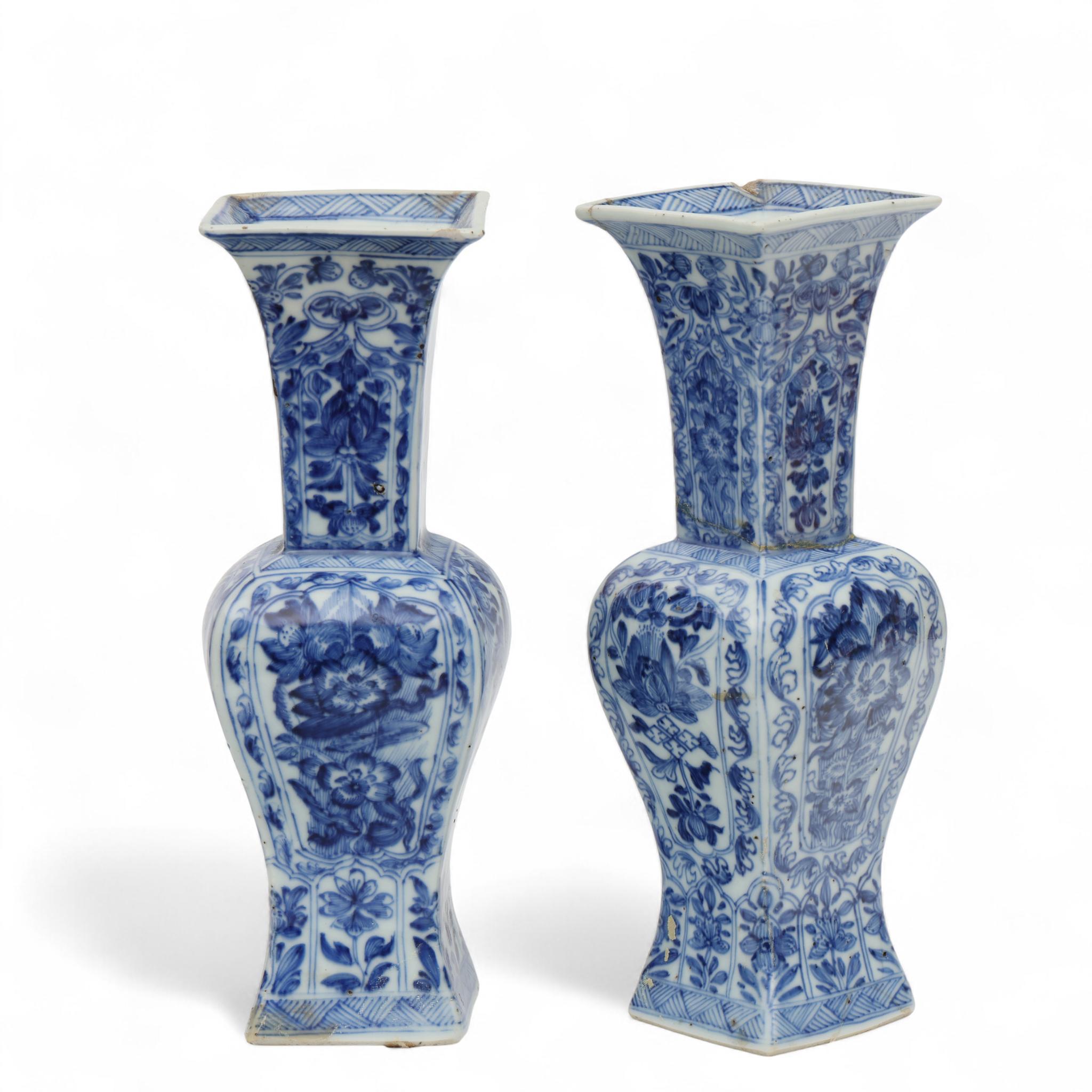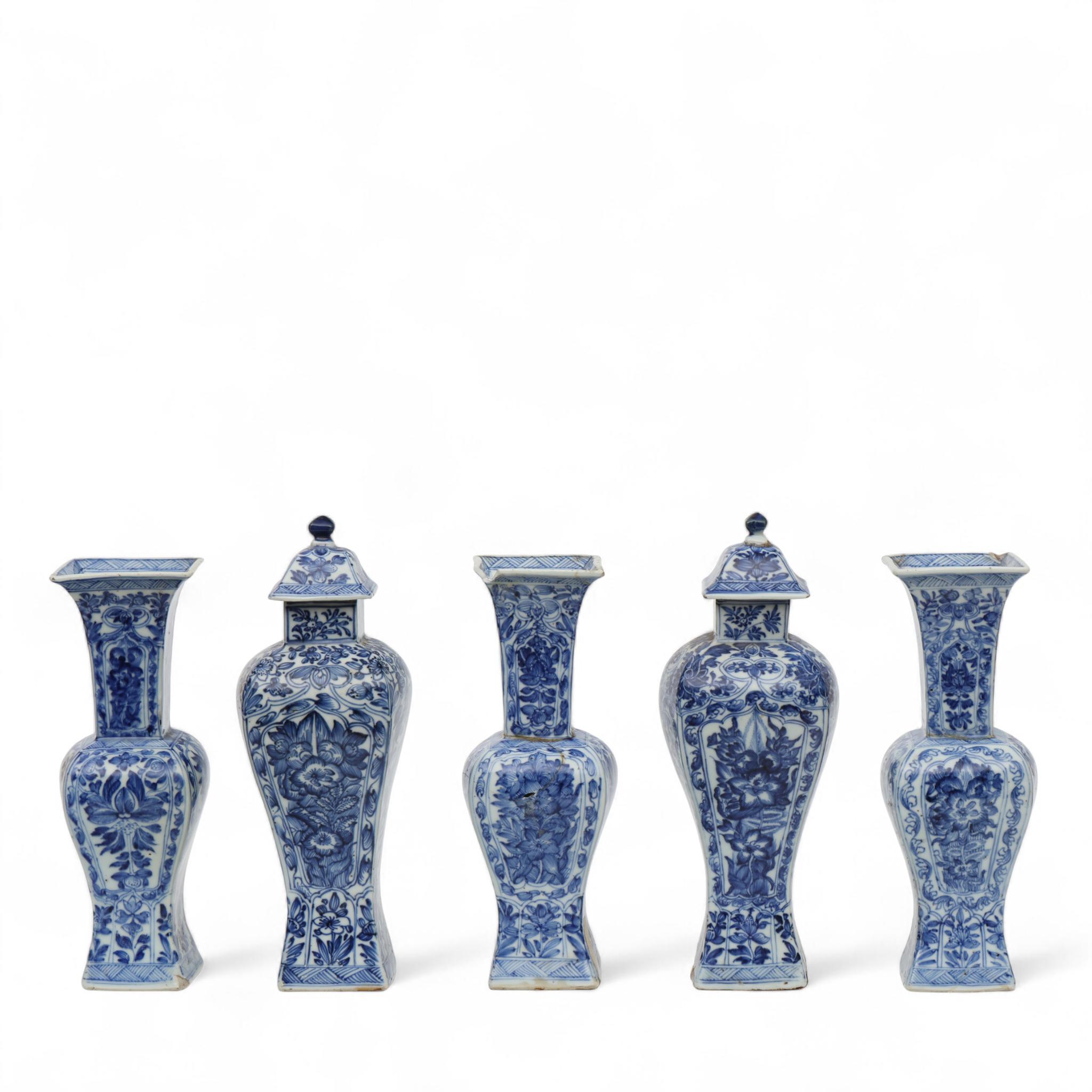 China, a square-form blue and white porcelain garniture, Kangxi period (1662-1722),