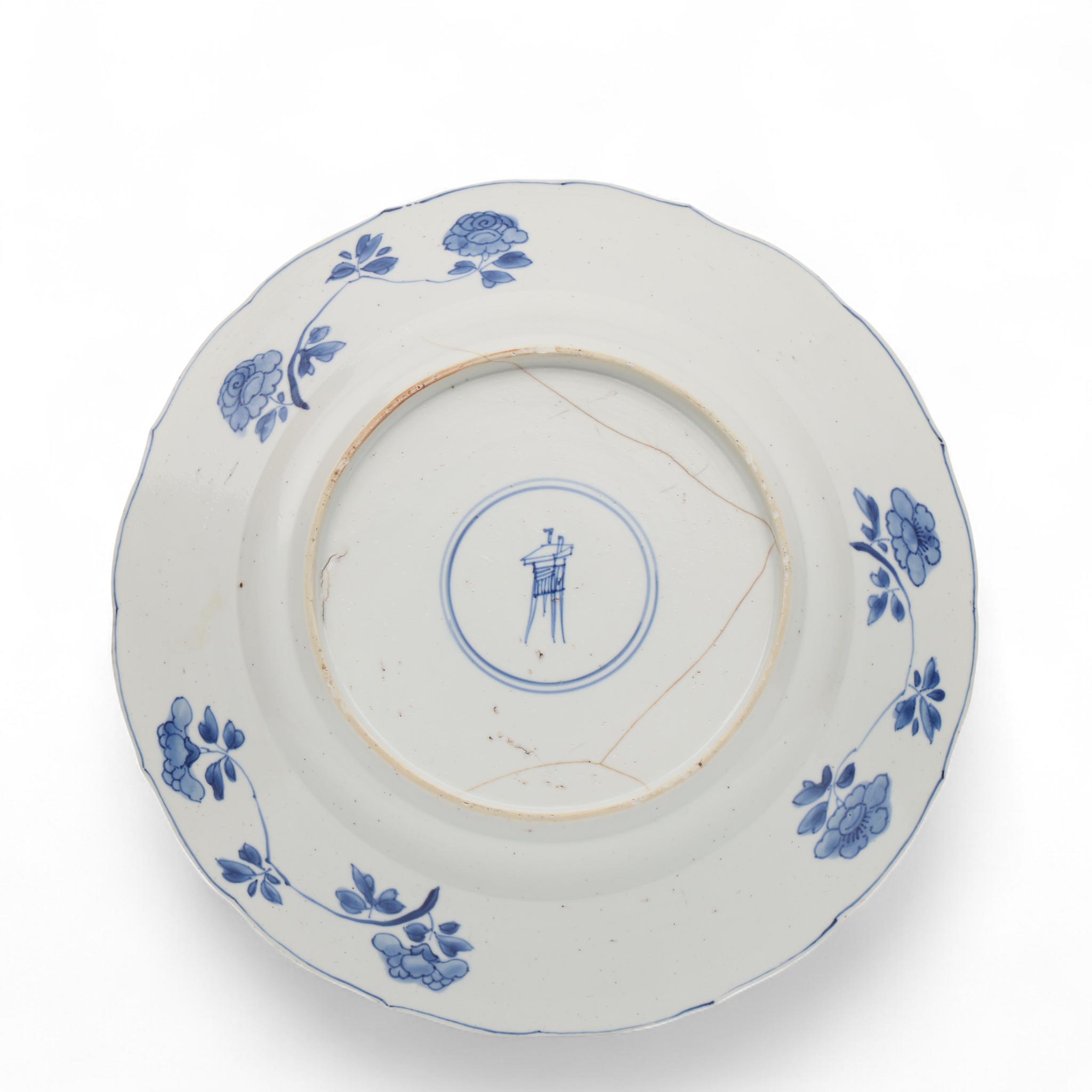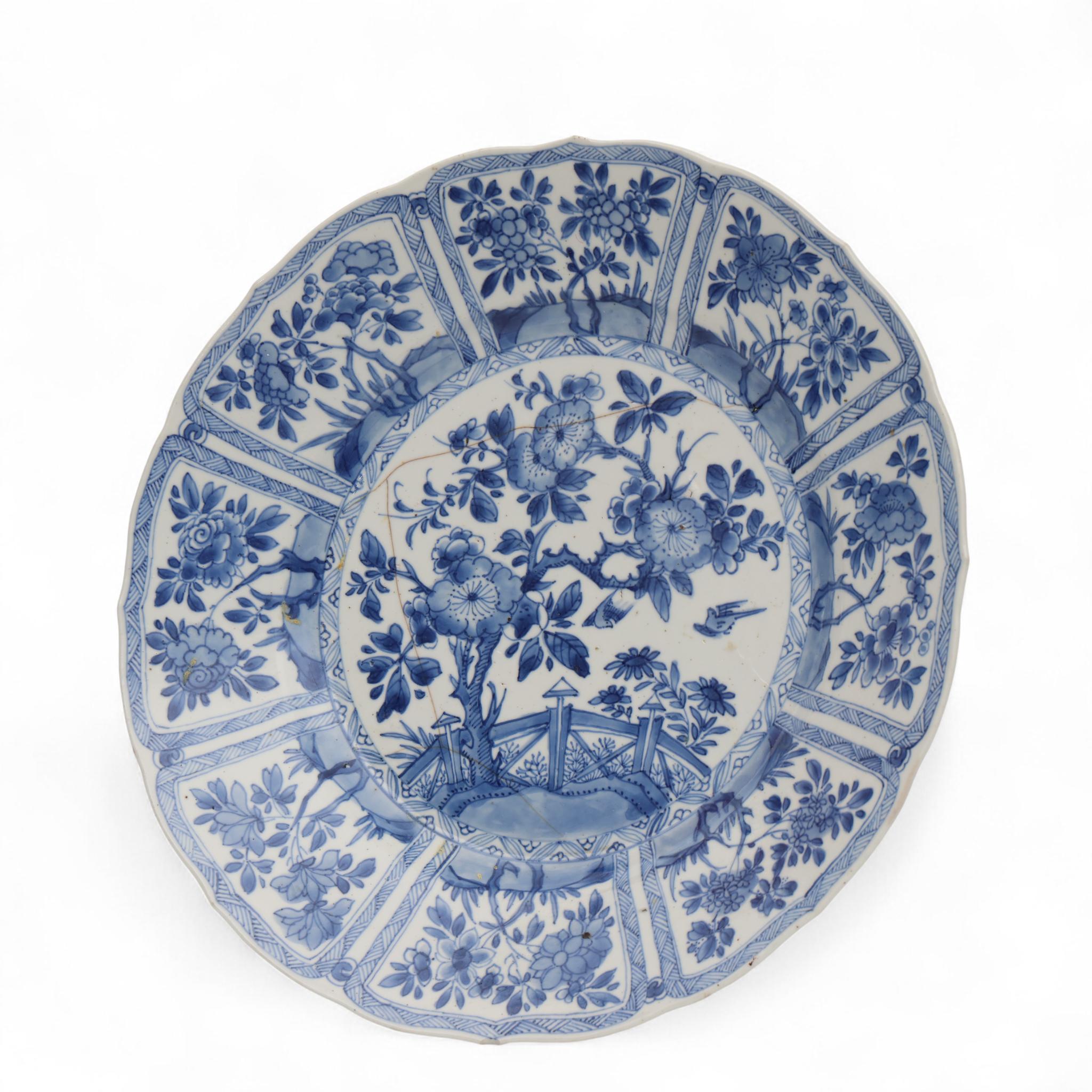painted with flowers and lappet border of flowers (large star crack)