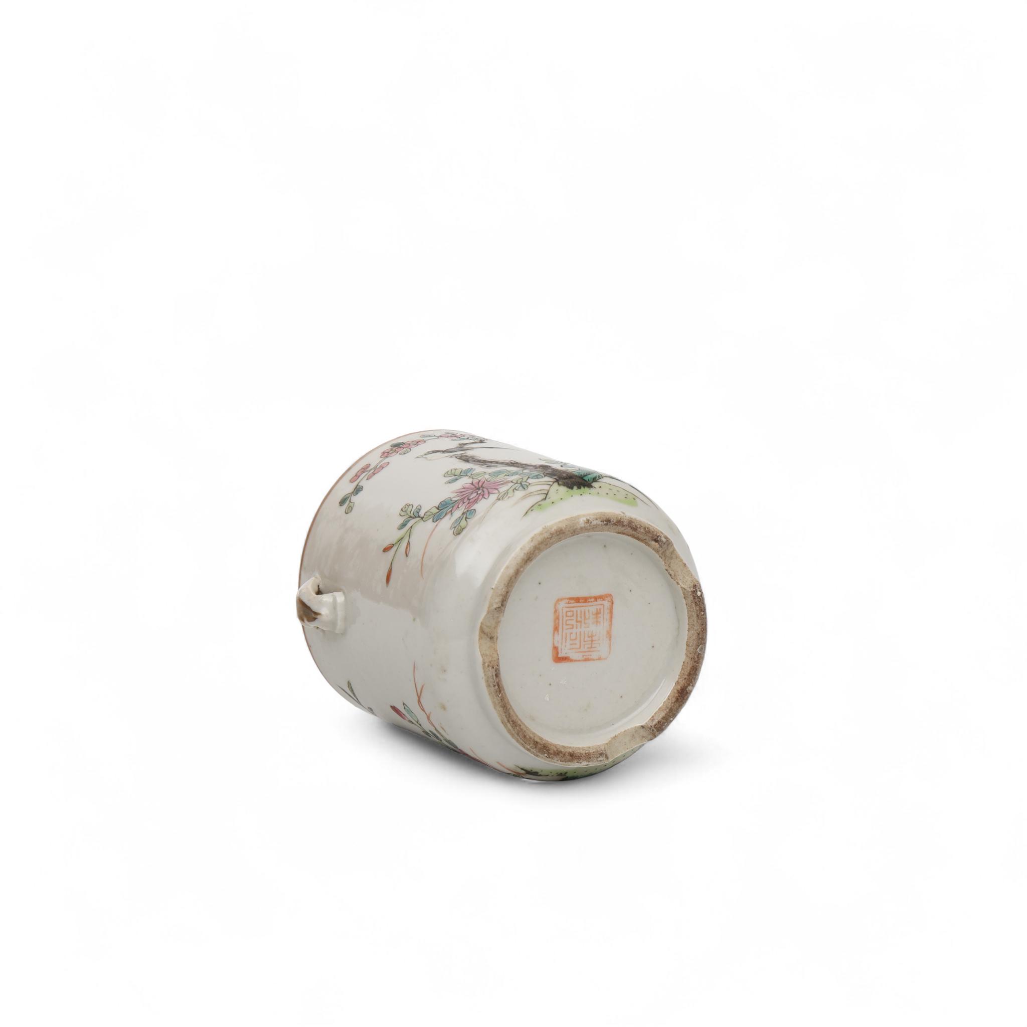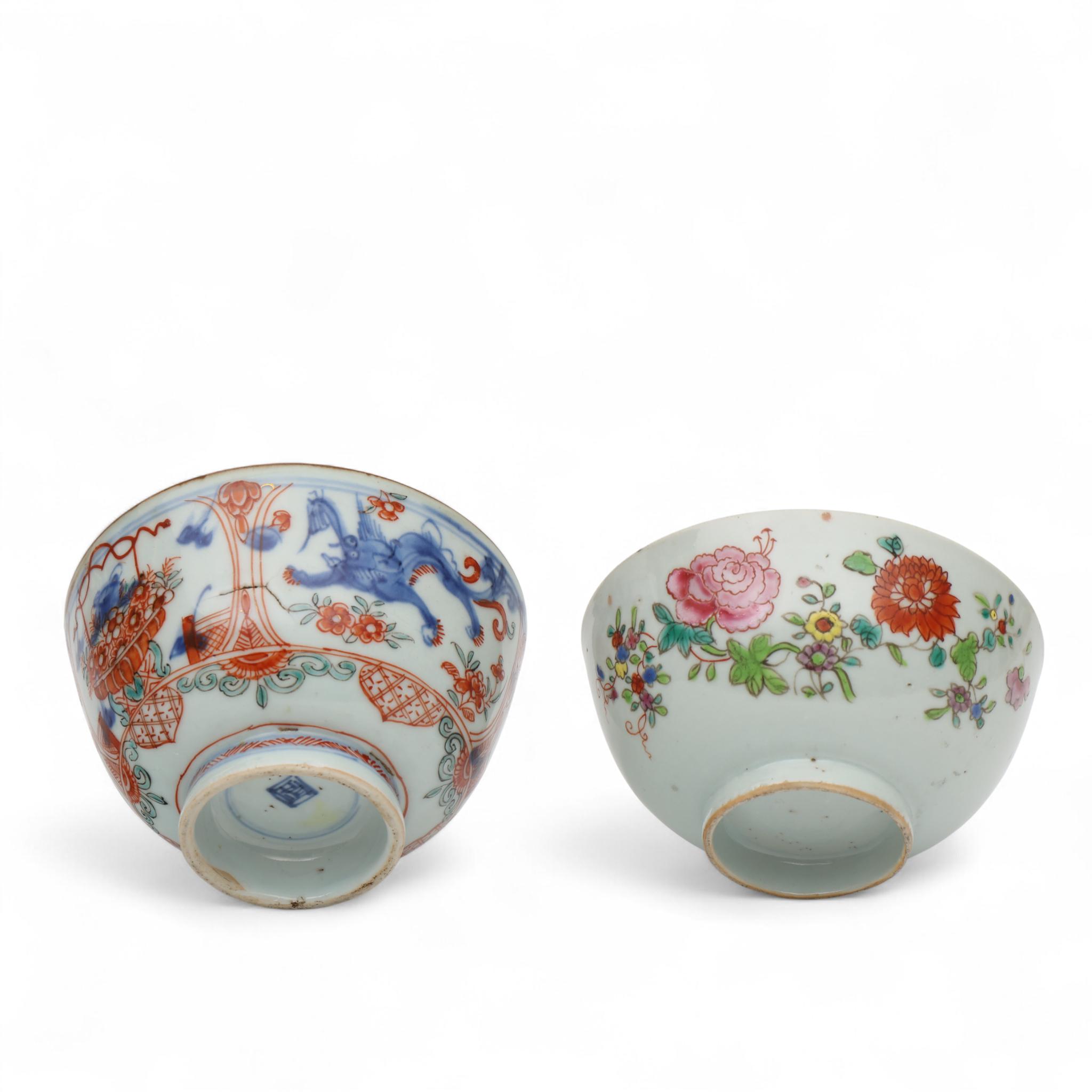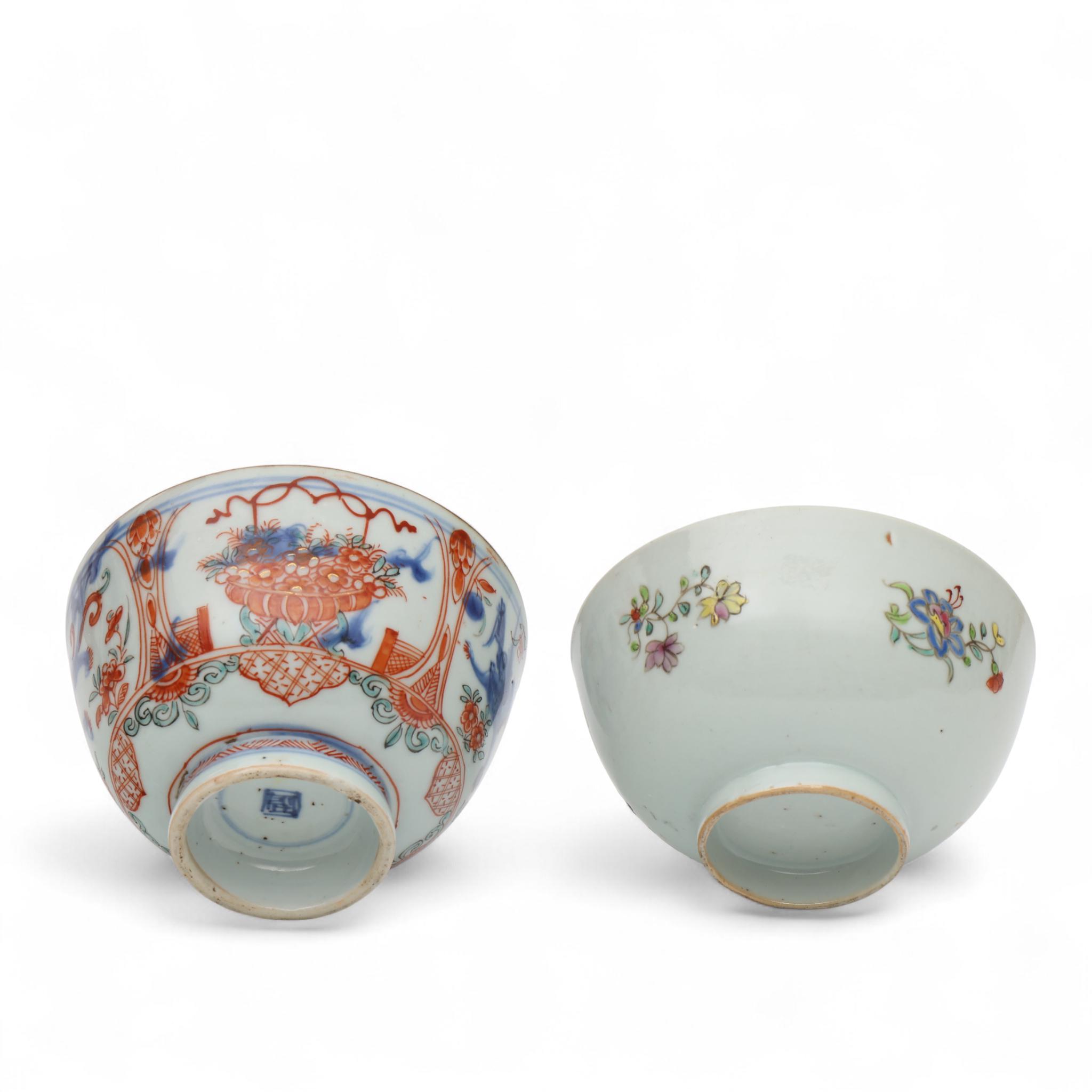 comprising an overdecorated 'Amsterdams Bont' bowl, a famille rose floral bowl and a famille rose jar and cover painted with bird on a flowering branch (cover restored and with hairlines)