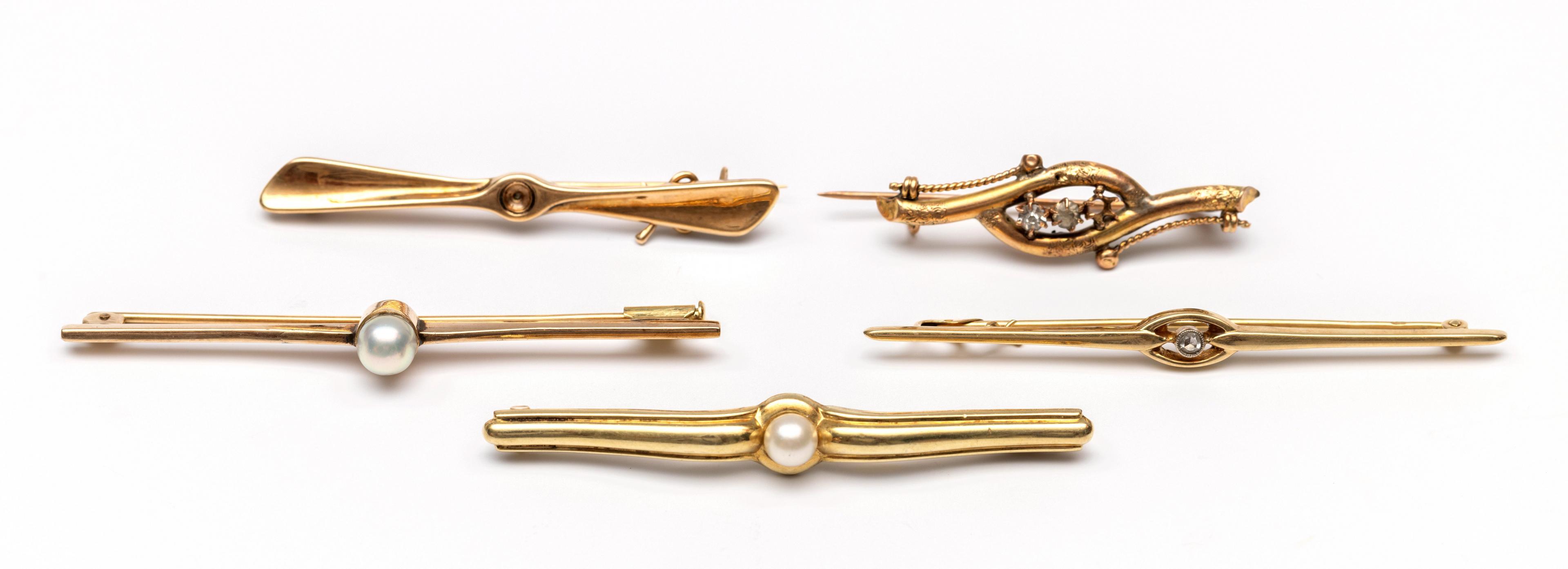 Five 14 k. gold bar brooches
