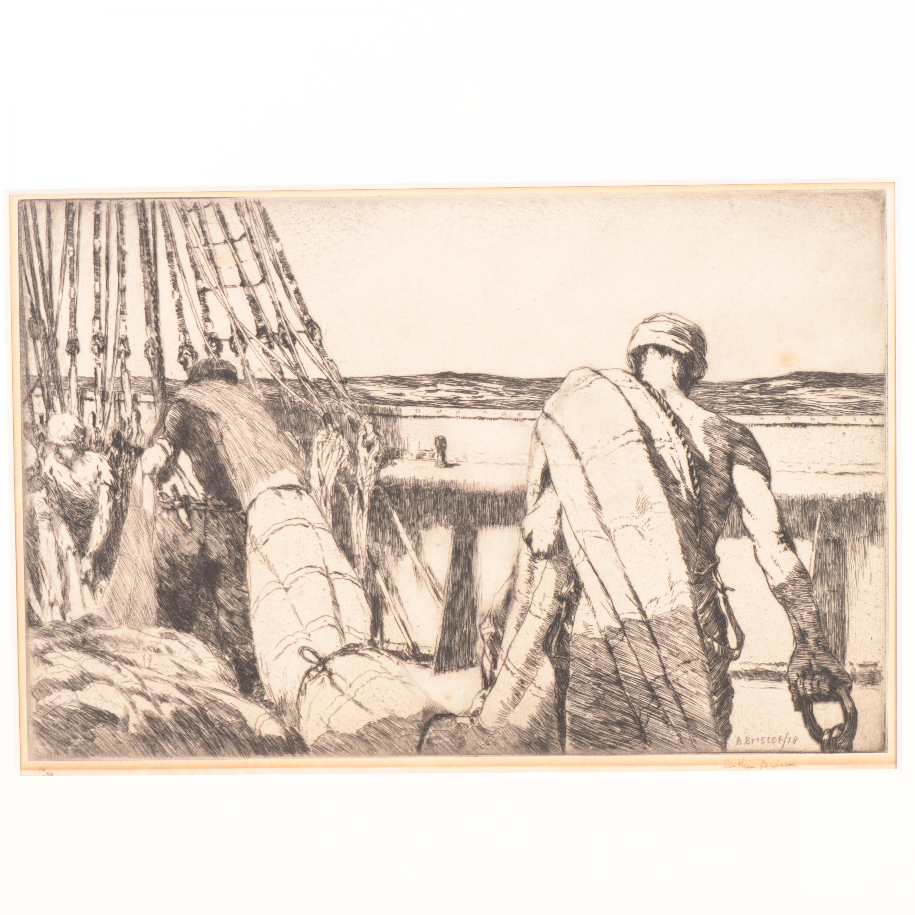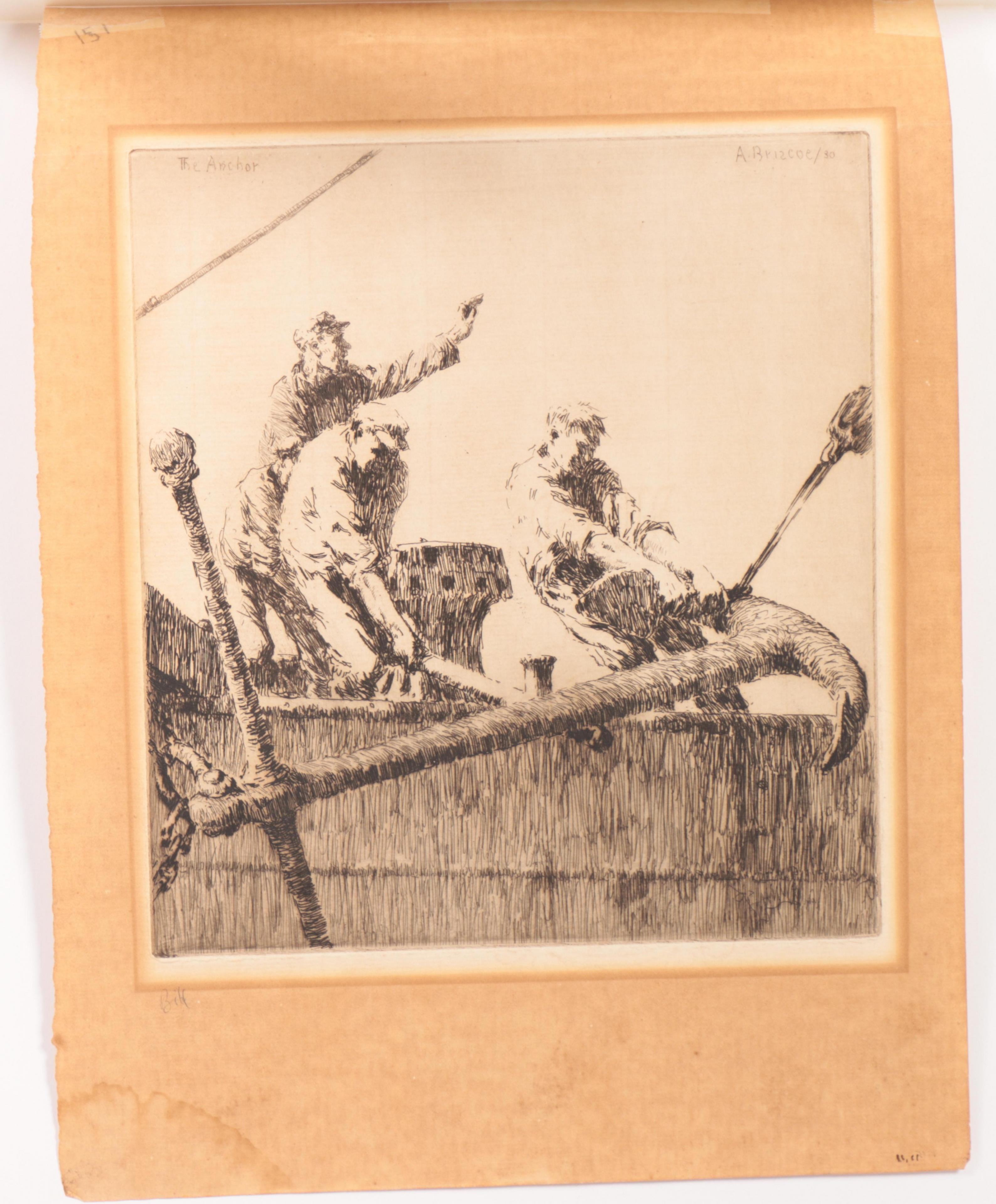 ets, gesign. r.o., 63/75, 18 x 31 cm./ets, ongesign., 23 x 40 cm./ets, ongesign., 18 x 16 cm./ets, gesign. r.o., 16/50, 24 x 36 cm.