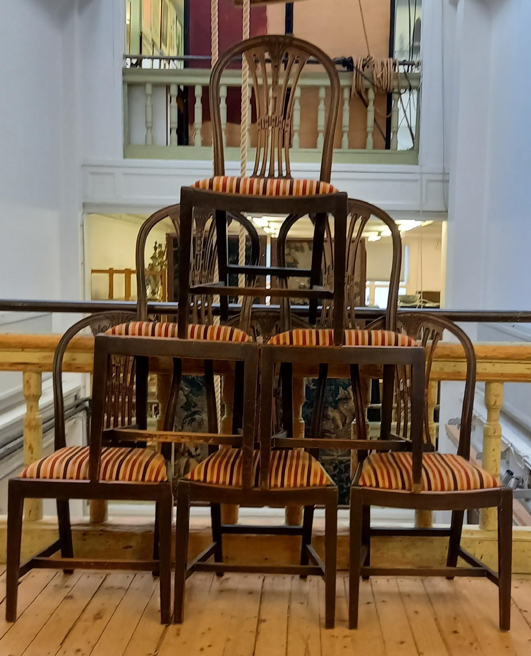Zes bruin gebeitste stoelen en één armstoel, ca. 1900.