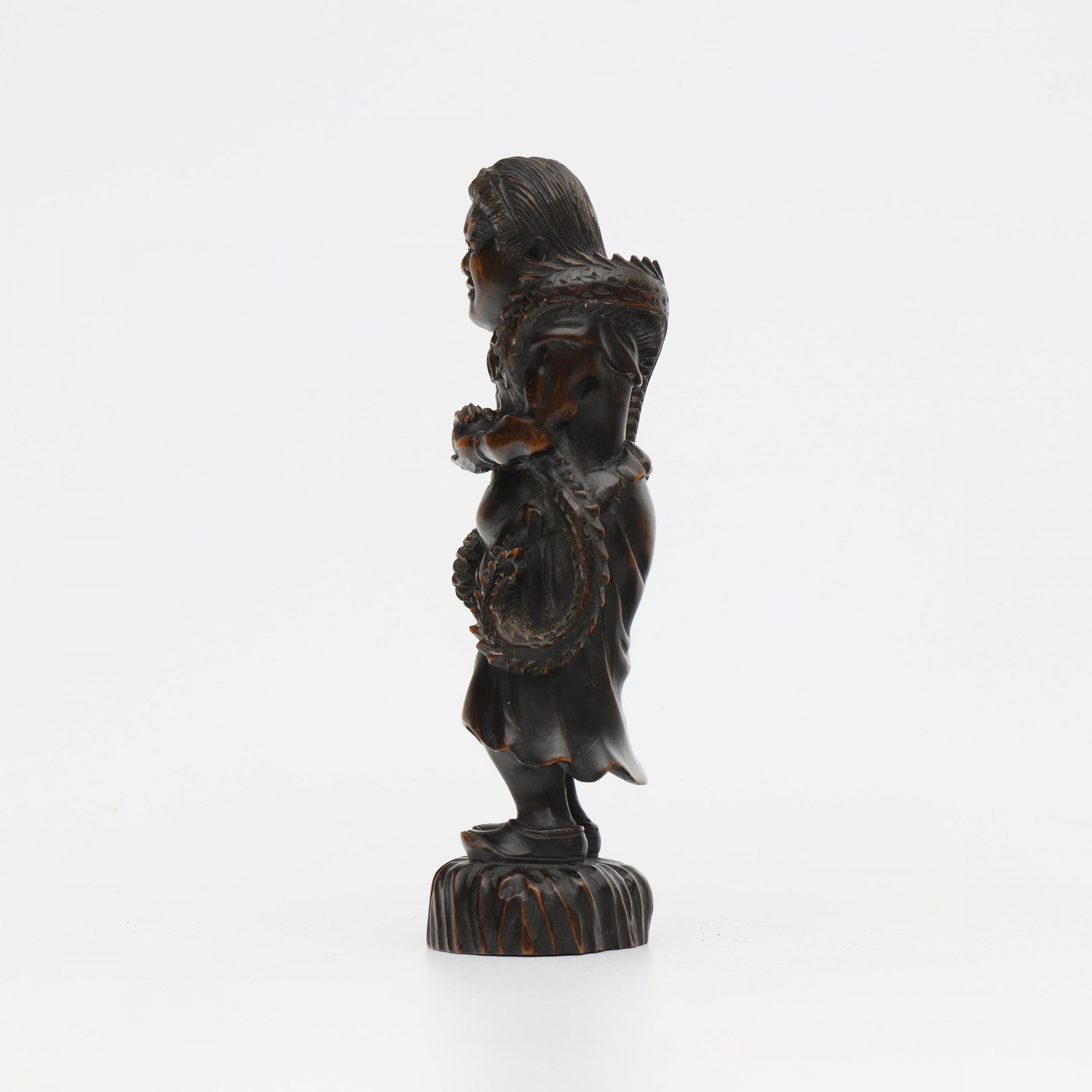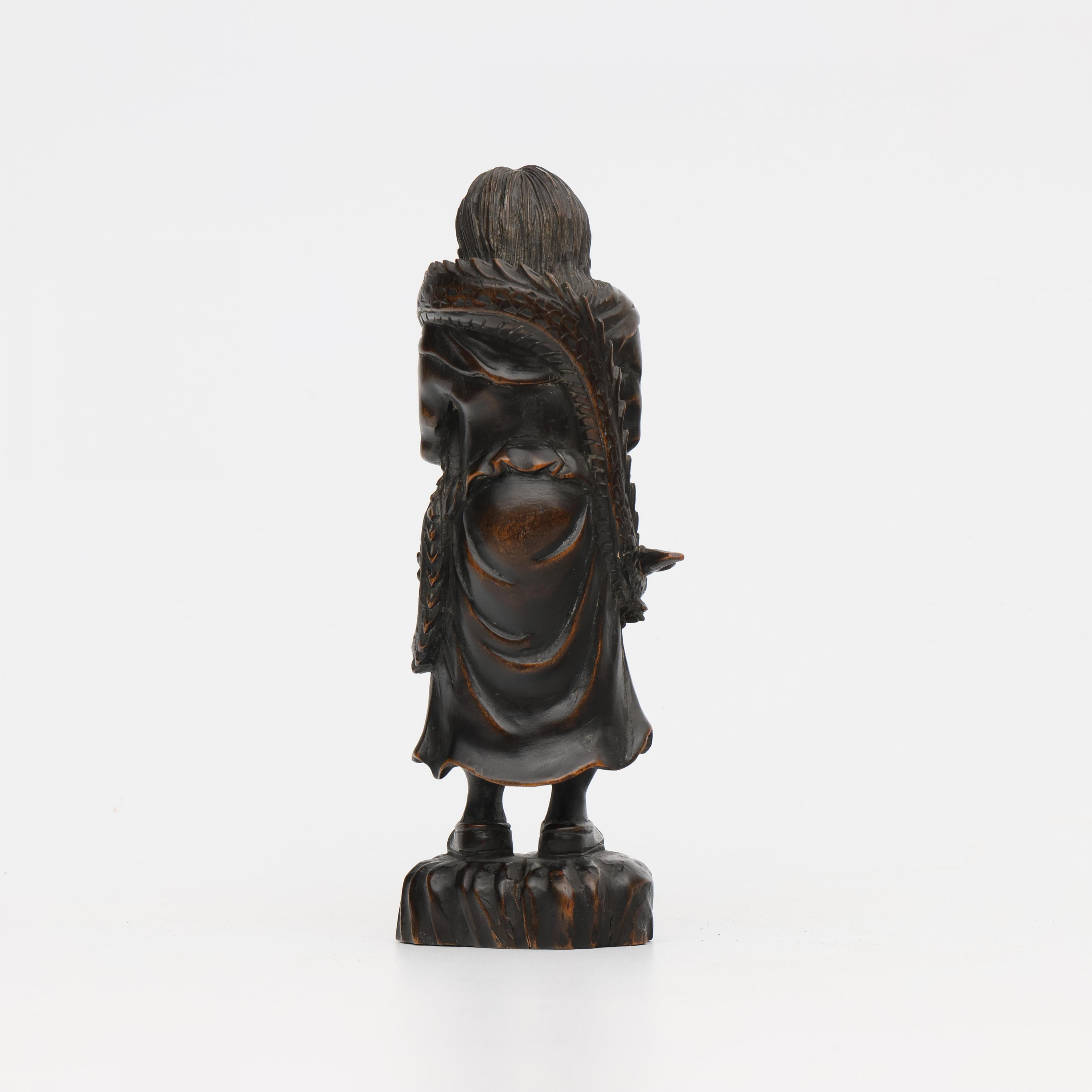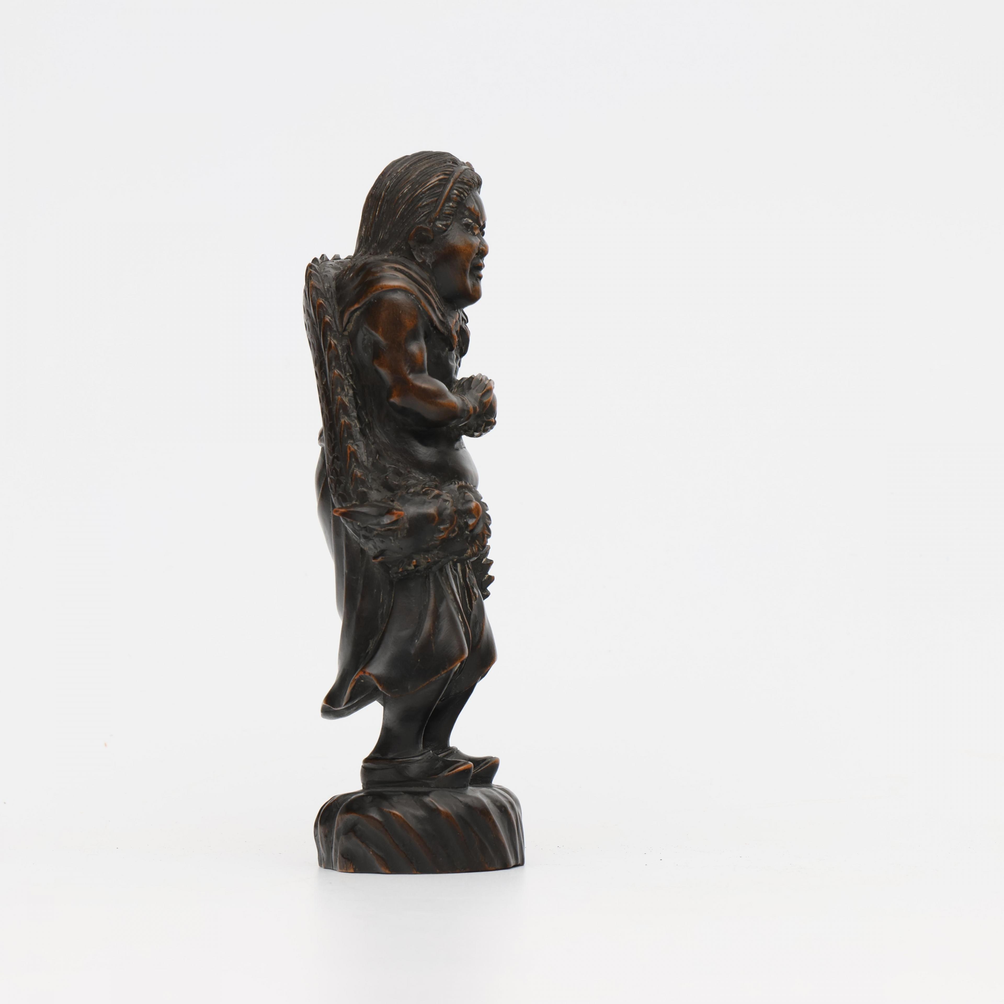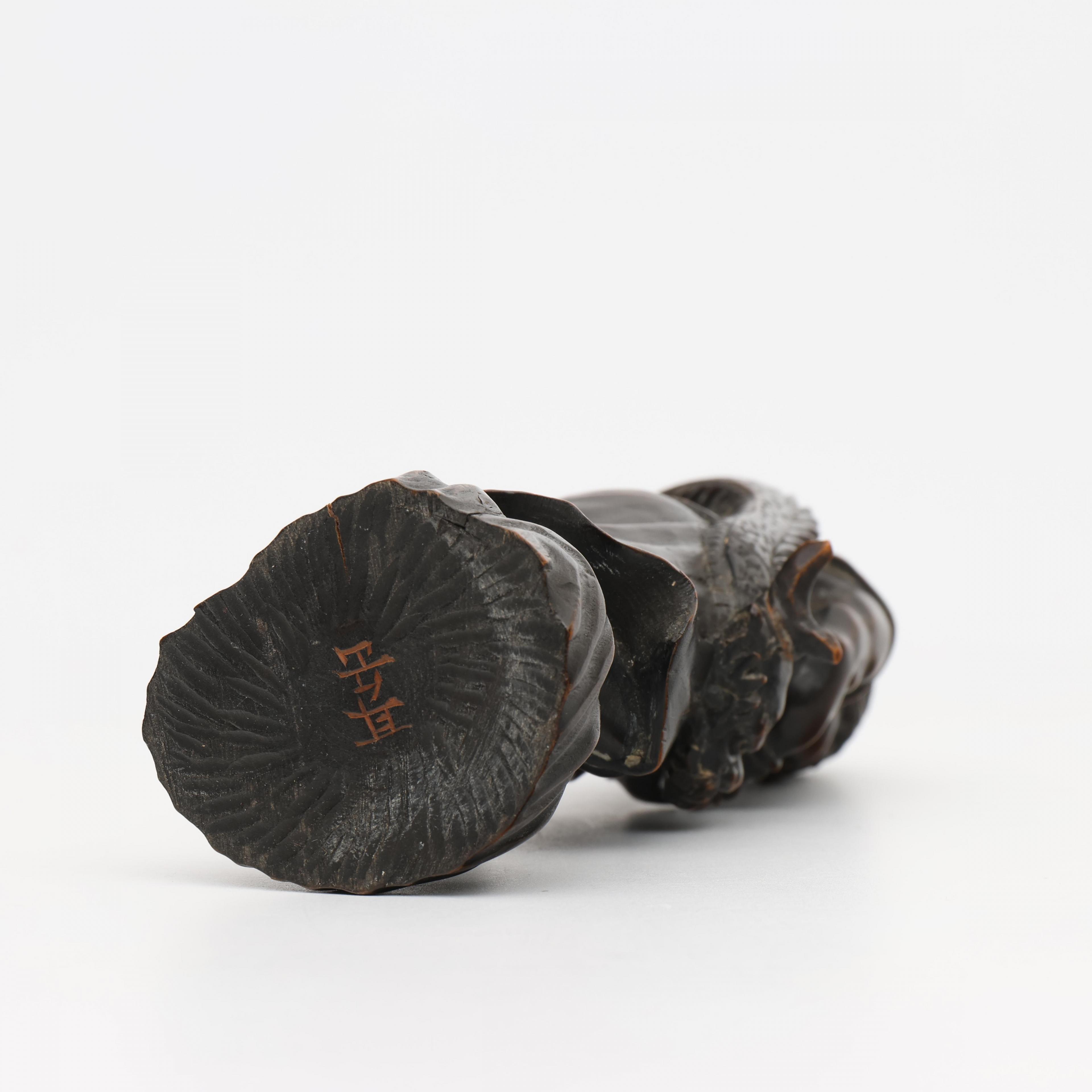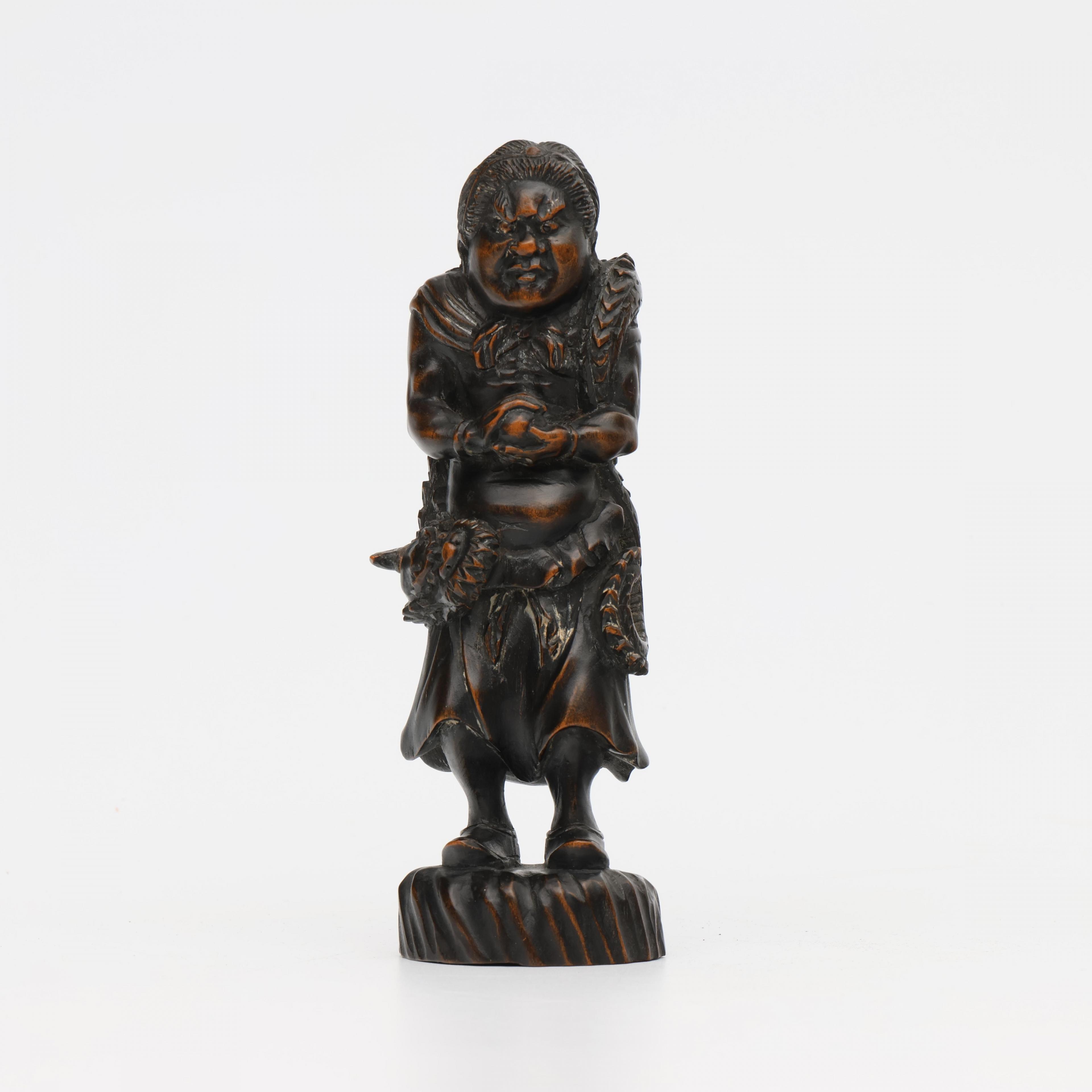 carved in standing position holding a pearl and a dragon coiled around him, signed jigaku (some wear)