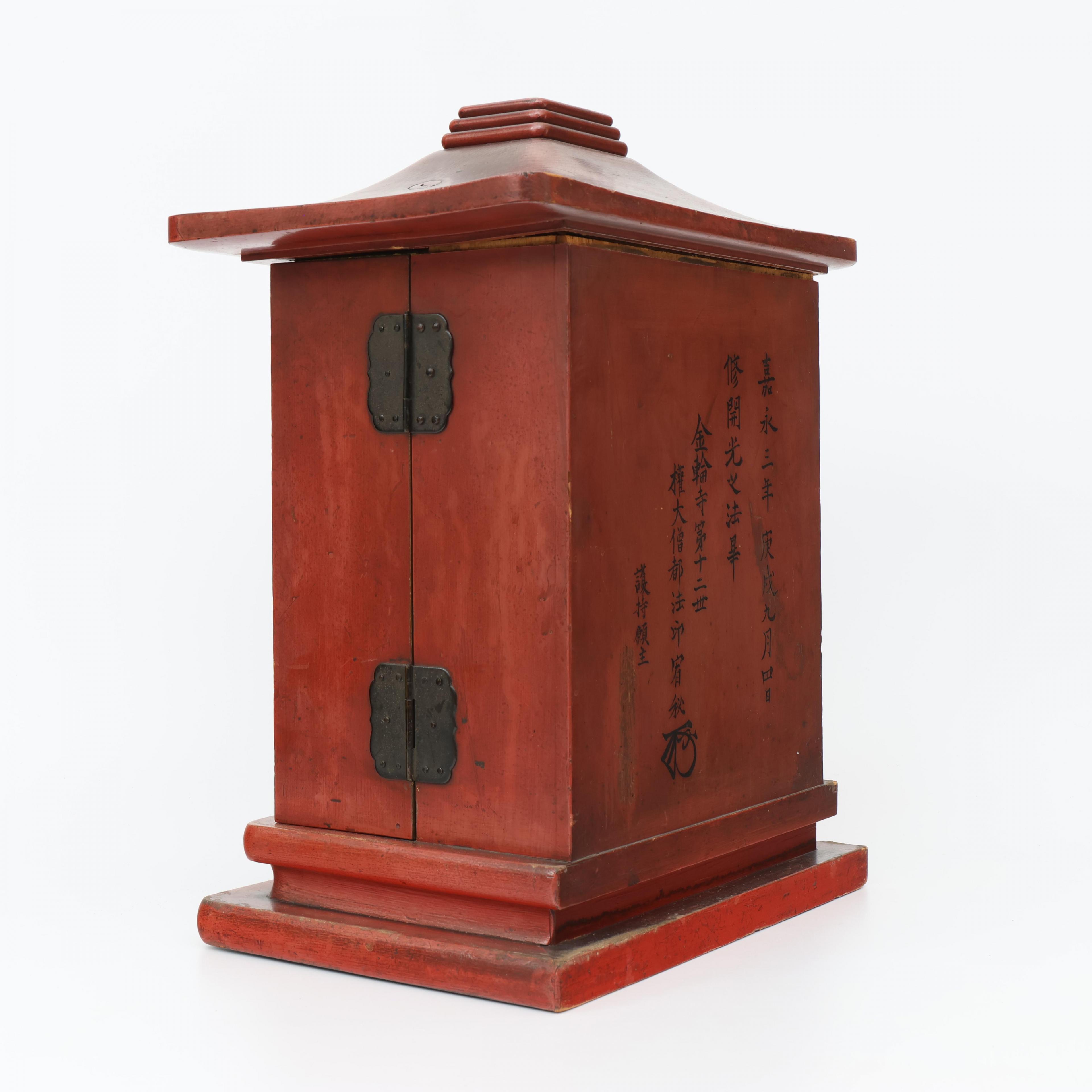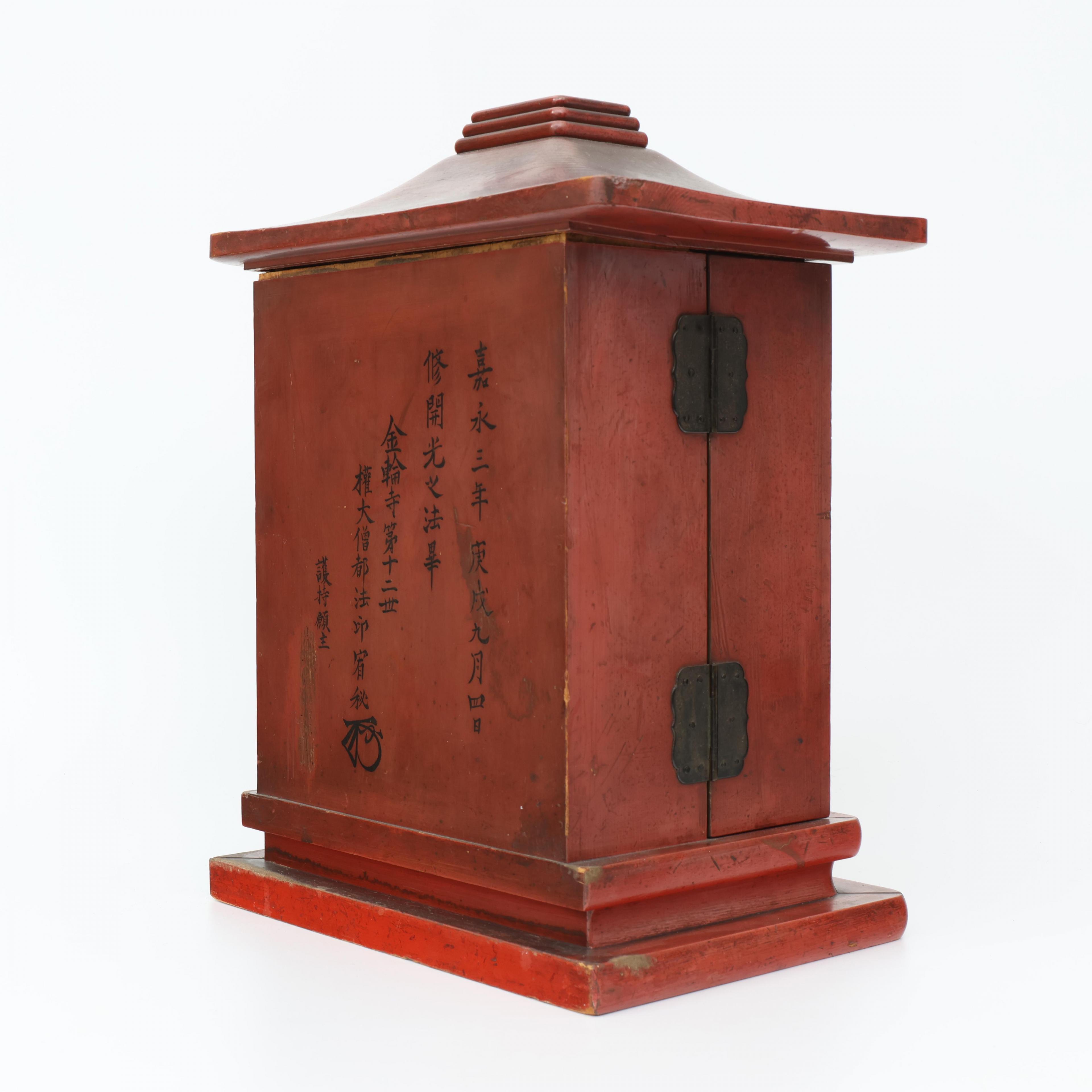 Japan, a red and gilt lacquer travelling shrine, zushi, Meiji period (1868-1912),