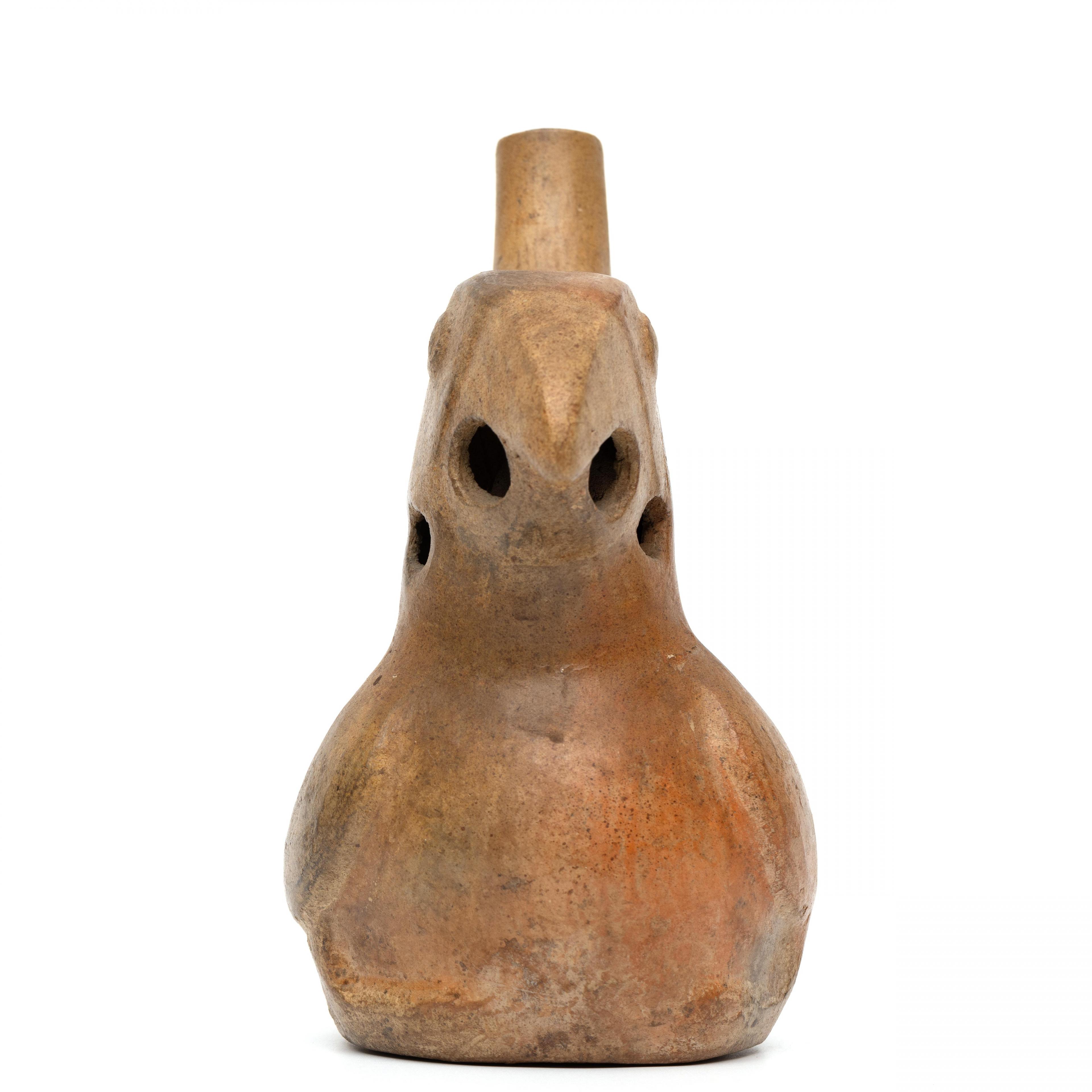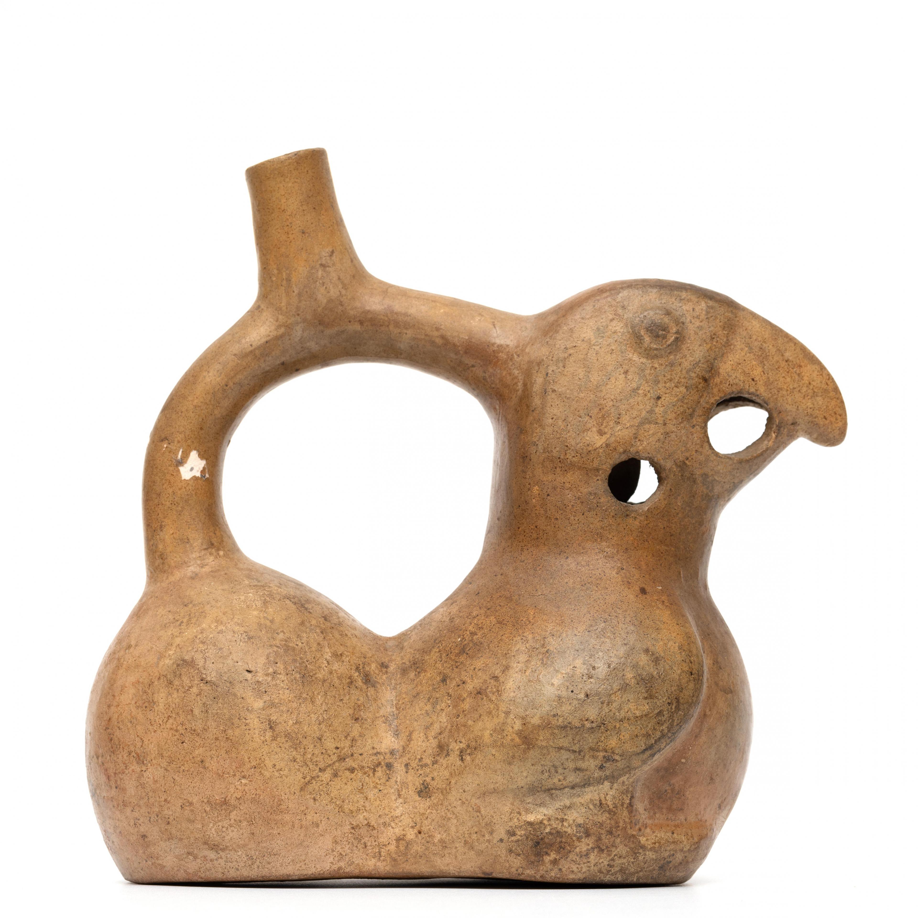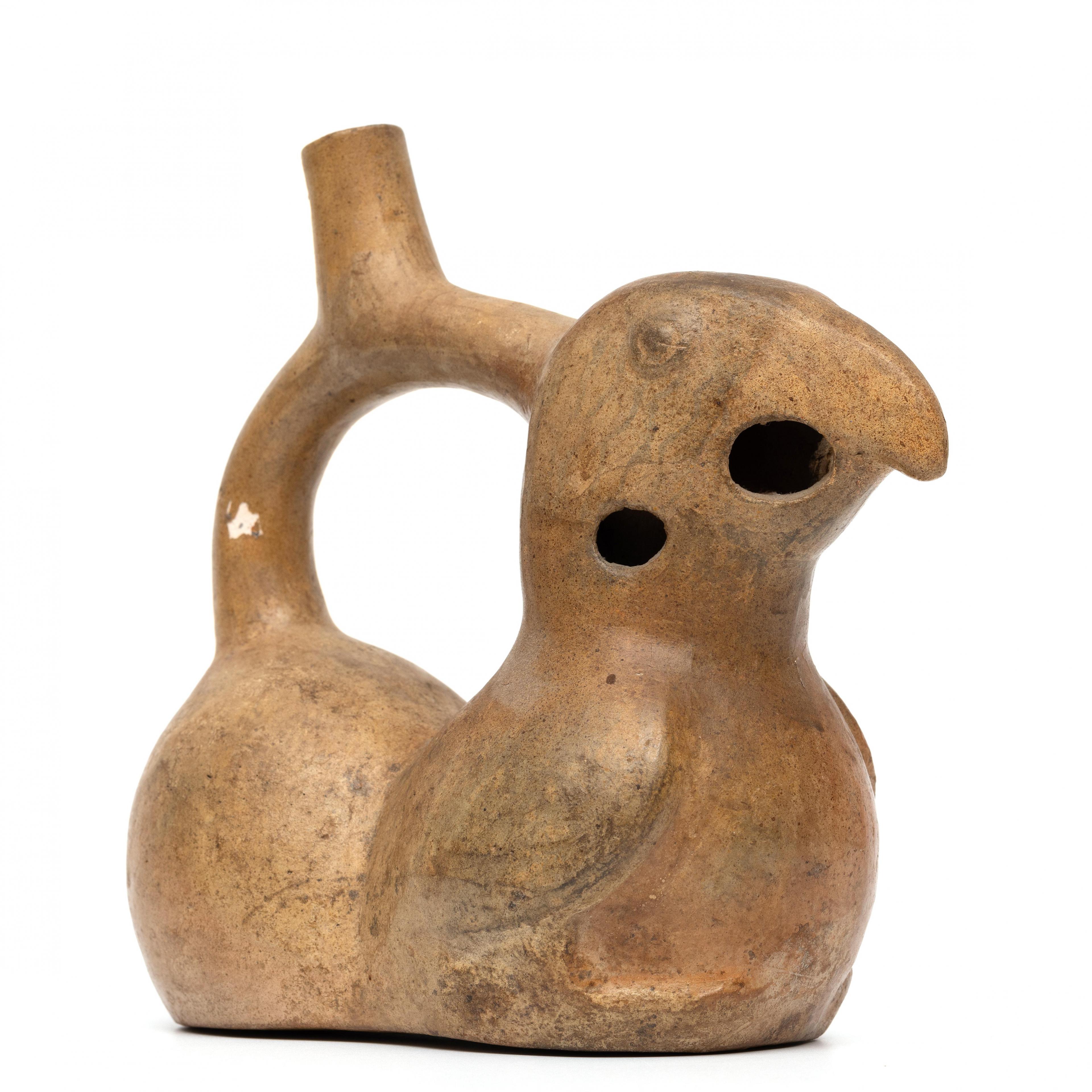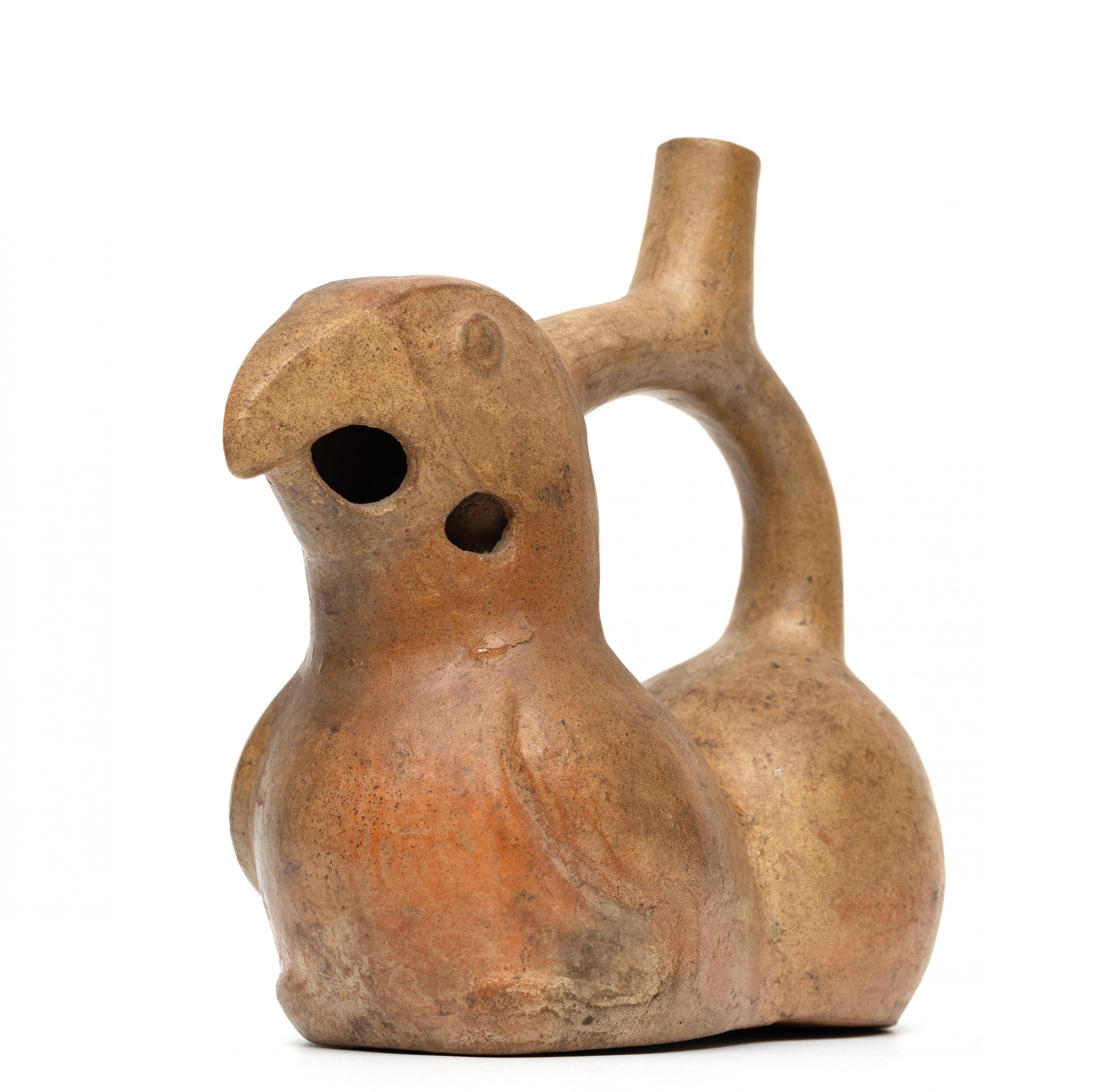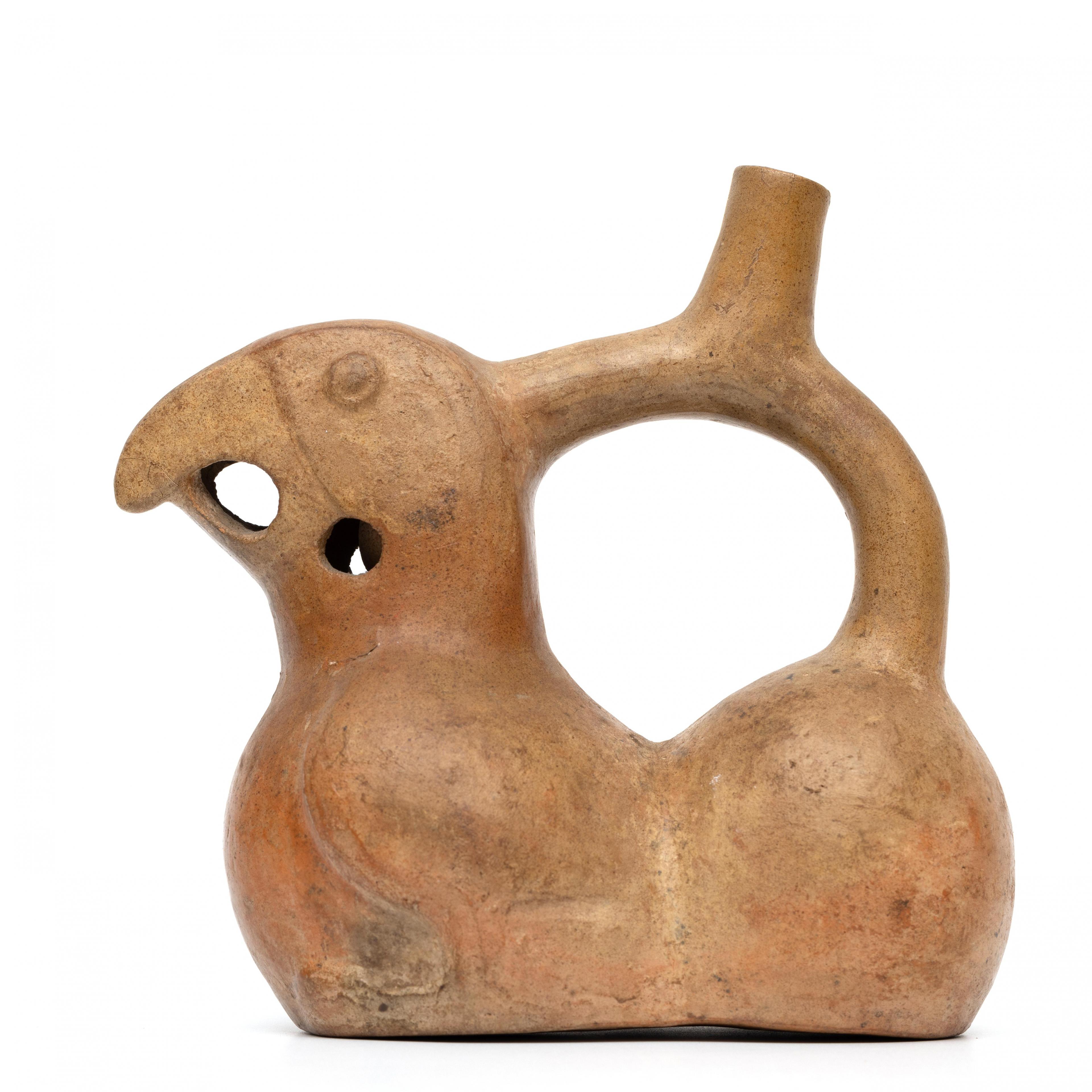 Peru, Moche, stirrup spout-flute vessel in shape of parrot Moche IV, 400 CE.