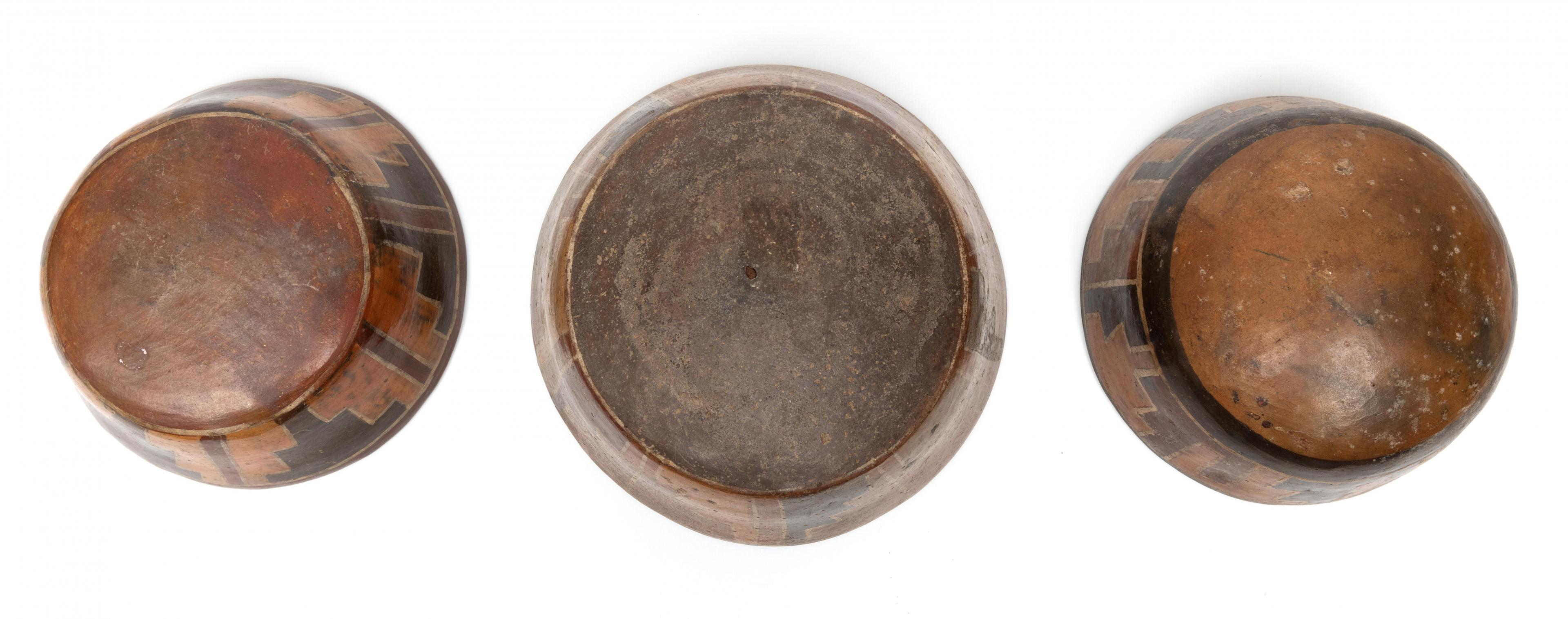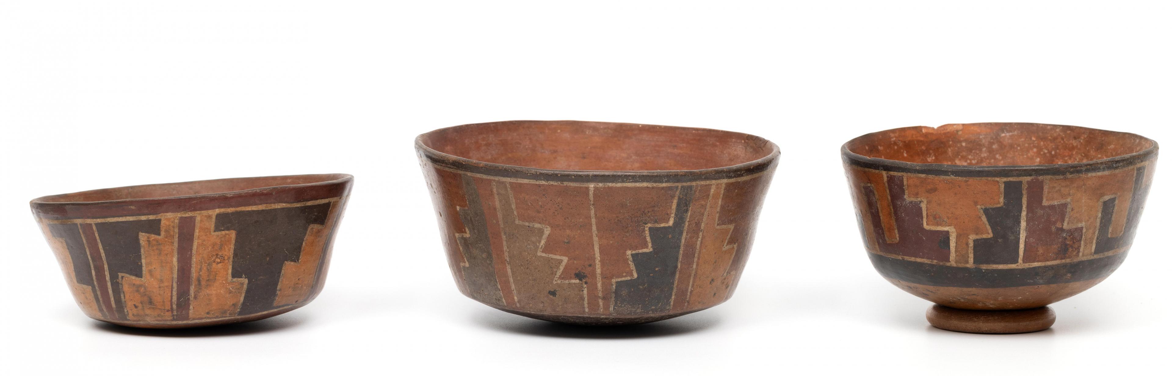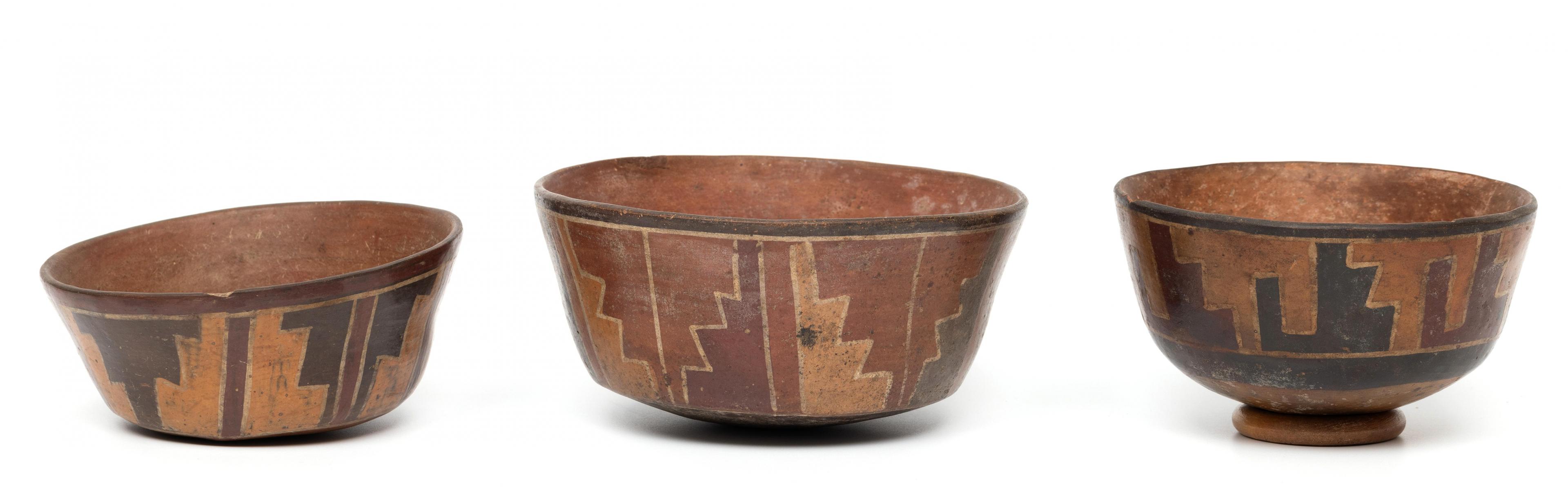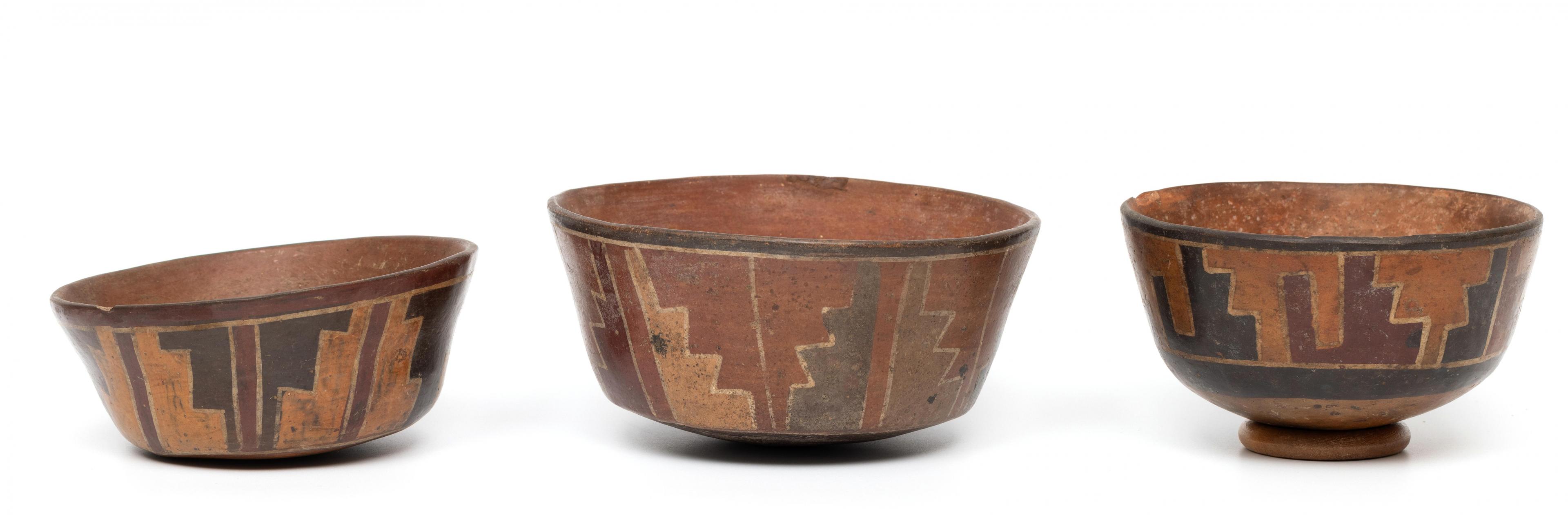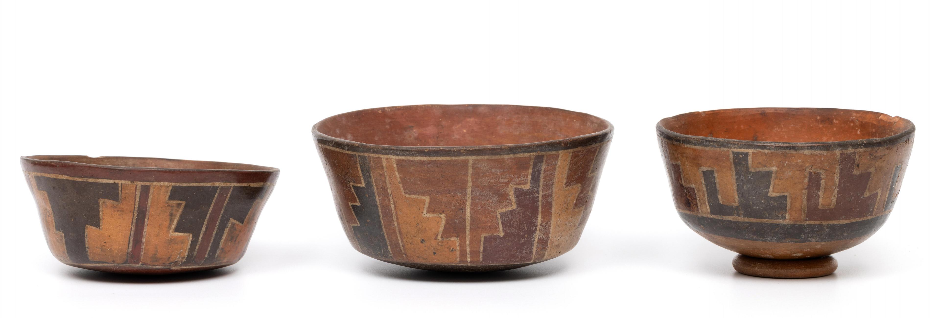 Peru, Nazca, 100-400 CE, three terracotta bowls,