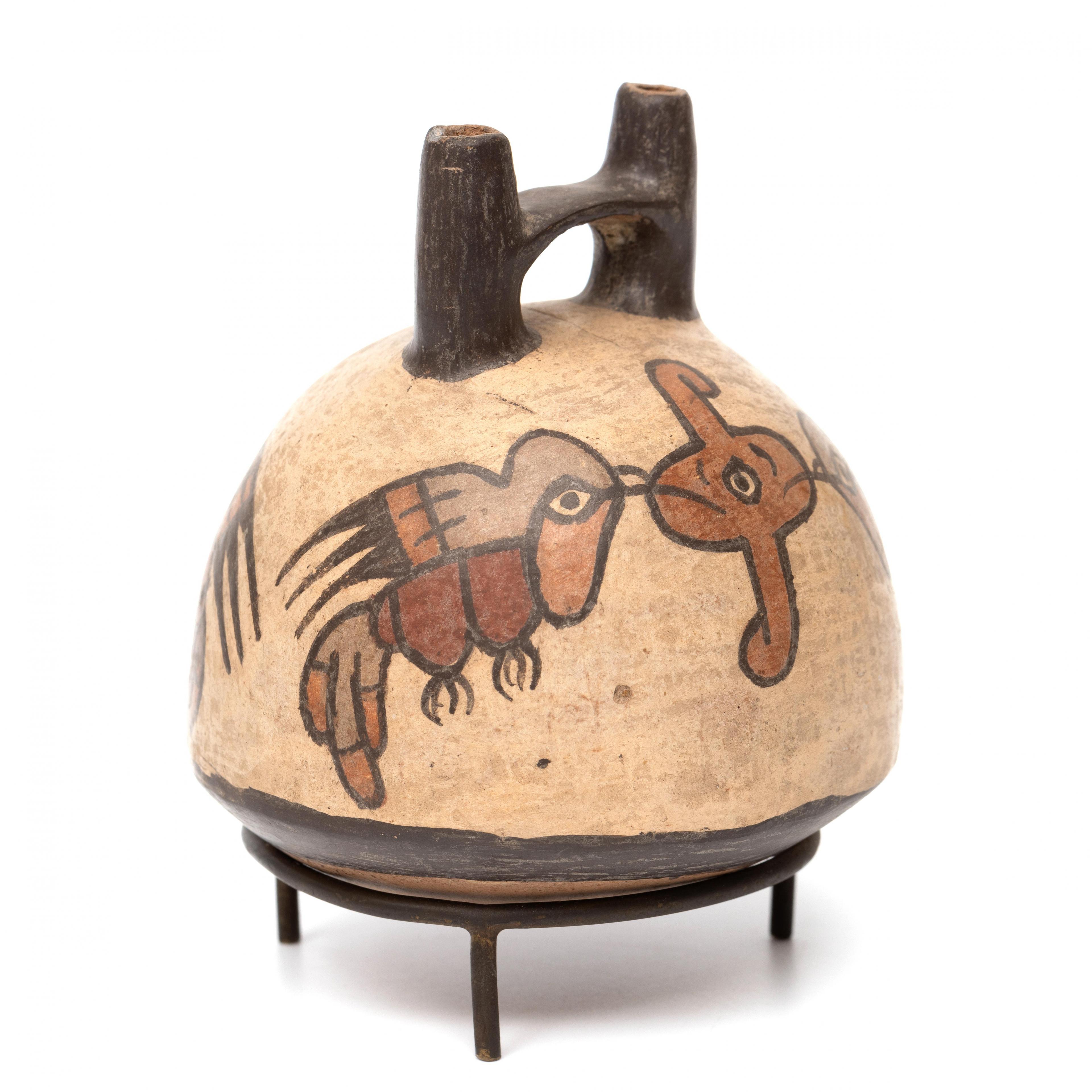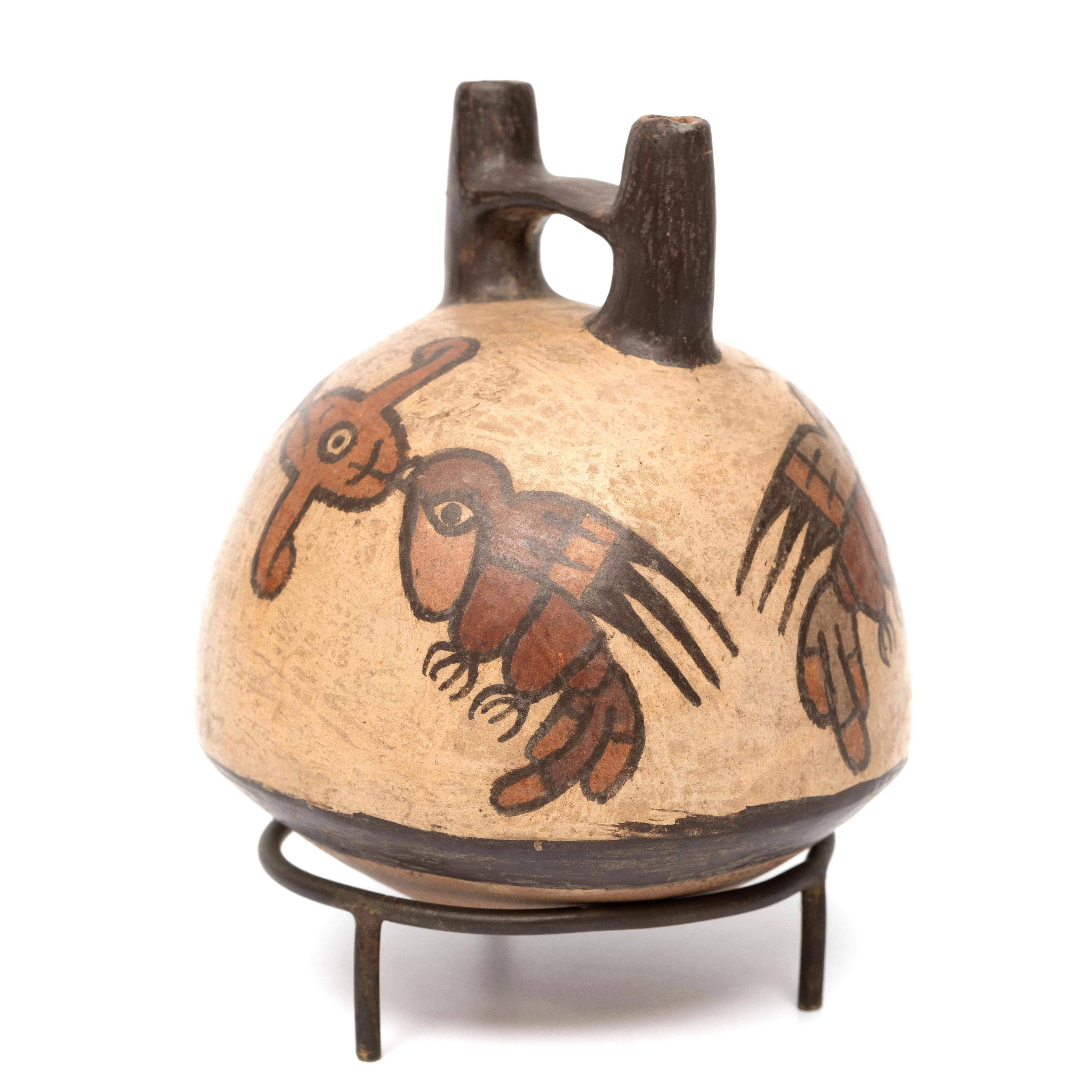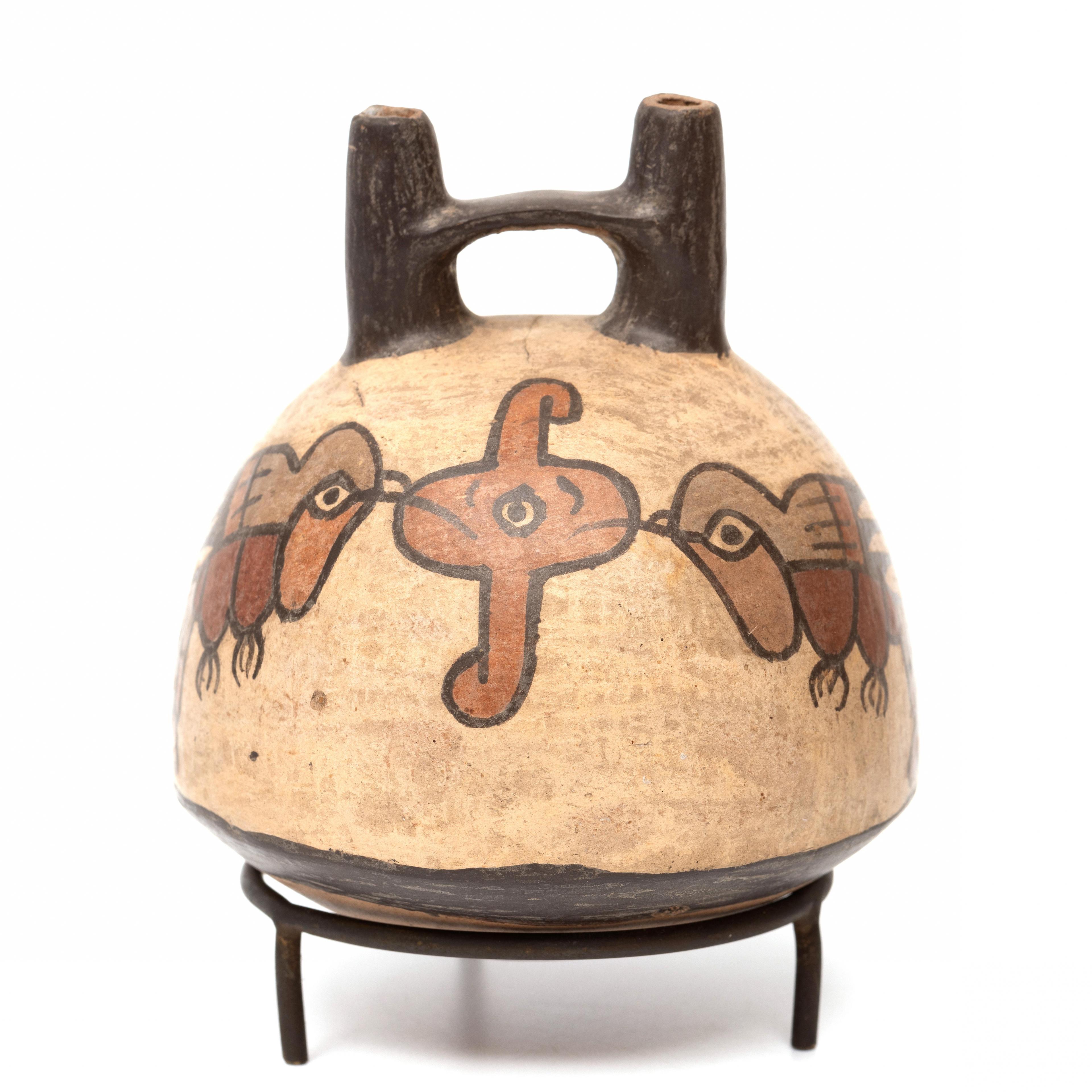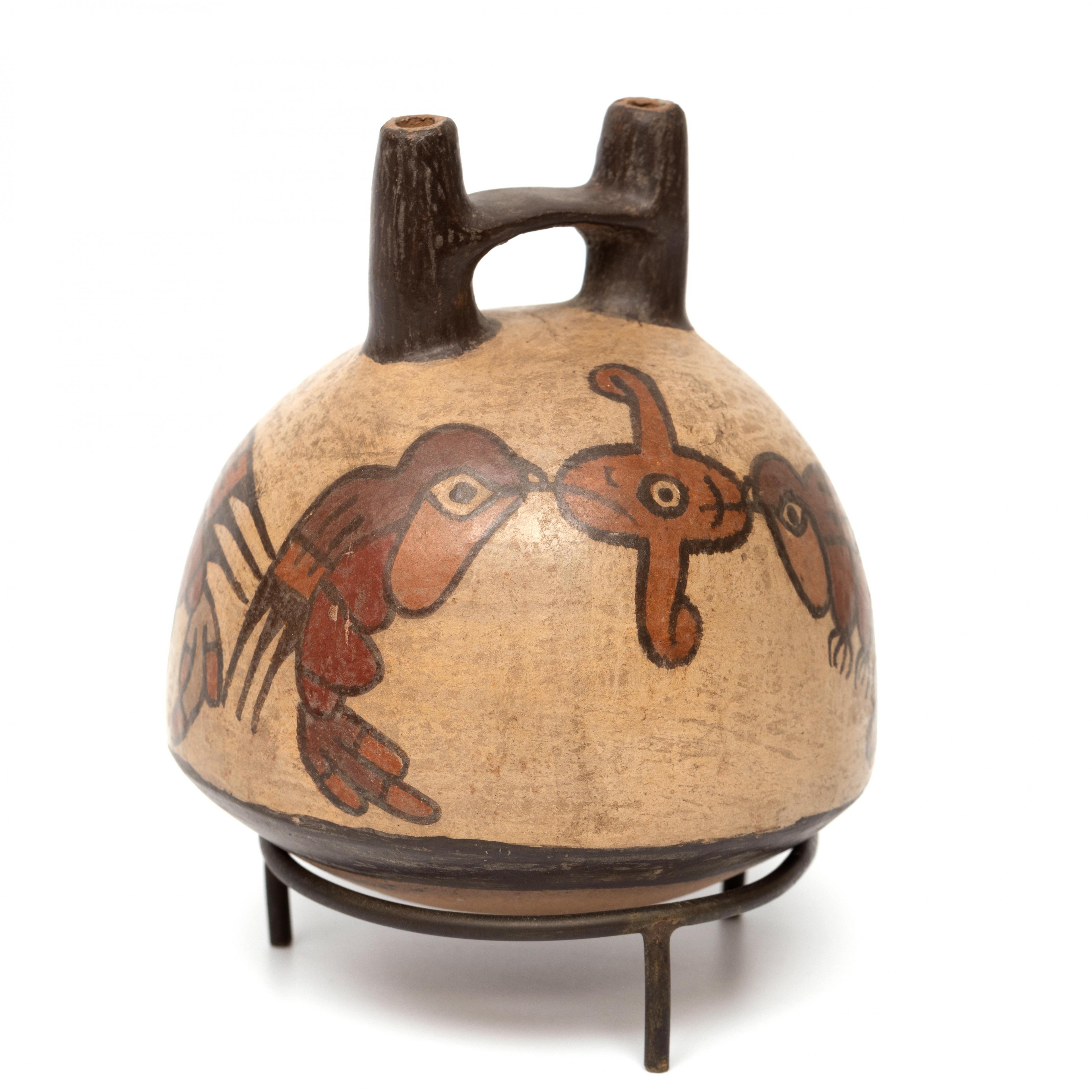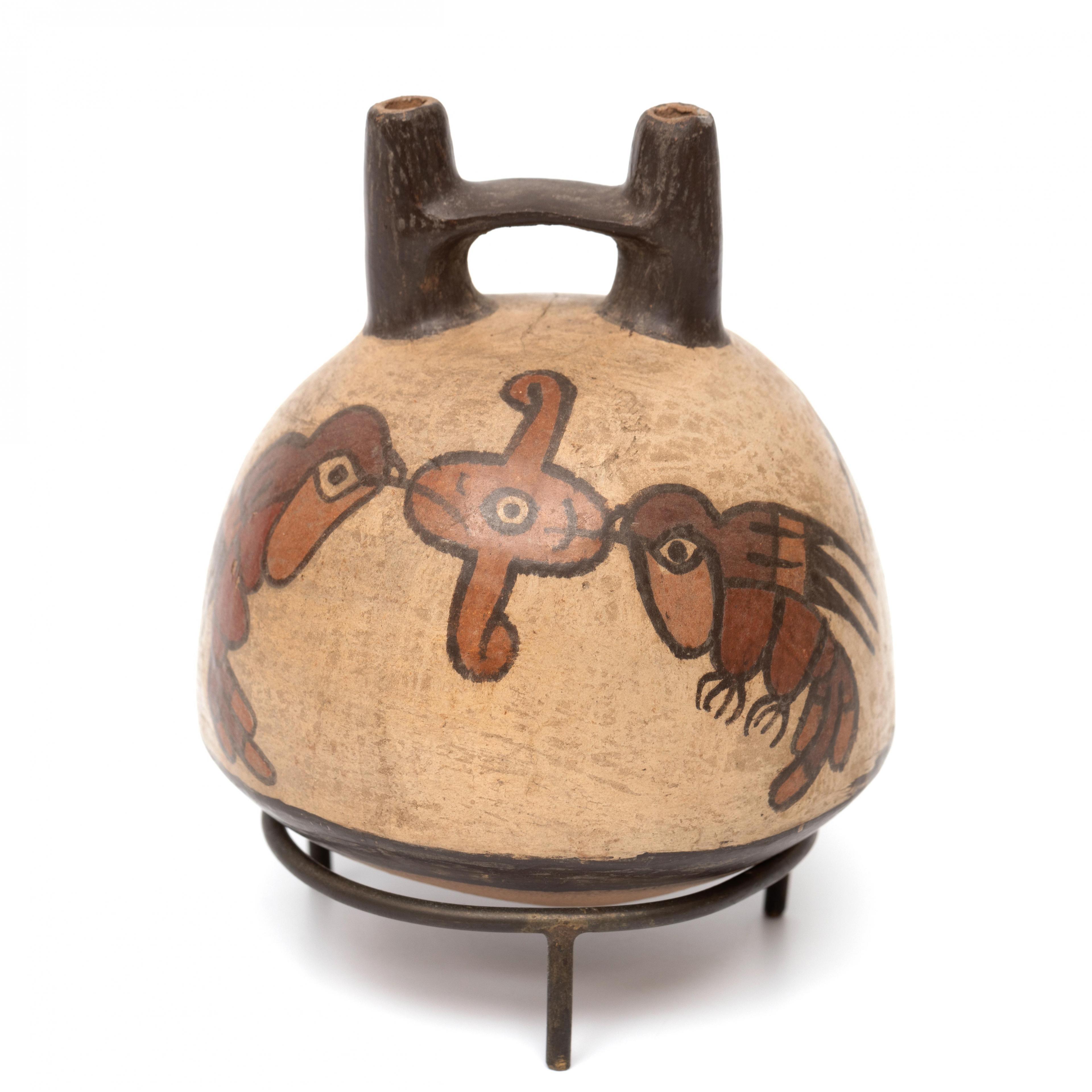 South Peru, Nazca, 100-400 CE, a miniature double spout and bridge vessel,