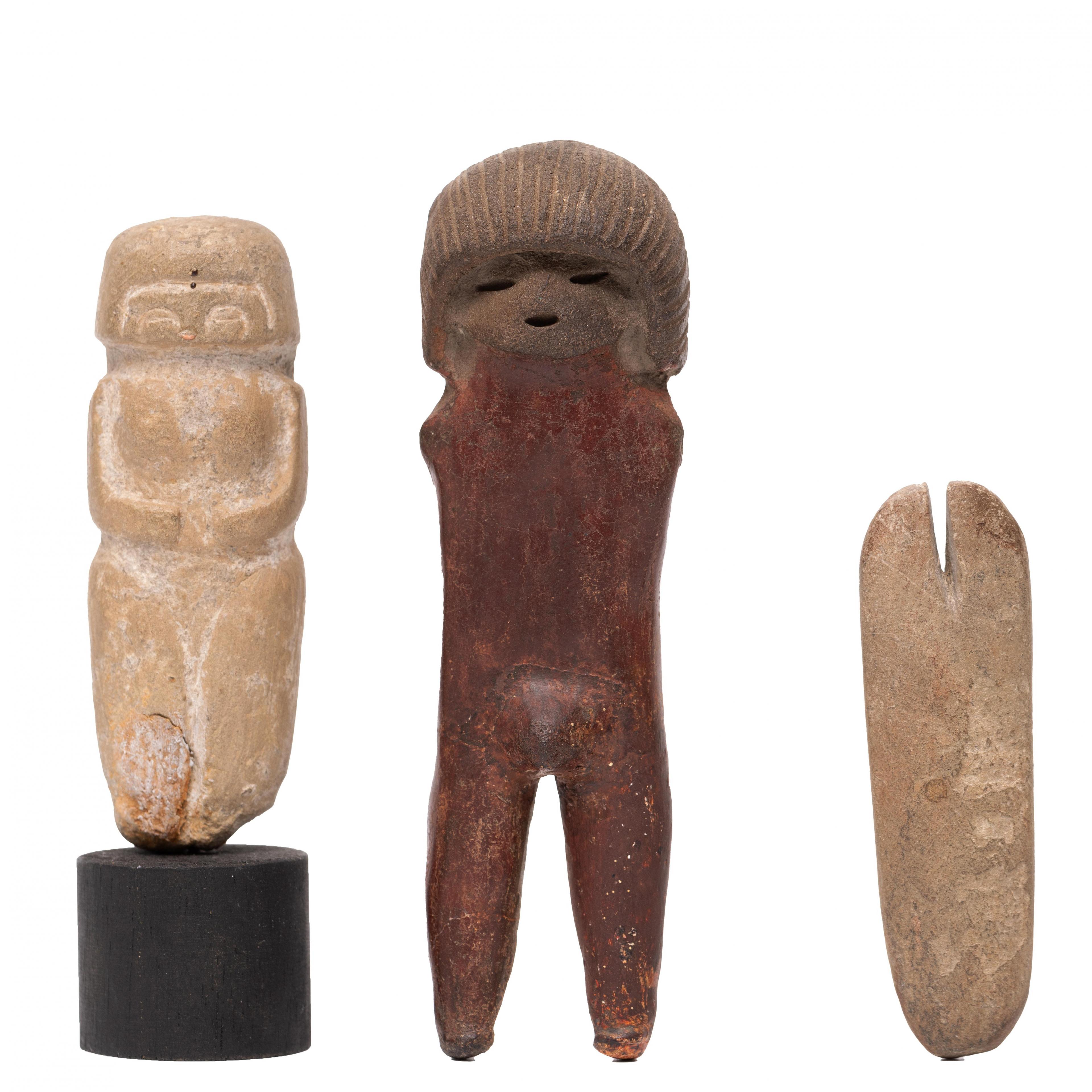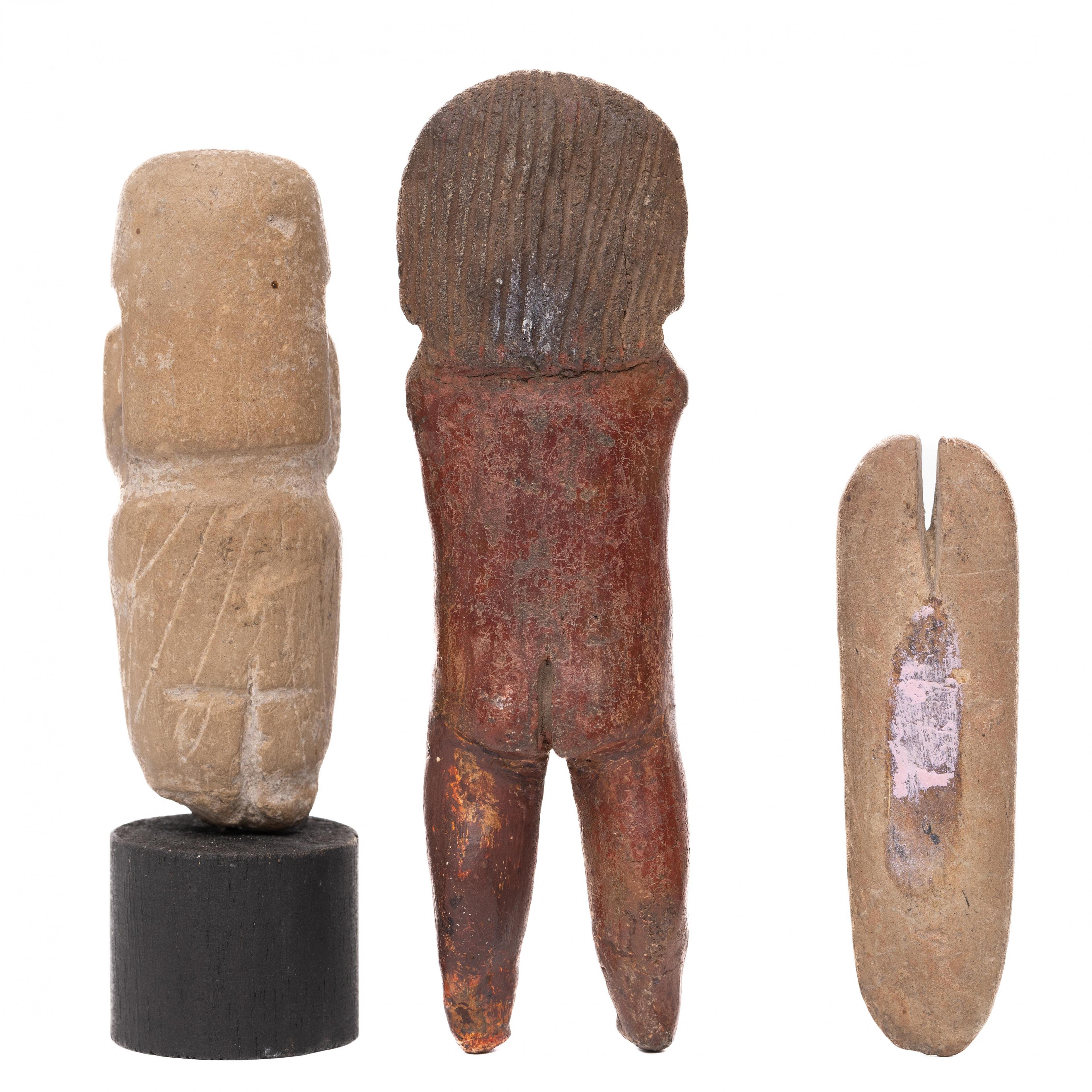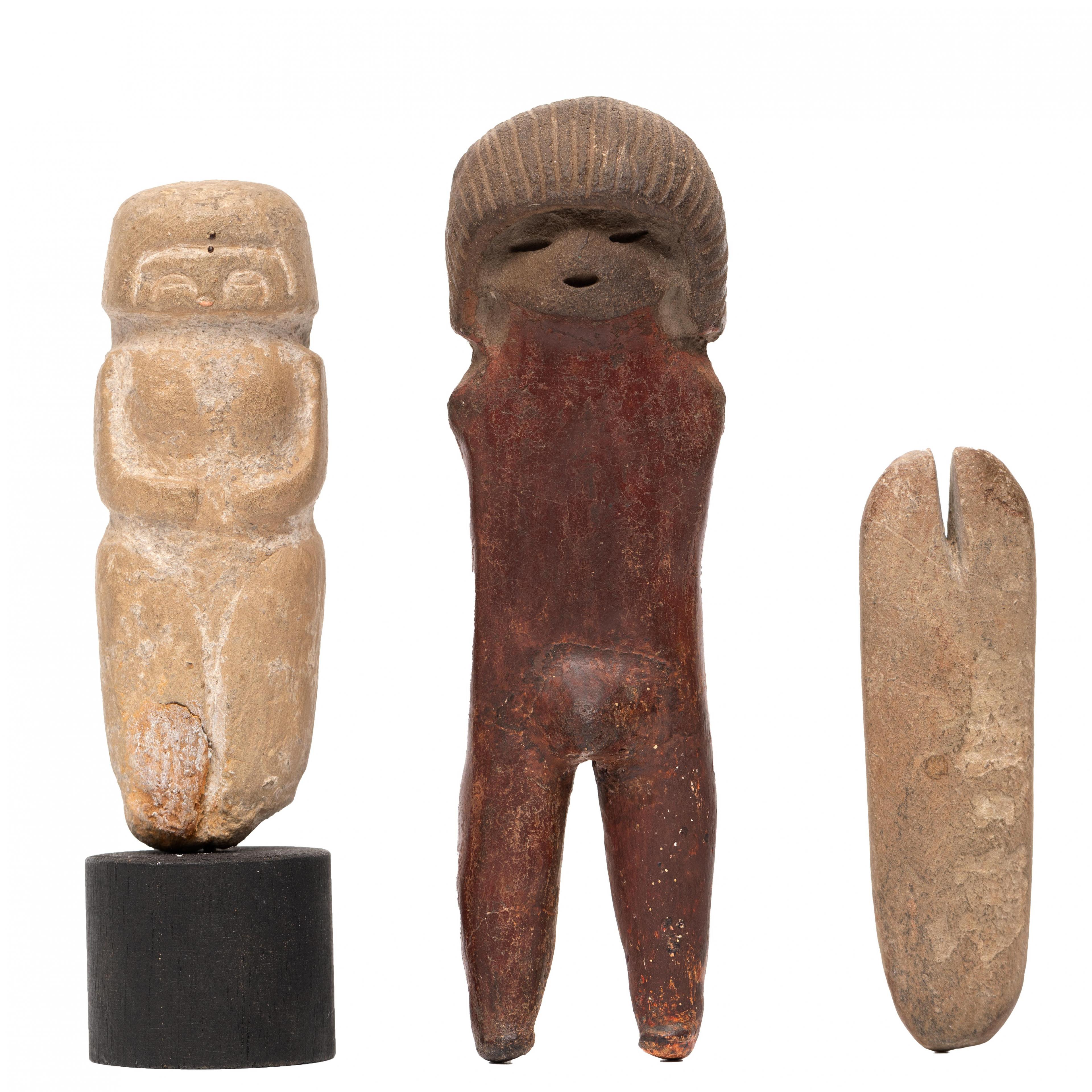 Ecuador, Valdivia Culture, ca. 3000 BCE, one stone Pre-Culture idol and two terracotta figures,