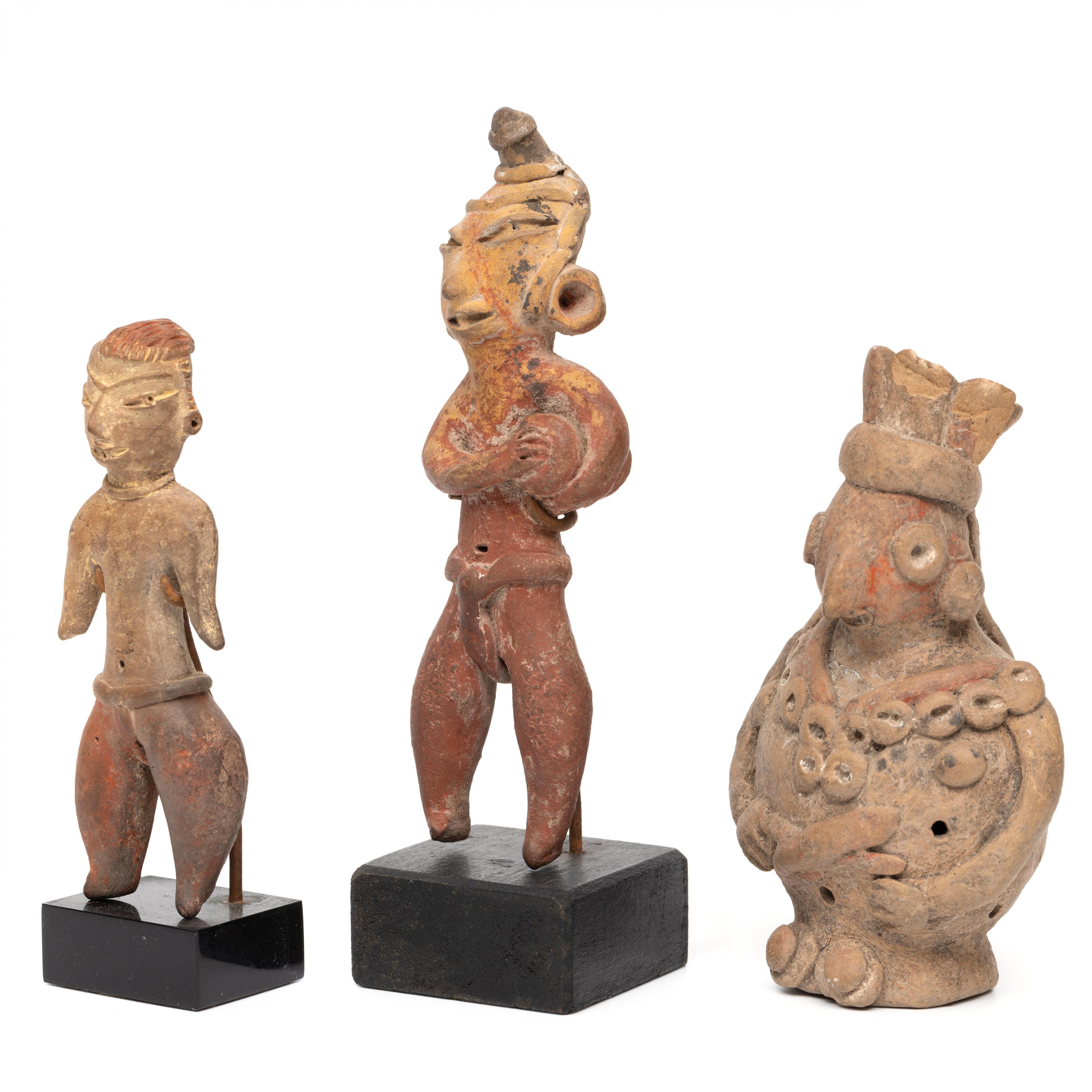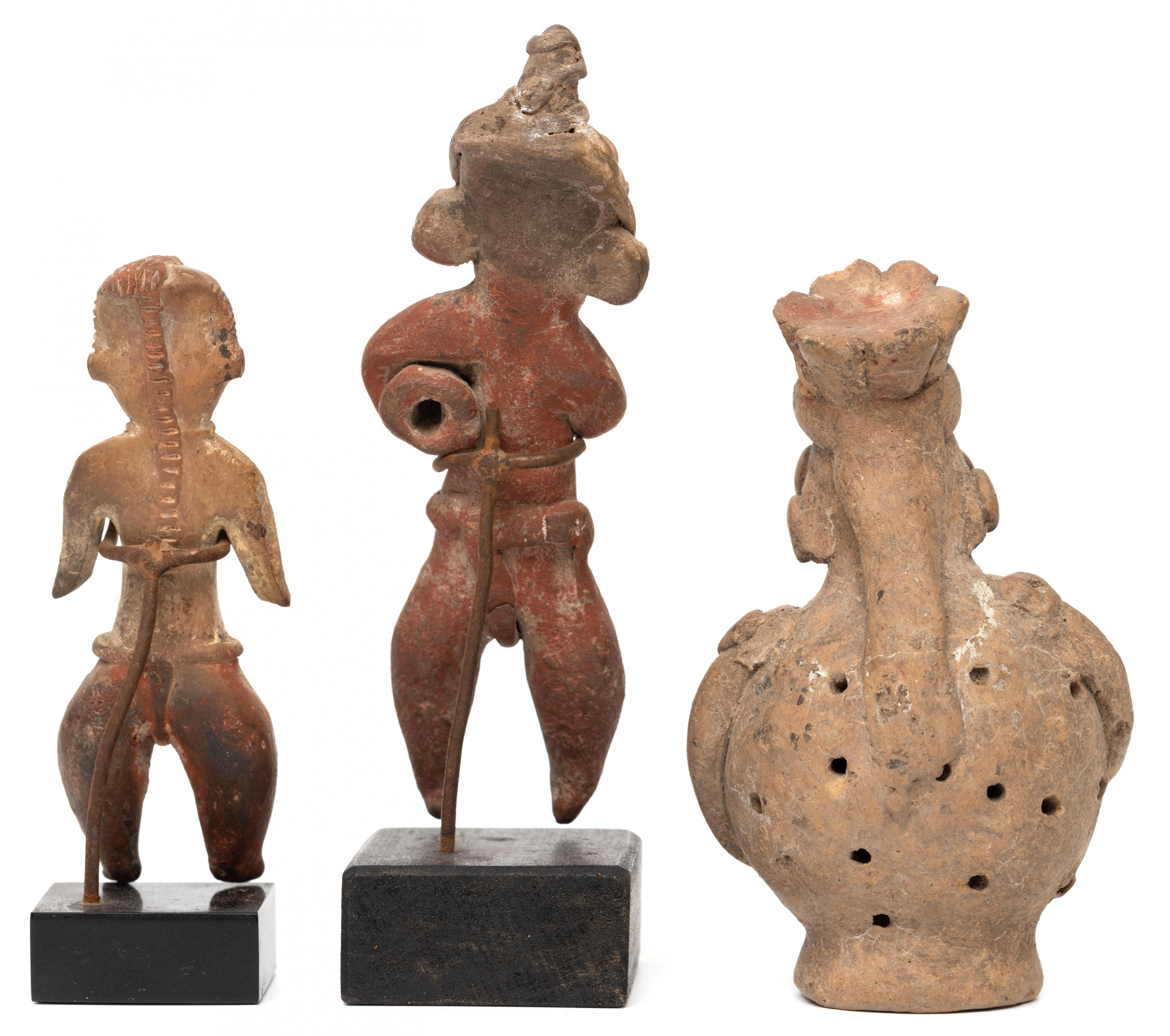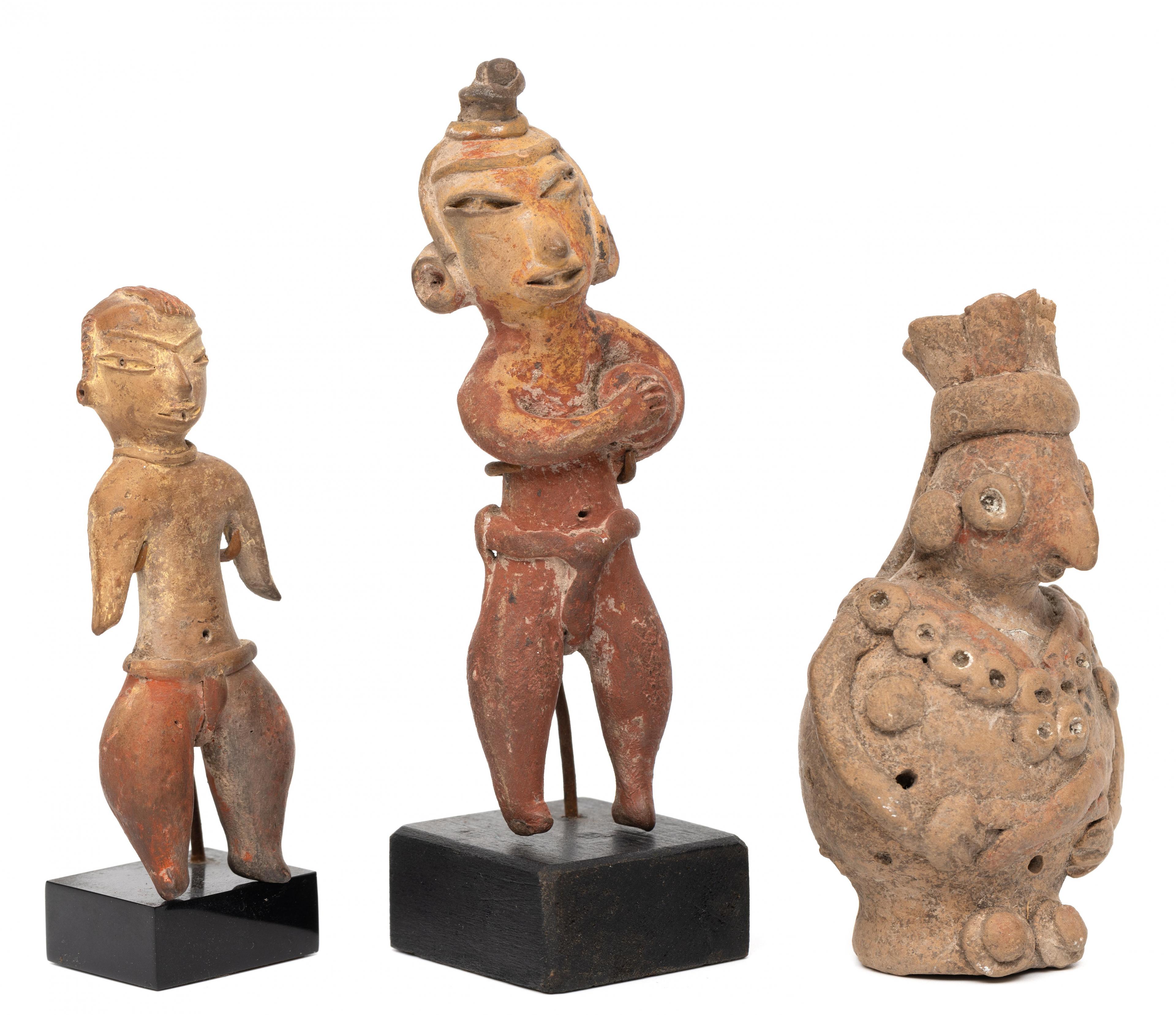 Central Mexico, Tlatilco Culture, Pre Classsic 300 - 100 BCE, three terracotta standing figures;