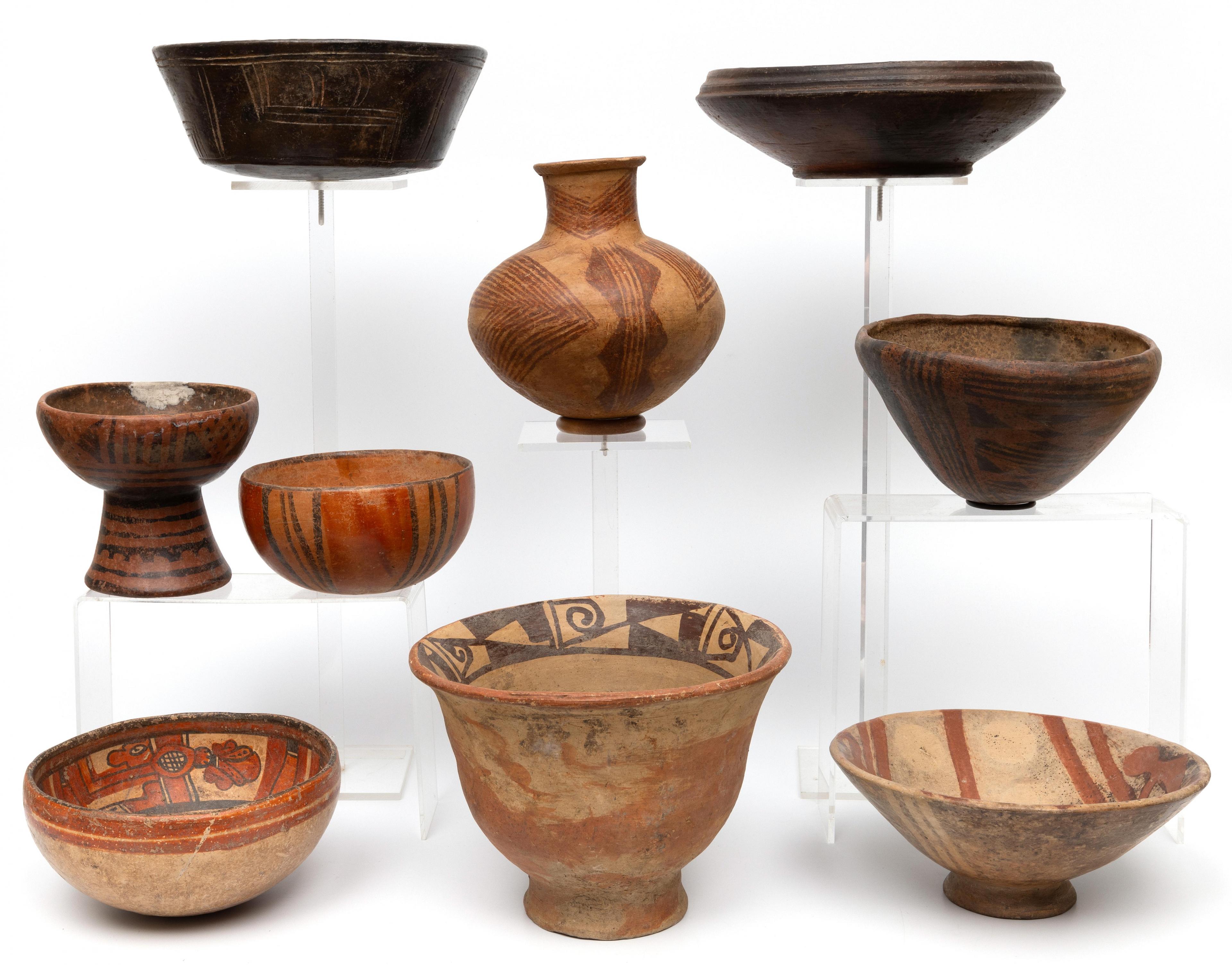 A collection of eight various terracotta pre-Columbian bowls and one vessel, ca. 800-1500 CE.